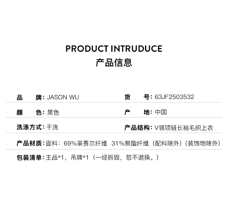 (莱赛尔)【JASON WU】25秋冬新款纯色小众设计感金属项链针织衫小衫