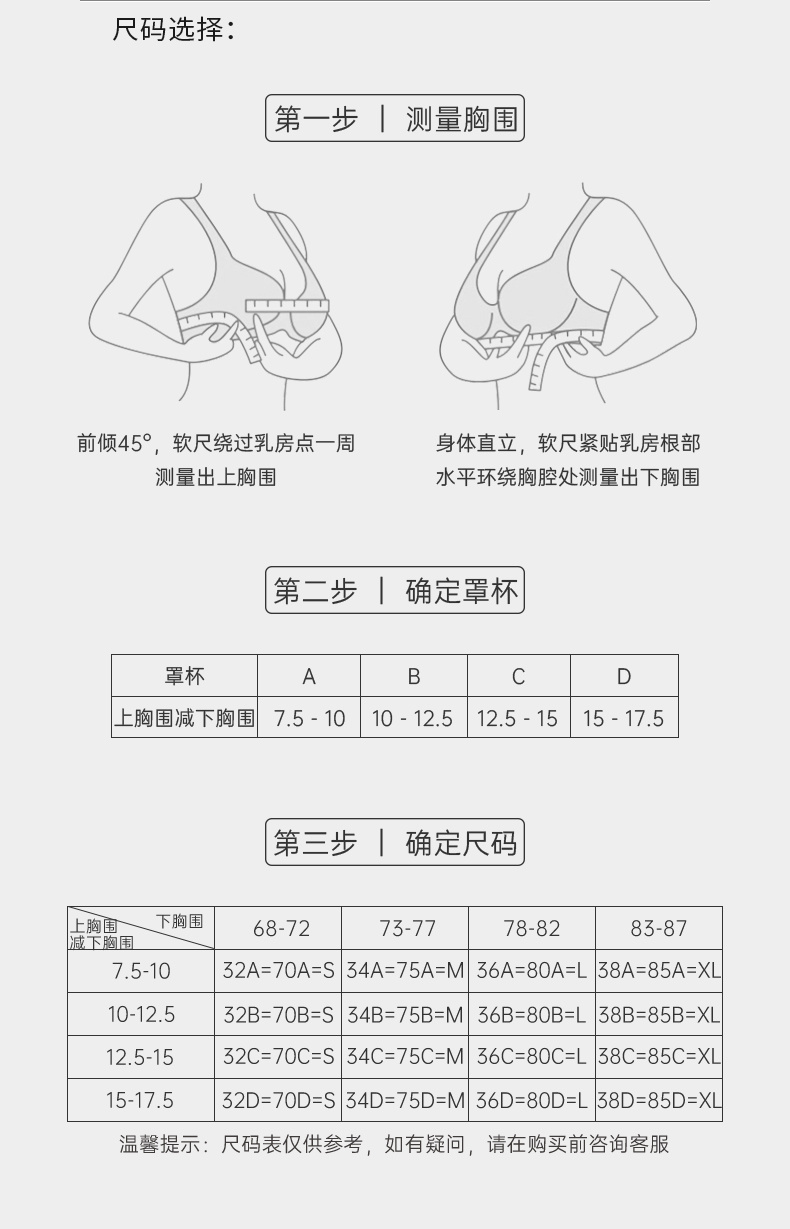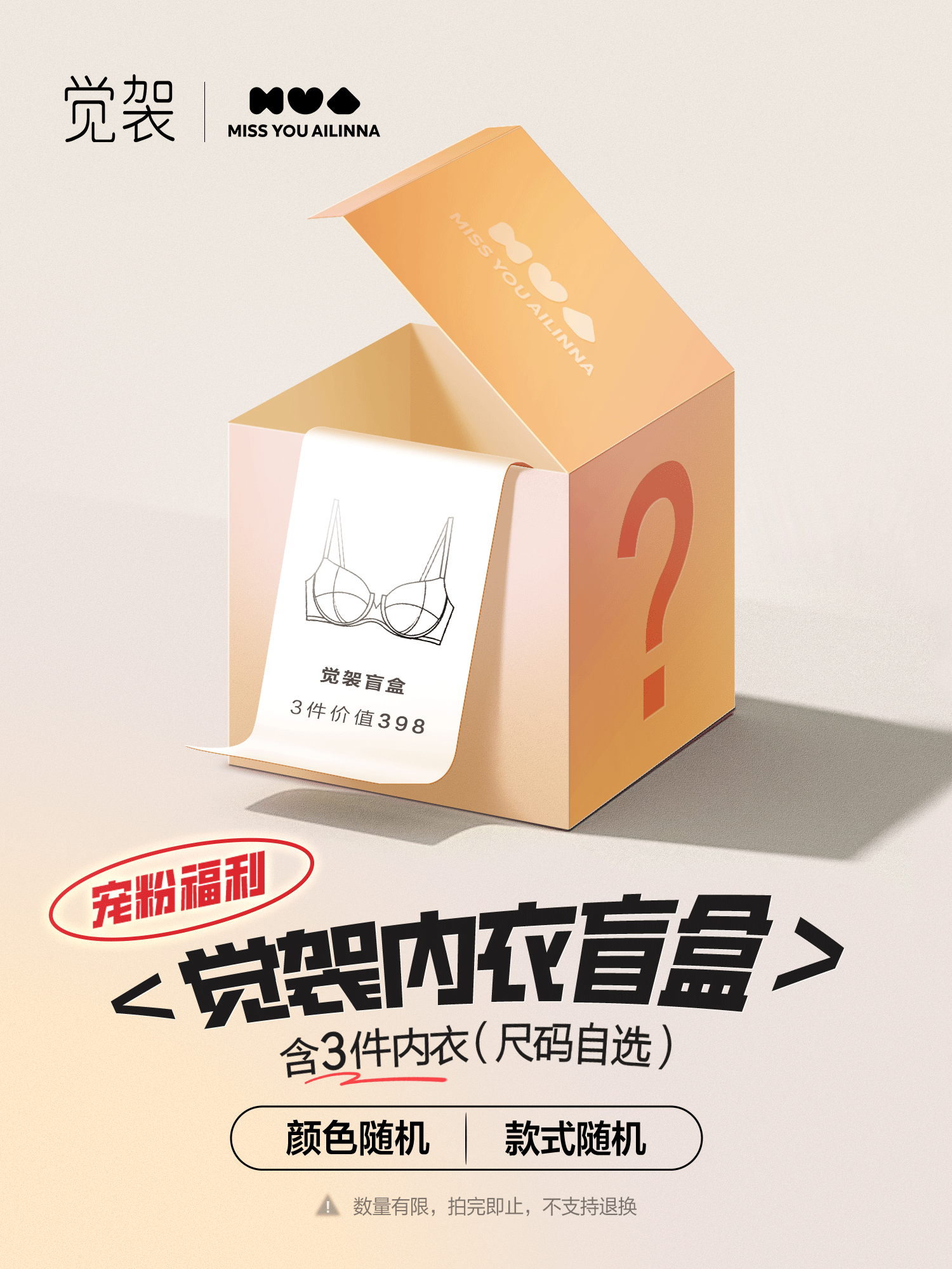 1.购买文胸盲盒收到的商品为随机搭配(款式、颜色随机)不支持指定,但尺码可选