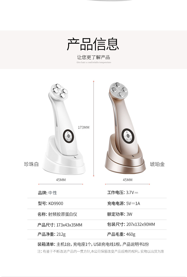 金稻美容仪导入仪家用微电流提拉紧致按摩仪射频胶原蛋白仪
