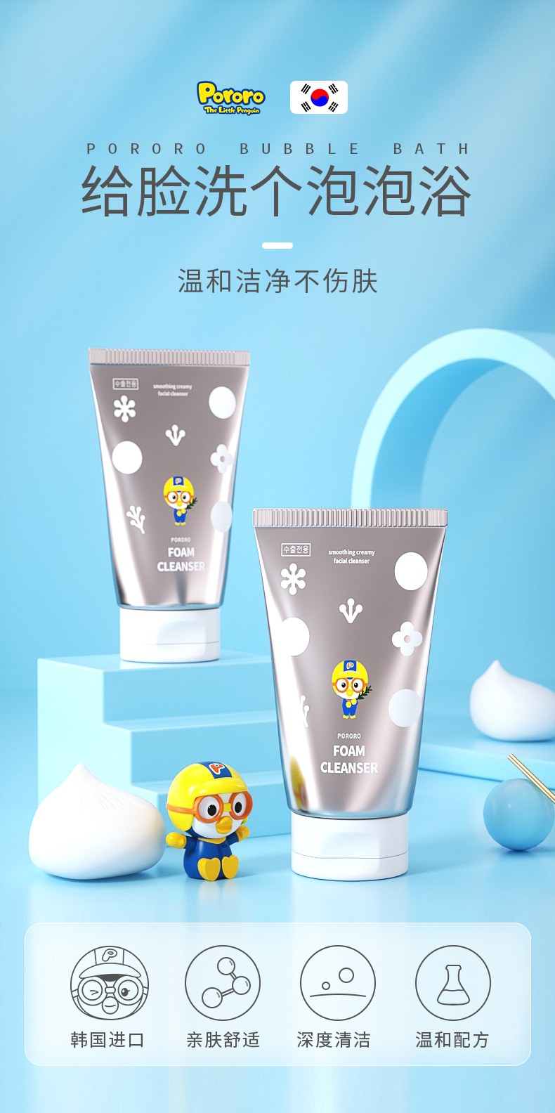 【中欧班列】韩国啵乐乐泡沫洁面乳 原装进口宝宝洁面乳亲肤温和深度洁净洗面奶 120g/支WHBX