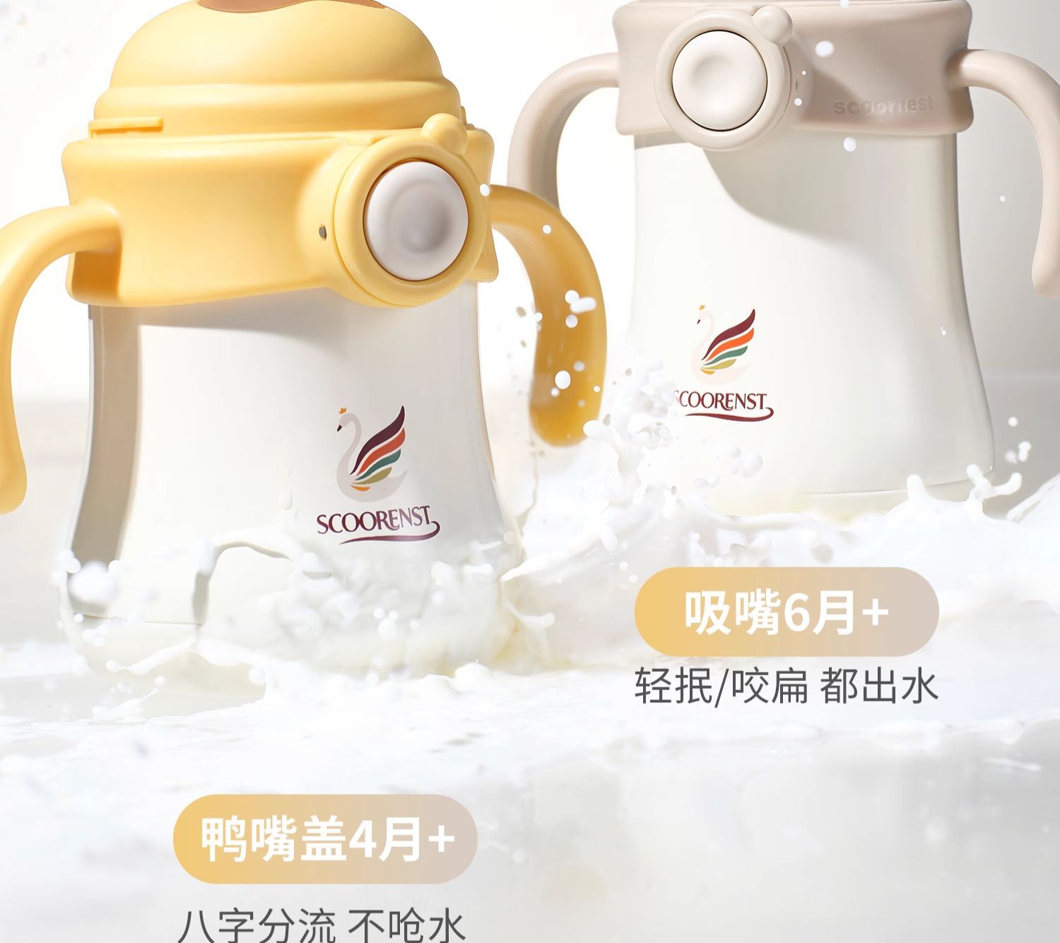 科巢小月龄保温杯喝奶奶瓶鸭嘴学饮杯4个月以上宝宝外出吸管水杯
