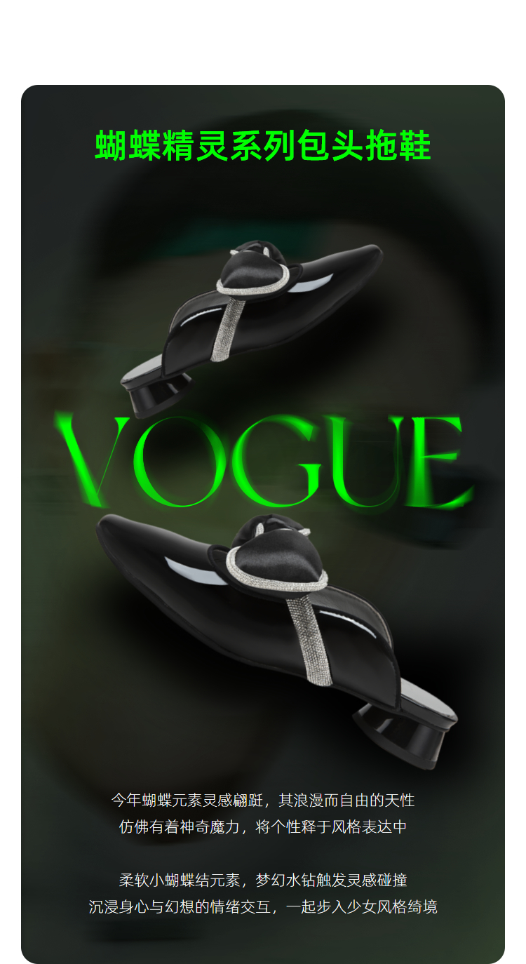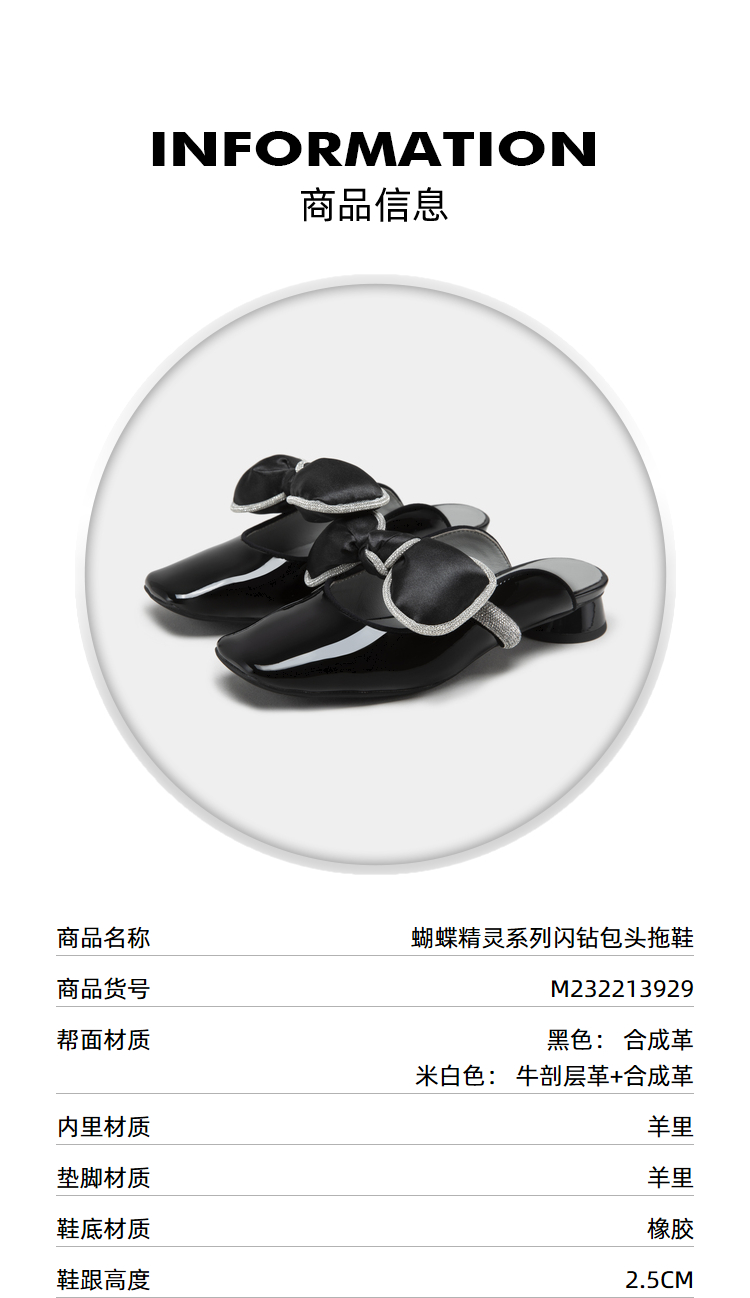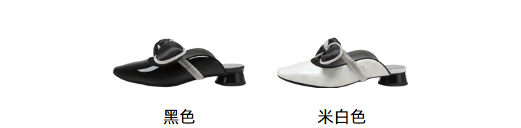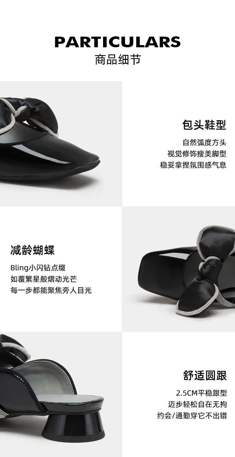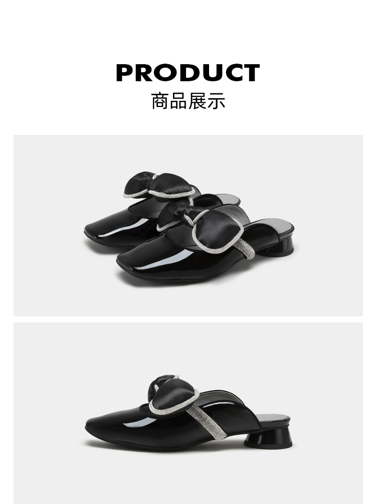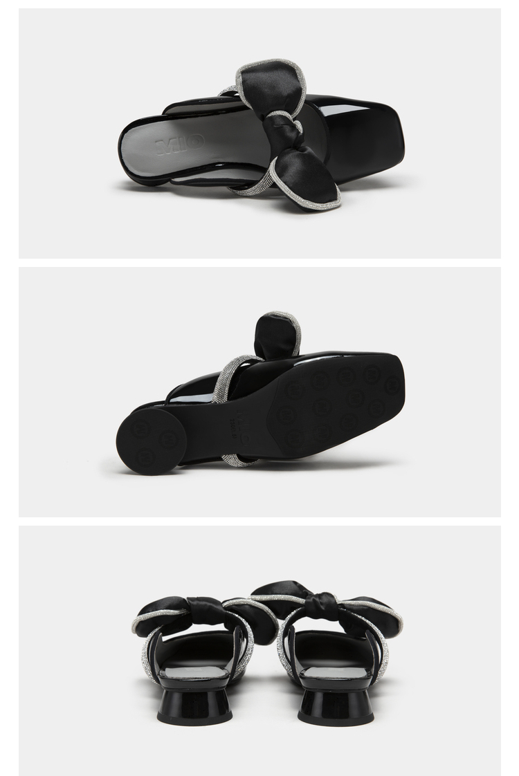 MIO米奥夏季韩版方头圆跟小闪钻蝴蝶结时髦通勤舒适包头拖女M232213929