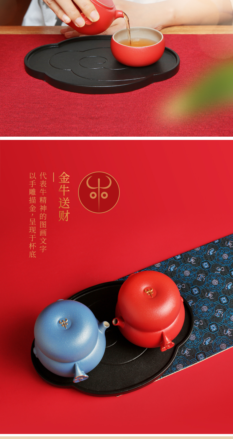 玉青瓷 观自在系列 一壶四杯一公道一茶盘 茶盘包装 观自在A