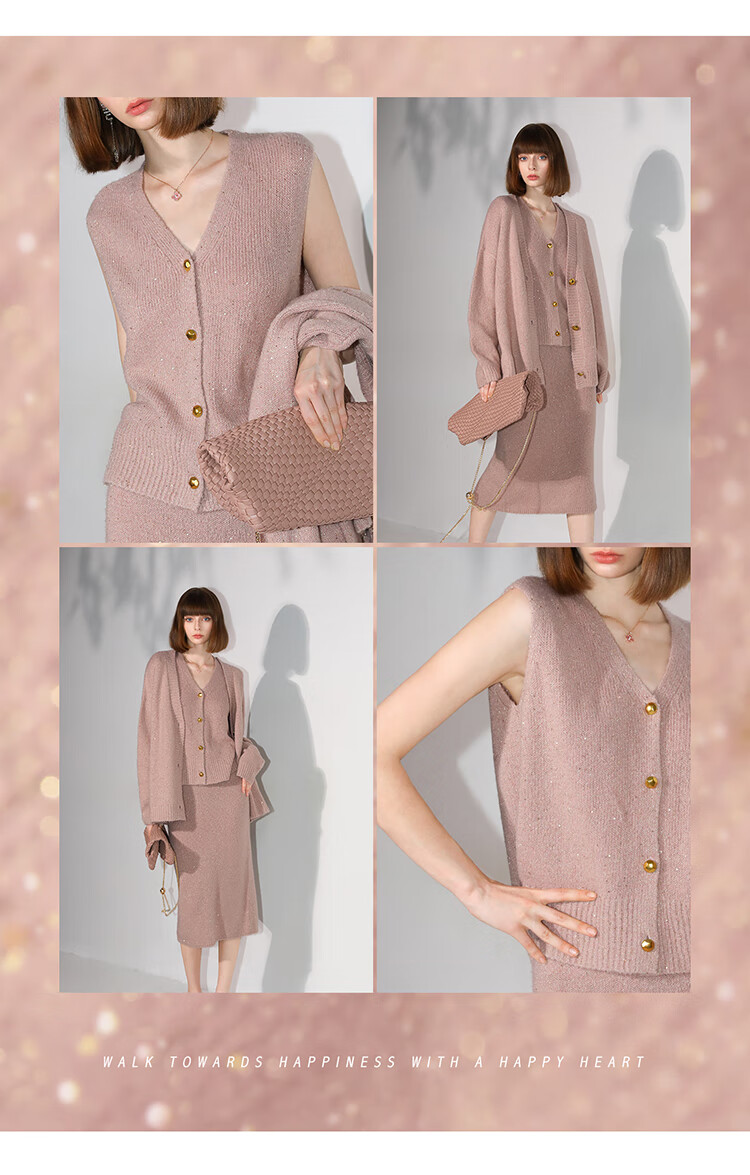 COCOBELLA[璀璨星河]细闪亮片金丝软糯针织马夹叠穿马甲WS508