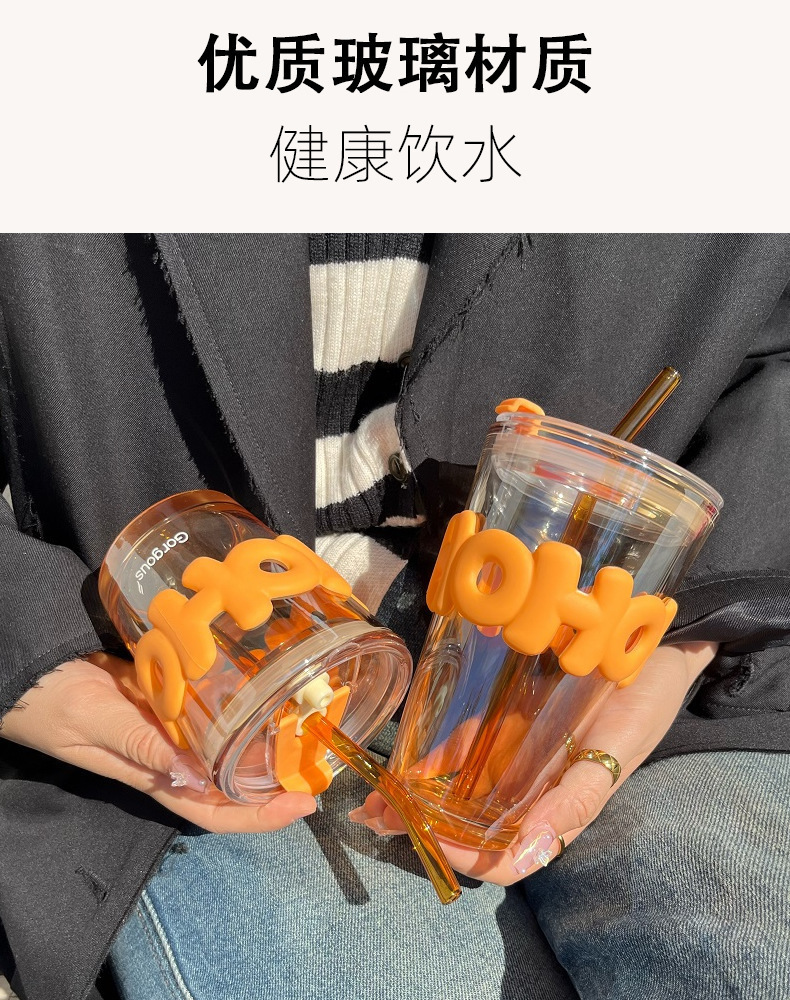 「8.9包邮!高颜值」ins风玻璃杯双饮杯伴手礼杯子 竹节杯礼品水杯吸管杯餐饮用具