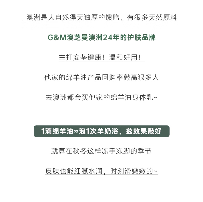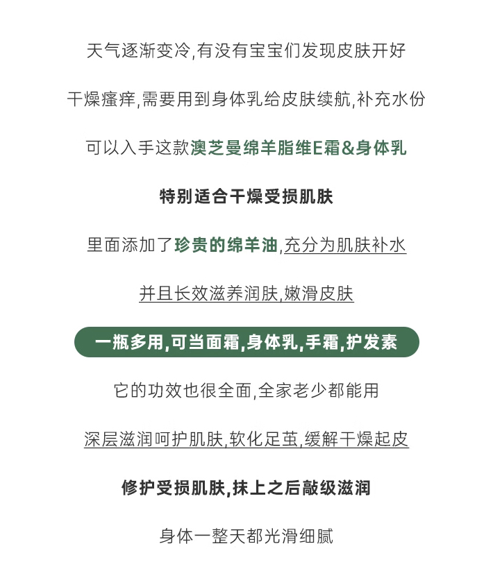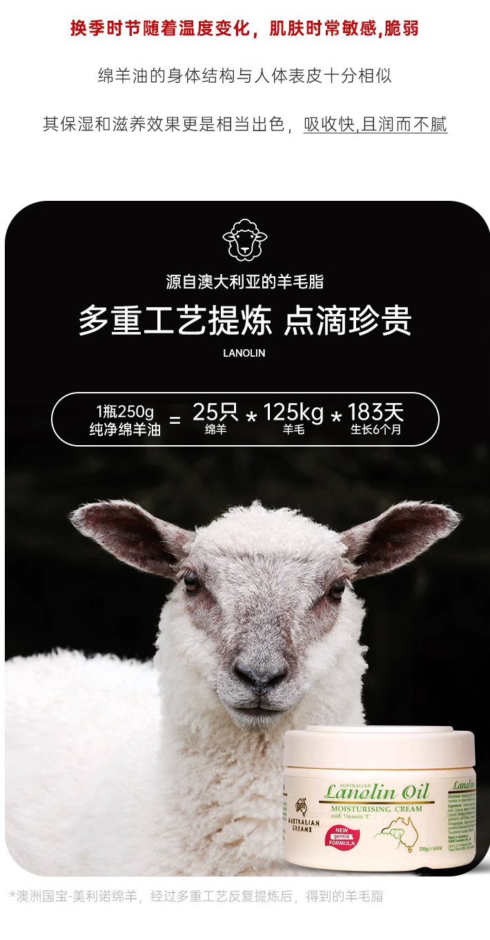 澳大利亚纯净羊毛脂,配方安全无刺激,让你用的安心!全家上下,从头到脚,这一套就能轻松搞定