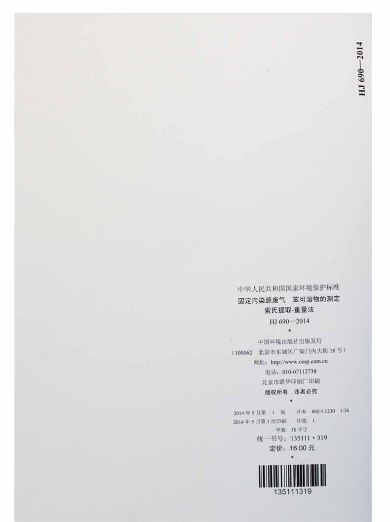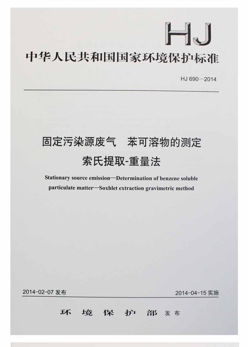 HJ 690-2014 固定污染源废气 苯可溶物的测定 索氏提取—重量法国家标准 国标GB环境保护中国环境出版社 135111319