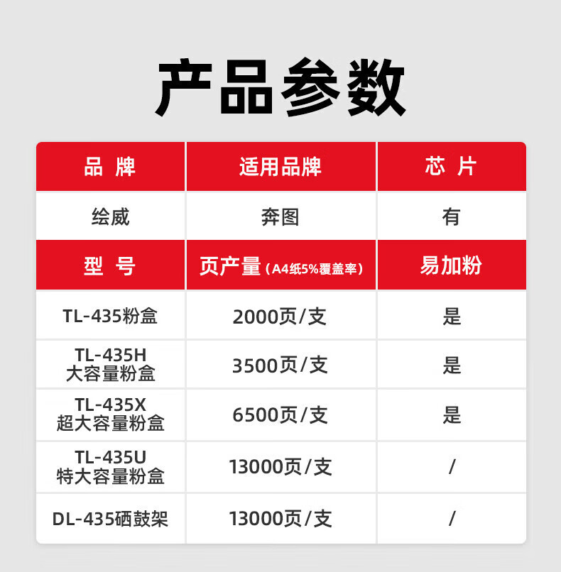 绘威 TL-435U特大容量粉盒 适用奔图PANTUM P3365DN M7165DN P3385DN M7185DN打印机硒鼓 墨粉盒 墨盒