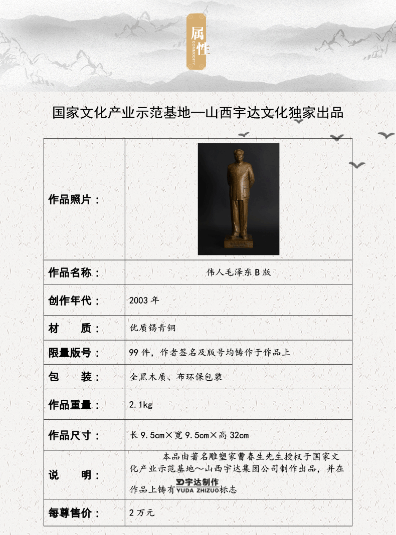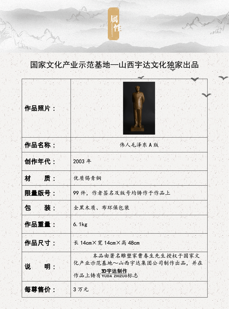 宇达青铜摆件 曹春生作品《伟人毛泽东》限量99件艺术装饰摆件