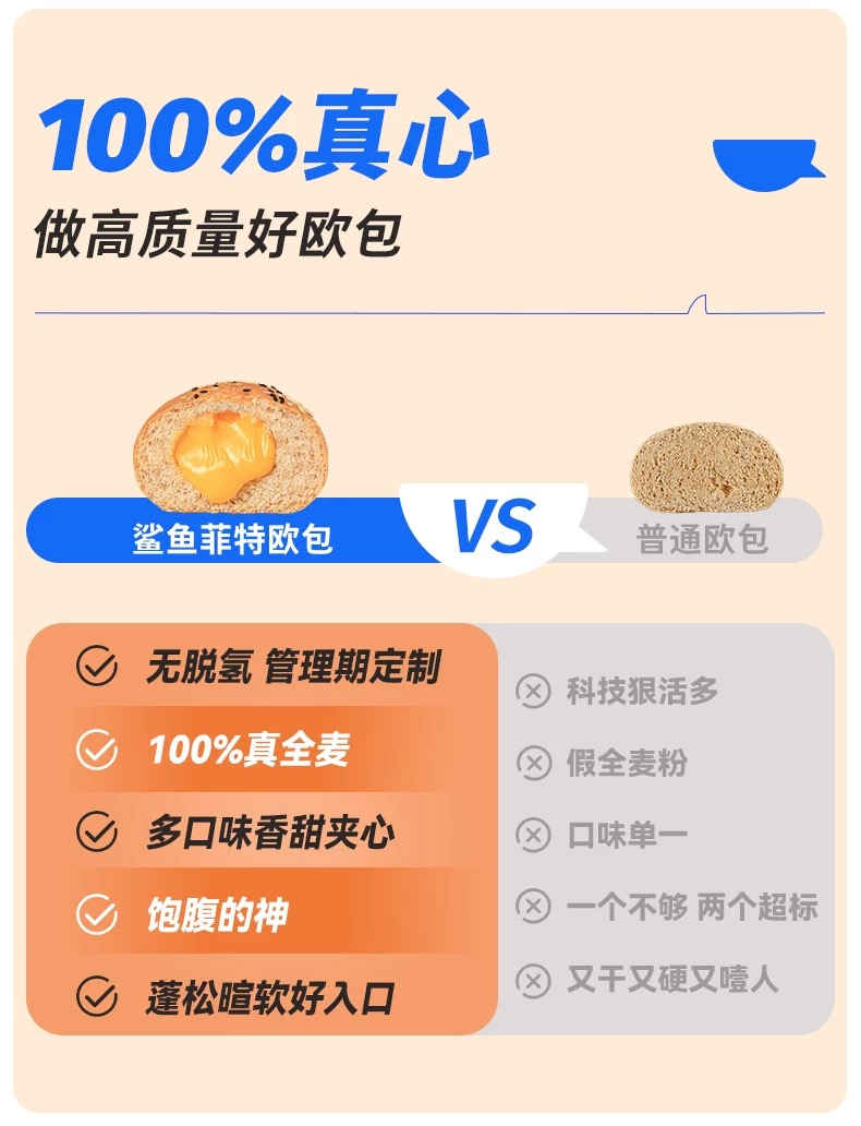 鲨鱼菲特丨全麦夹心欧包850g(17只5种口味混搭)