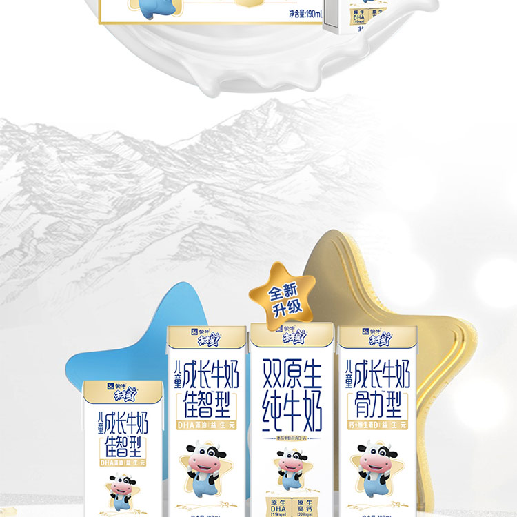 【自营】蒙牛未来星双原生纯牛奶全脂190ml×12瓶