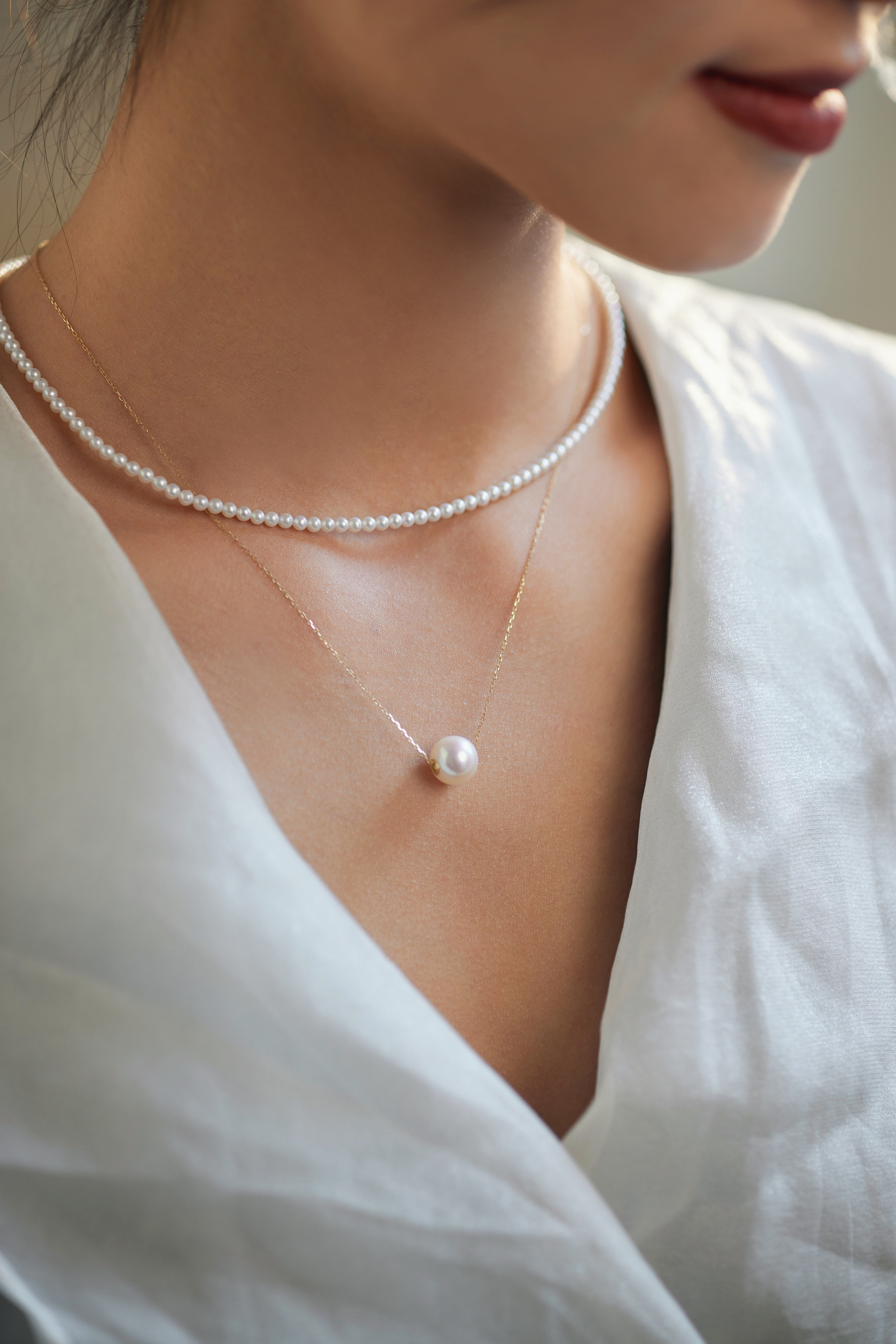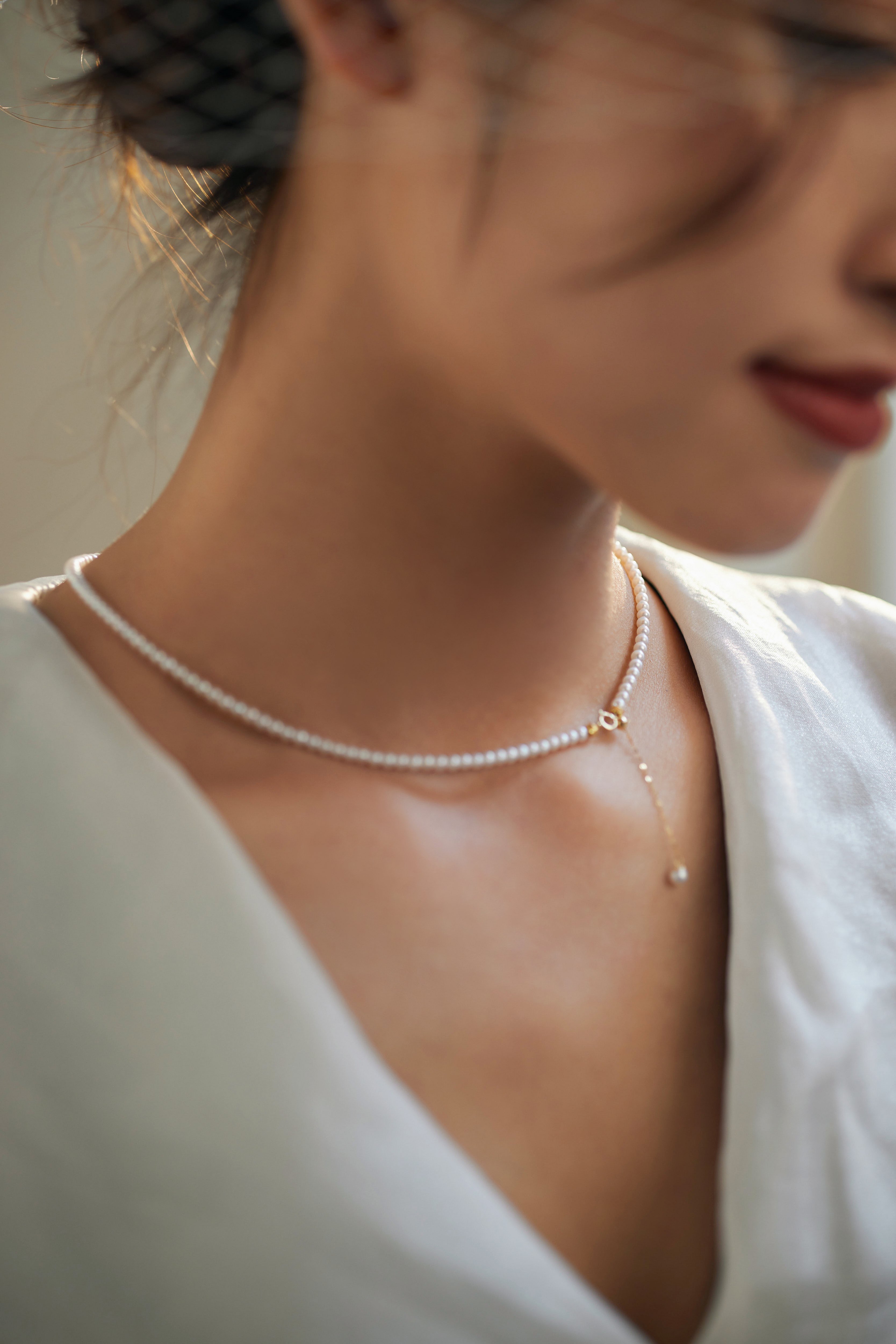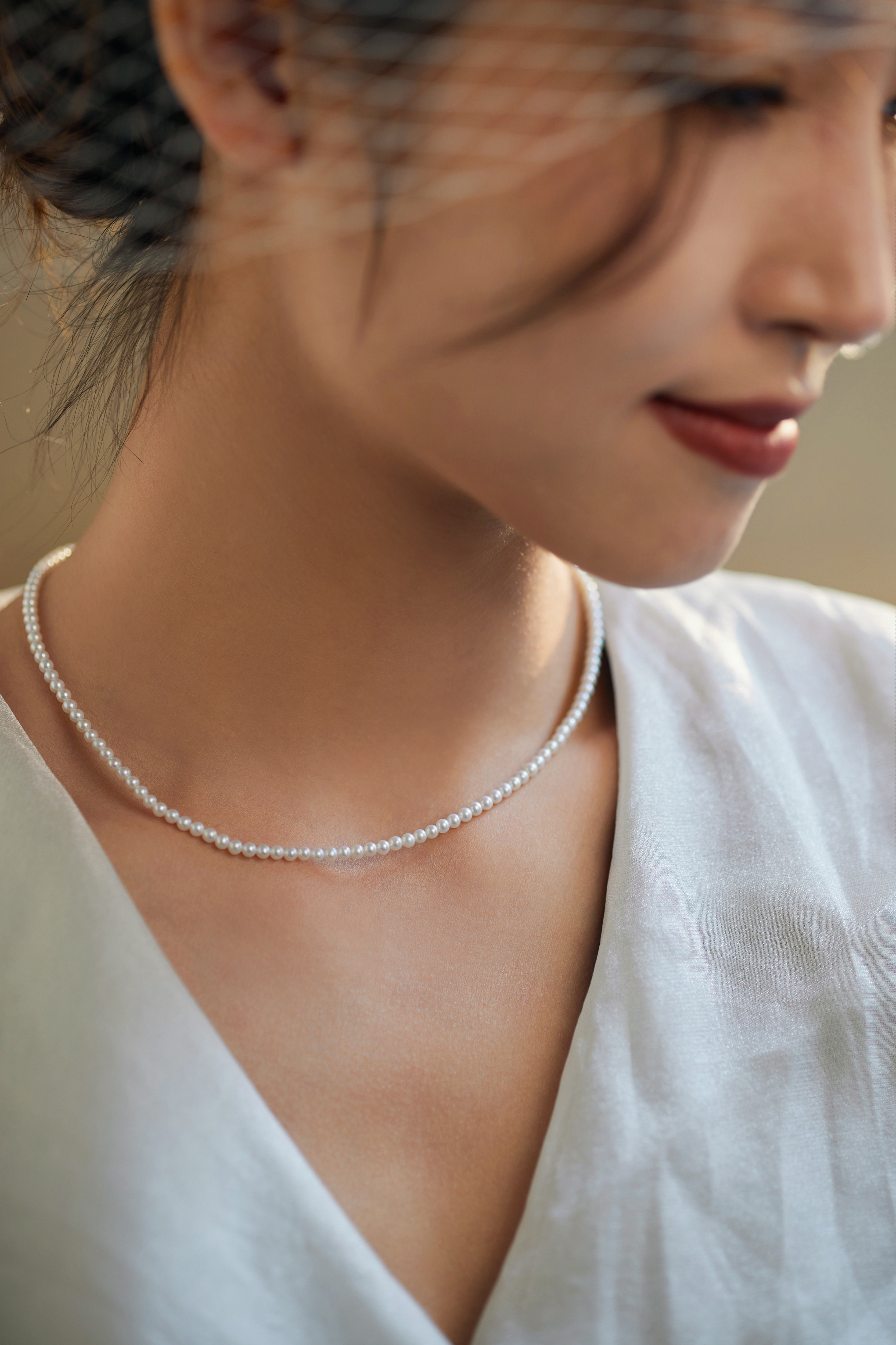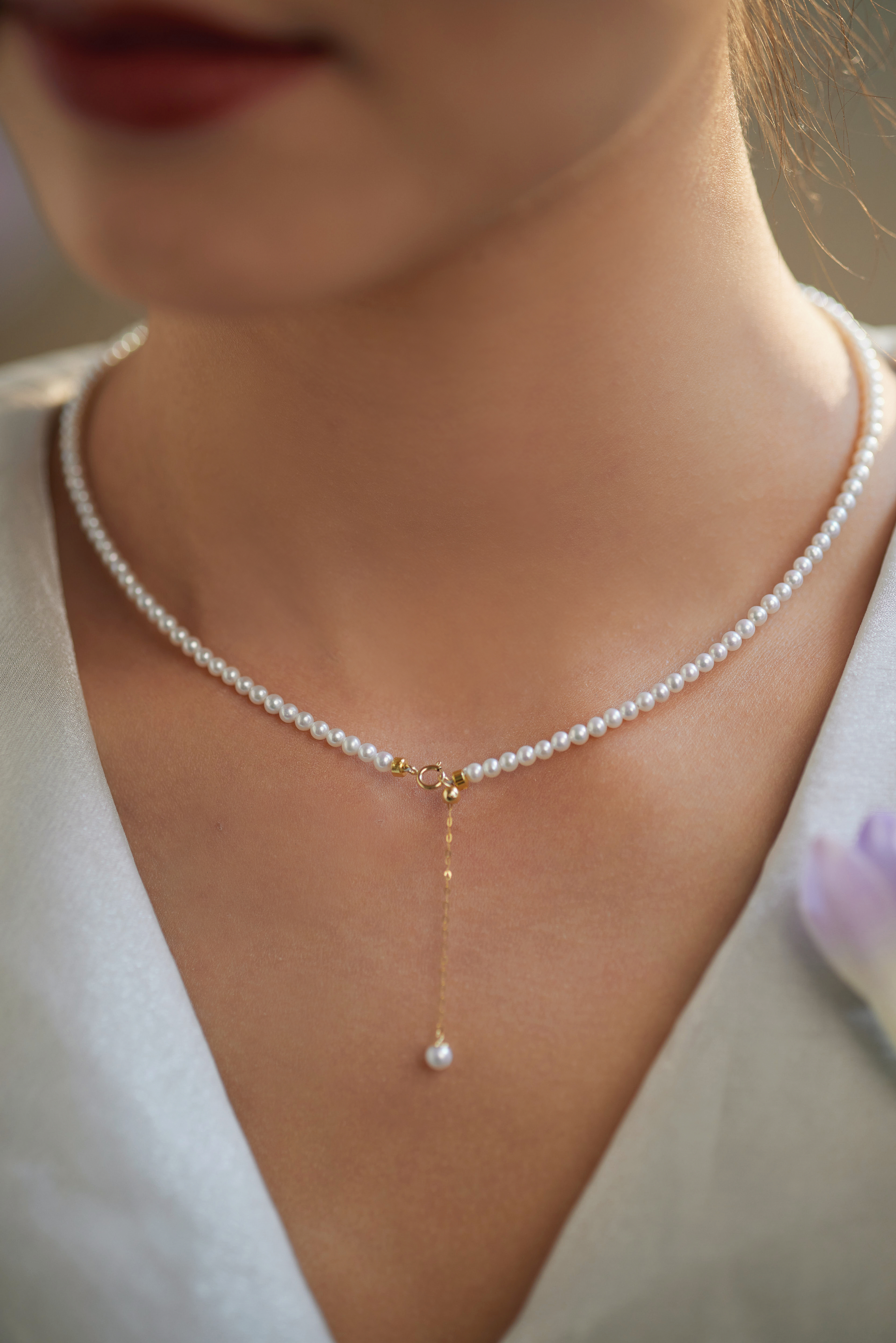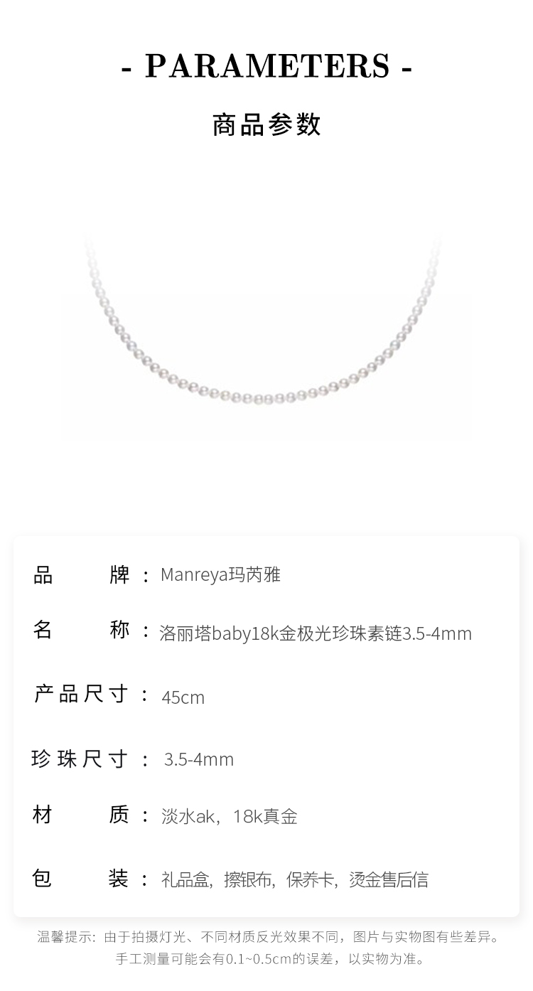 【孤品仅1条】洛丽塔baby18k金极光珍珠素链3.5-4mm