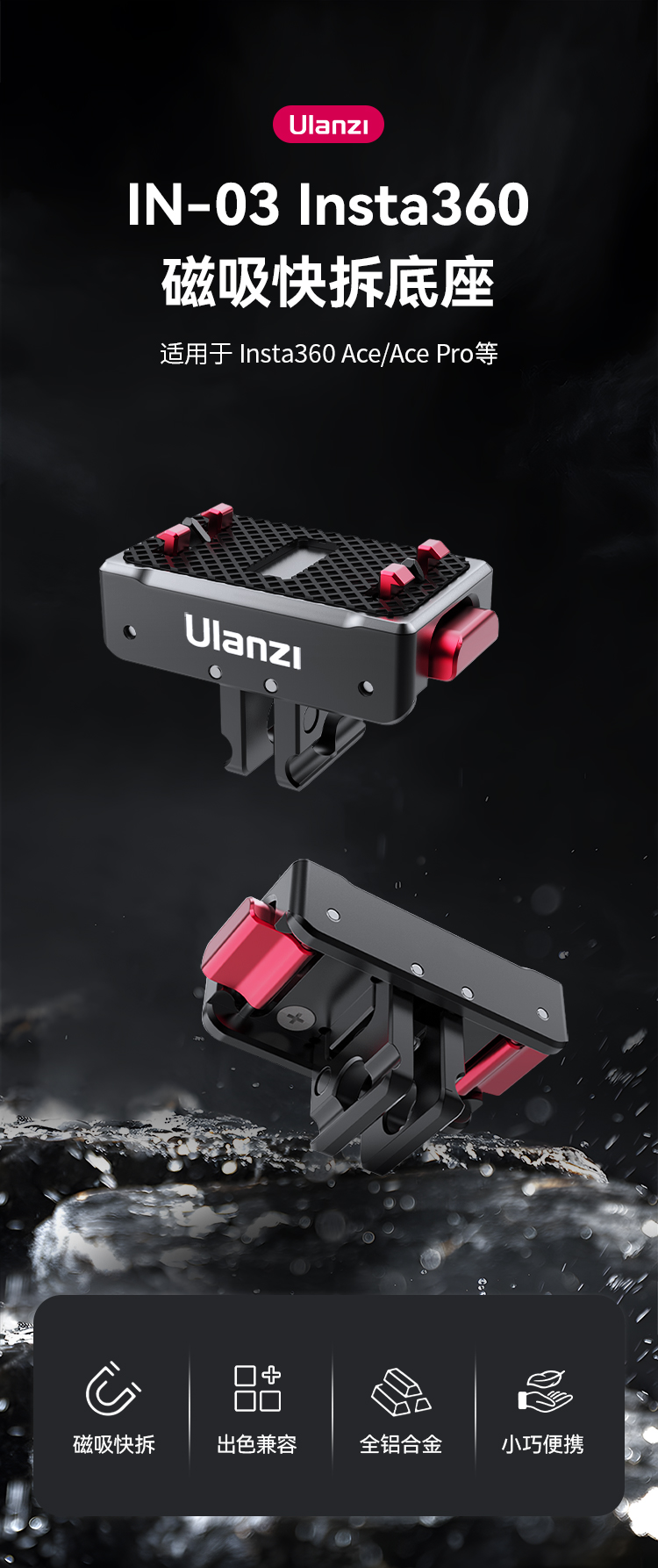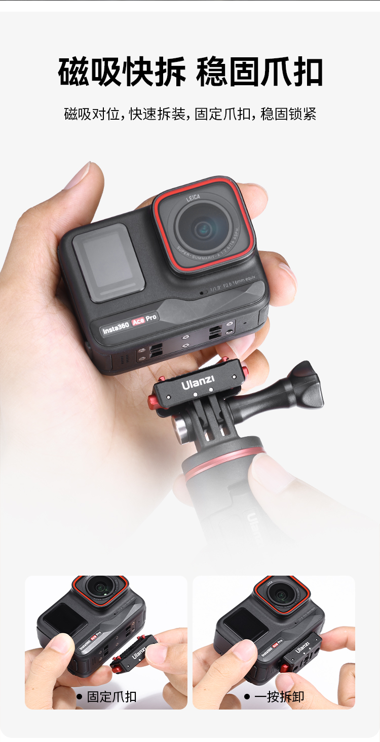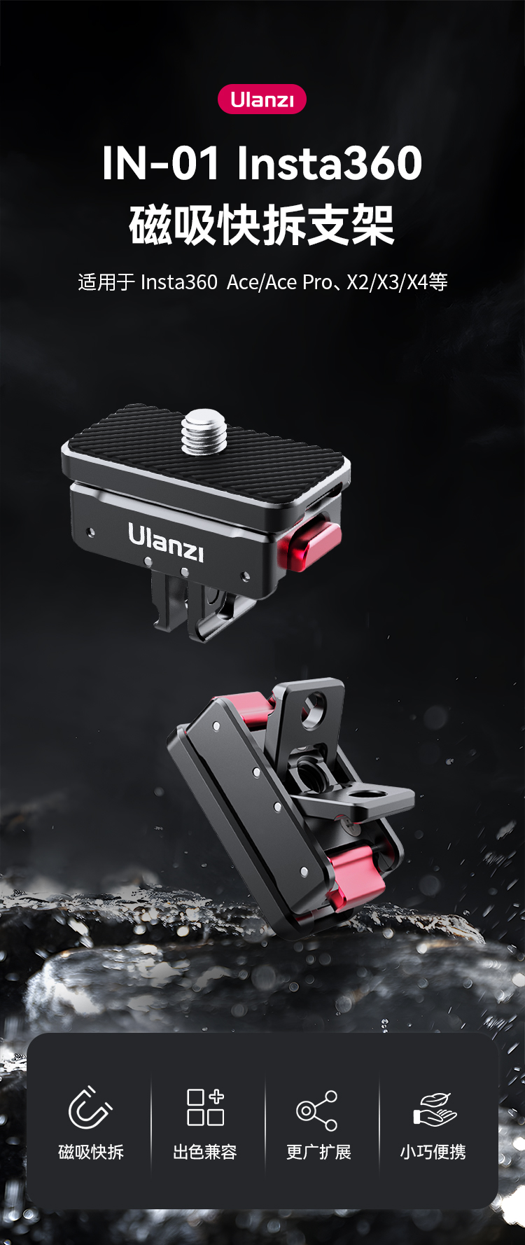 Ulanzi 优篮子 IN-01磁吸快拆支架/IN-03磁吸快拆底座1/4接口适用Insta360 GoPro