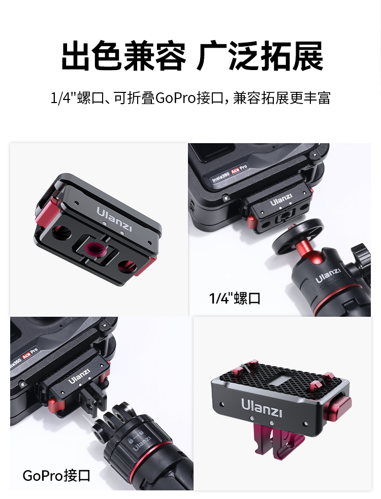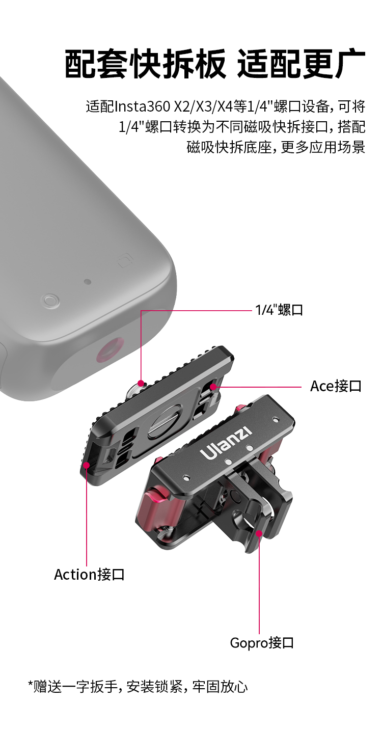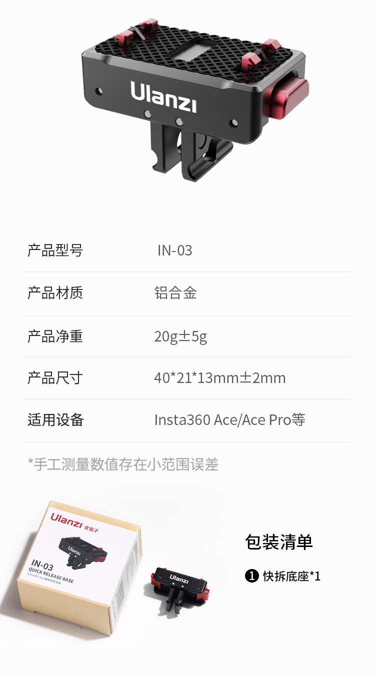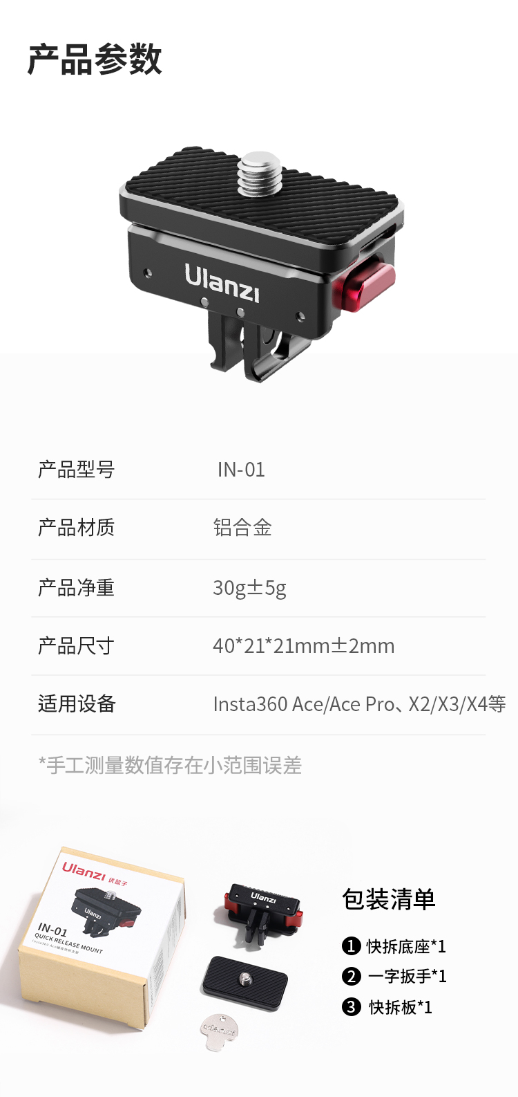 Ulanzi 优篮子 IN-01磁吸快拆支架/IN-03磁吸快拆底座1/4接口适用Insta360 GoPro