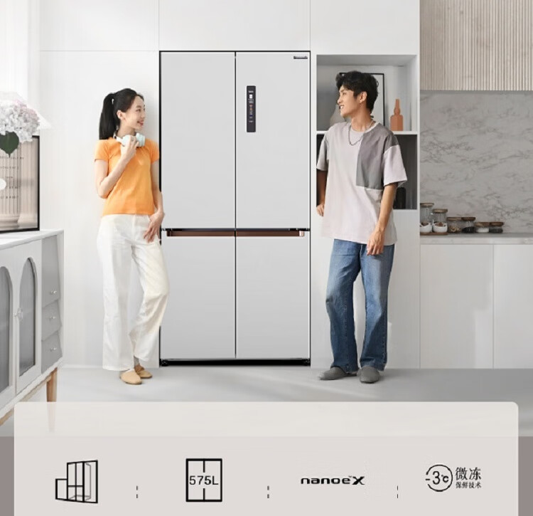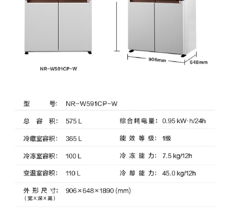 松下(Panasonic) 575升超薄嵌入式大容量十字对开门冰箱 微冻保鲜臻材保鲜宽幅变温双循环 NR-W591CP-W