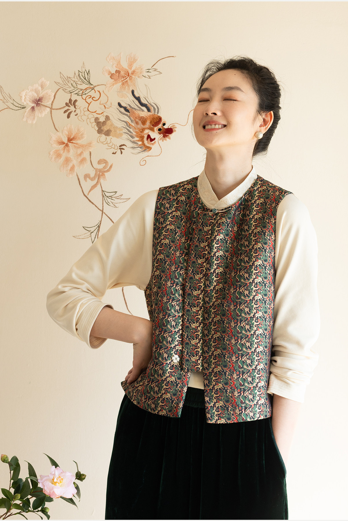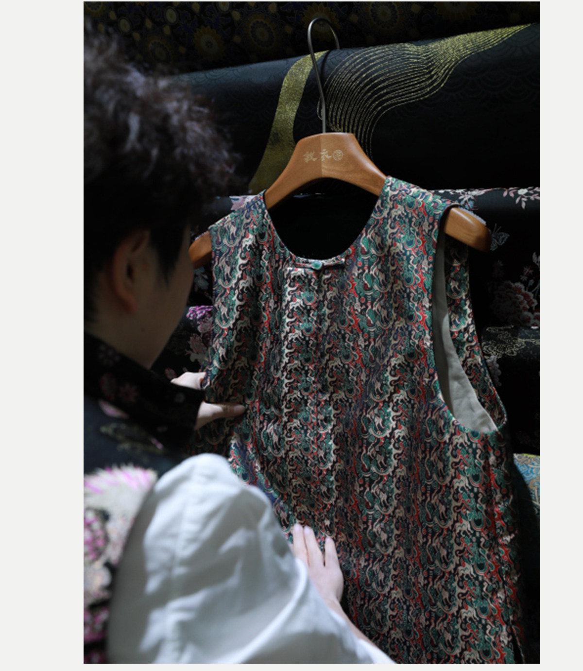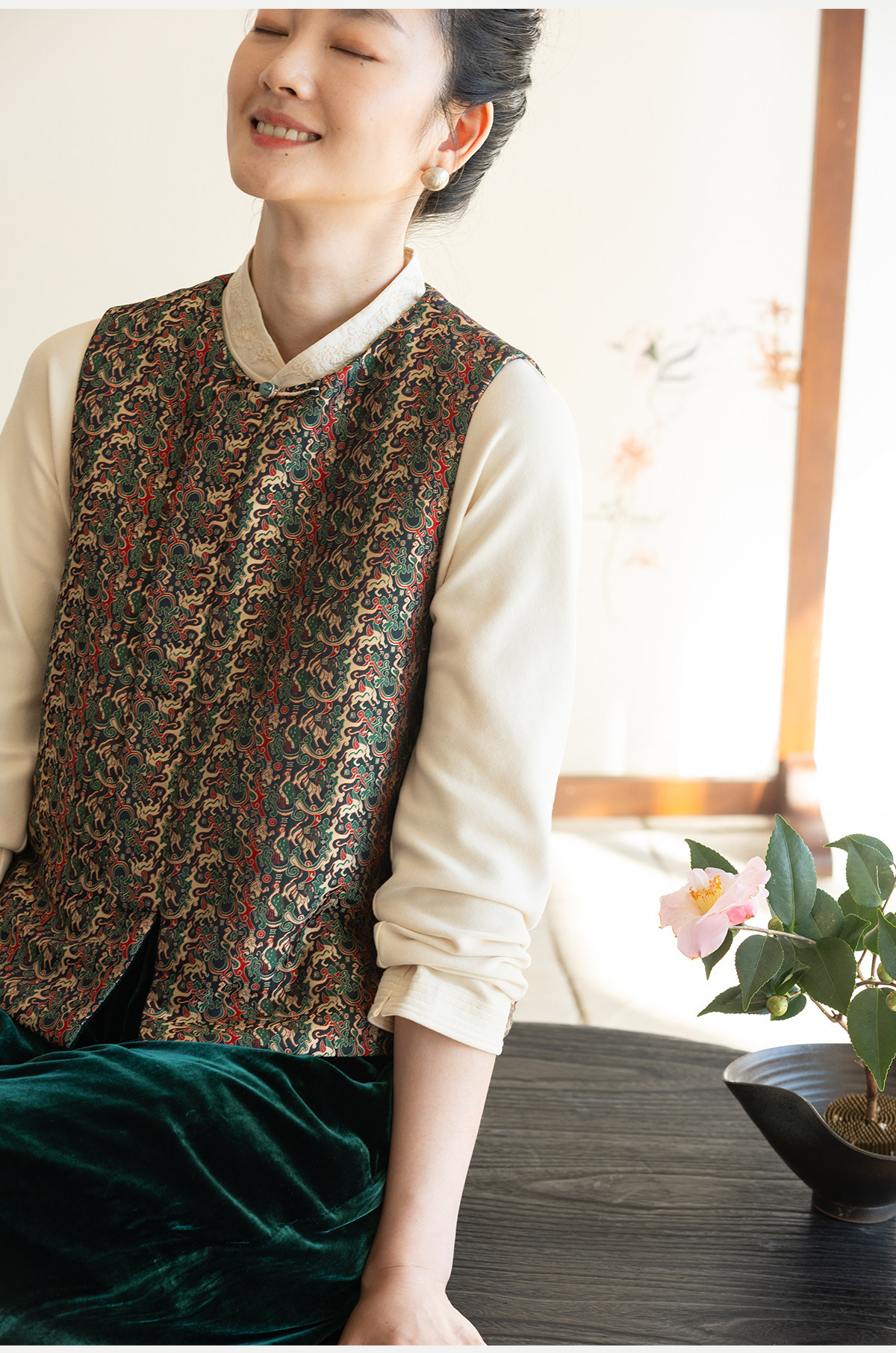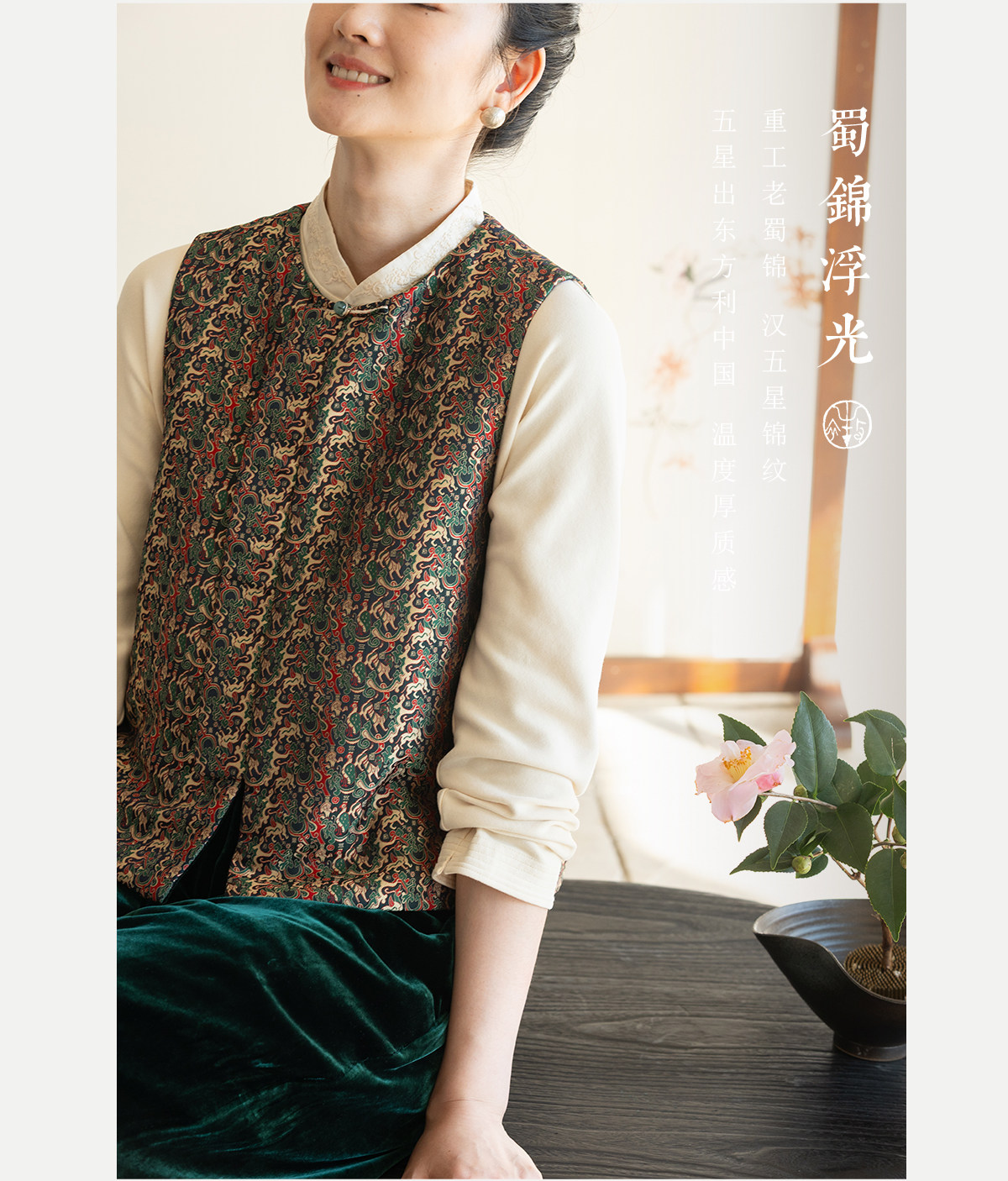 牧衣游原创 38姆米重磅五星出东方老蜀锦马夹复古时尚新中式 雅霜