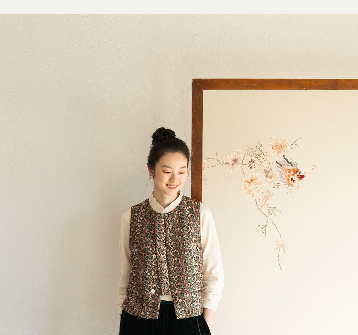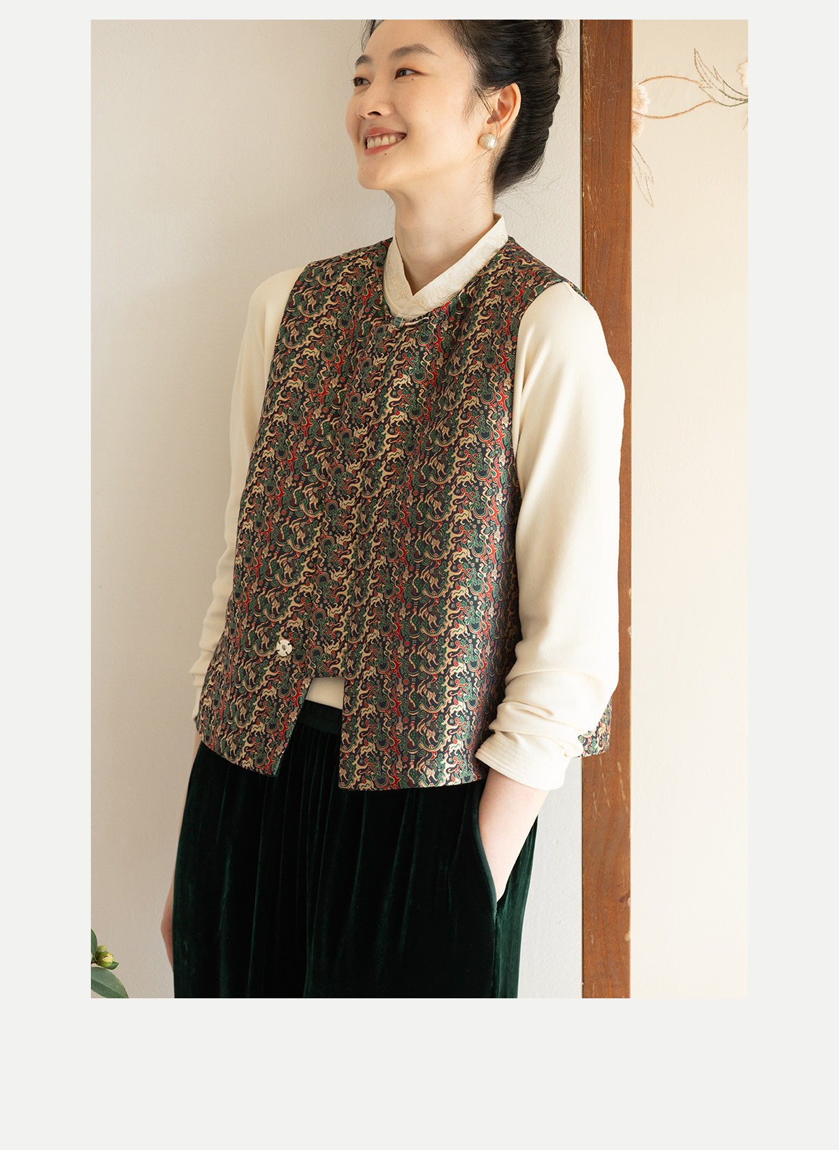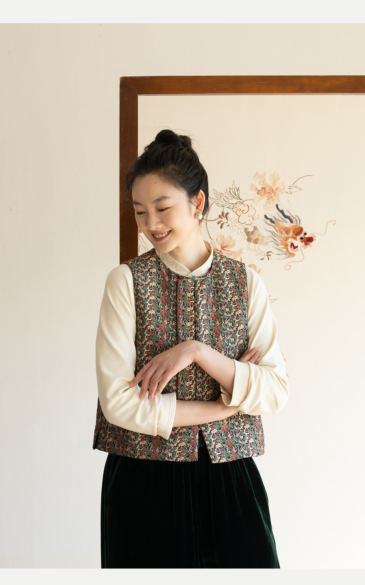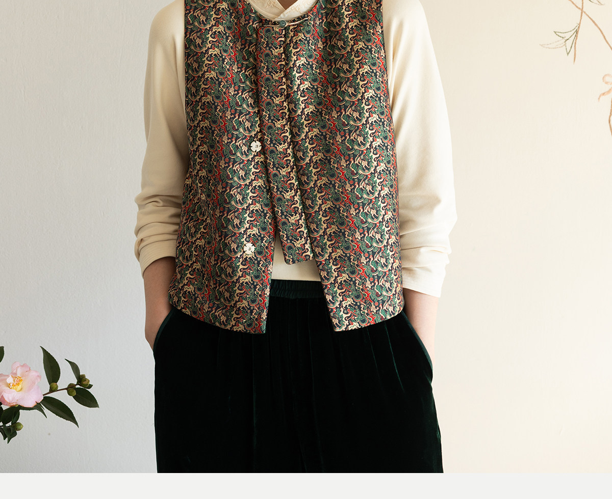 牧衣游原创 38姆米重磅五星出东方老蜀锦马夹复古时尚新中式 雅霜