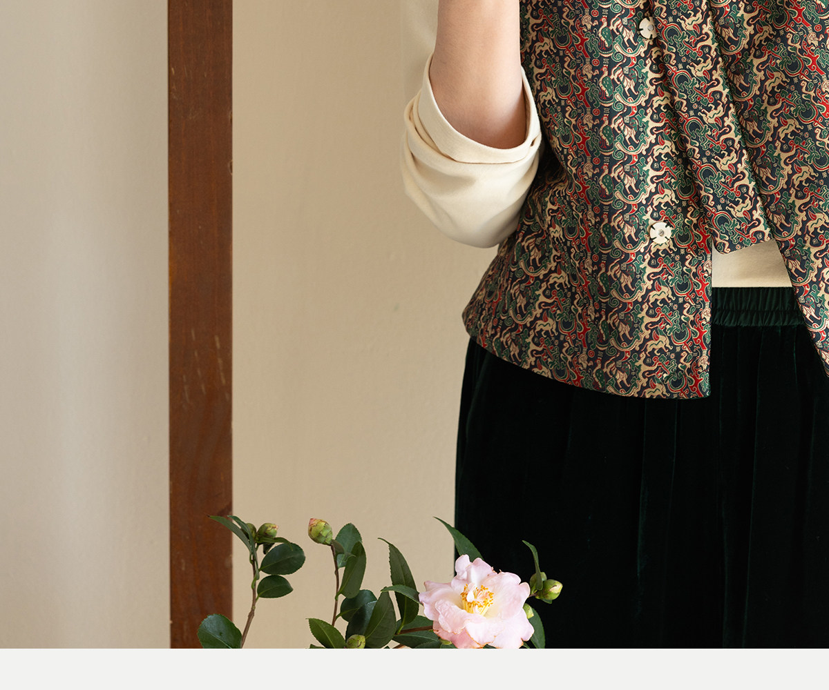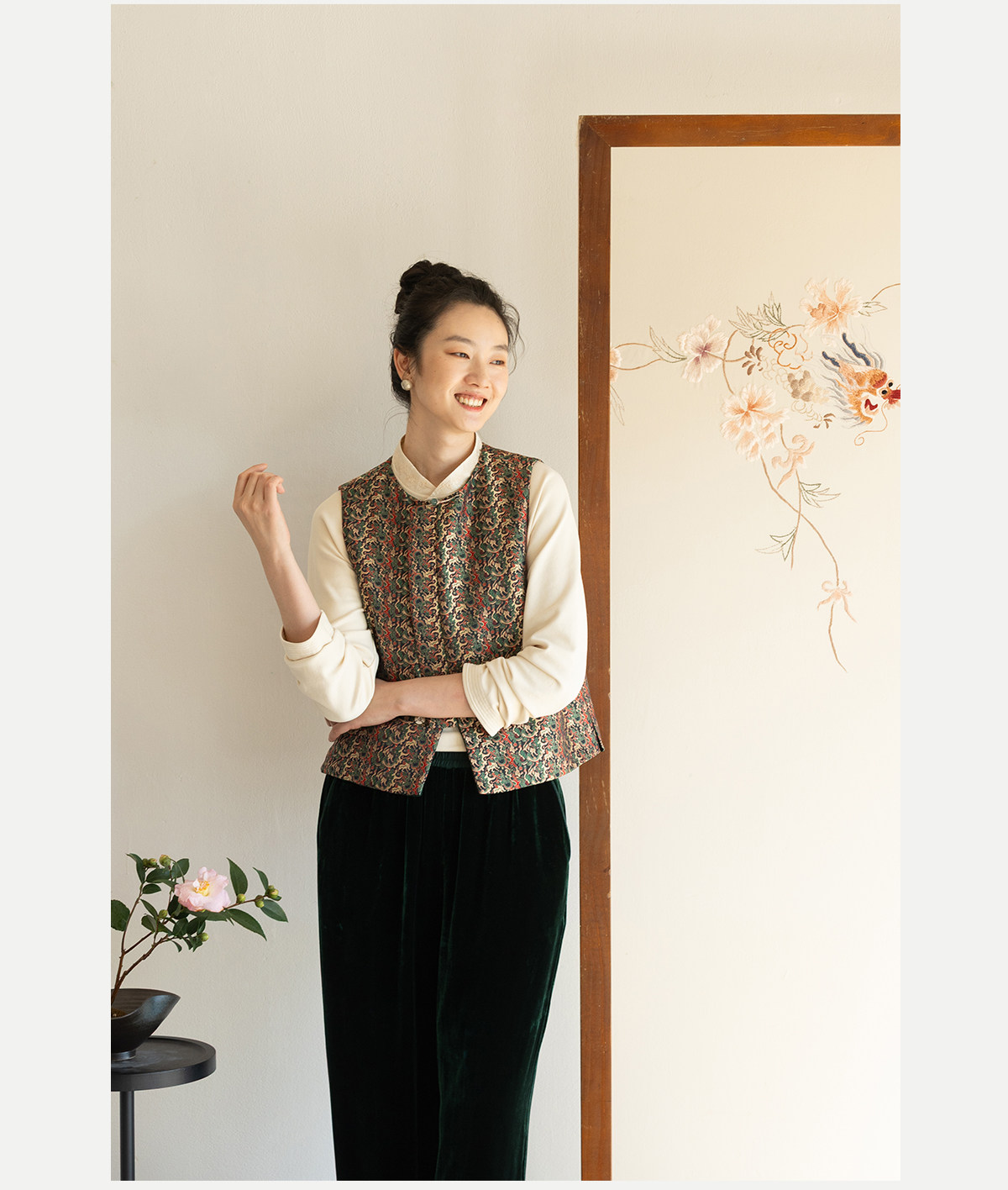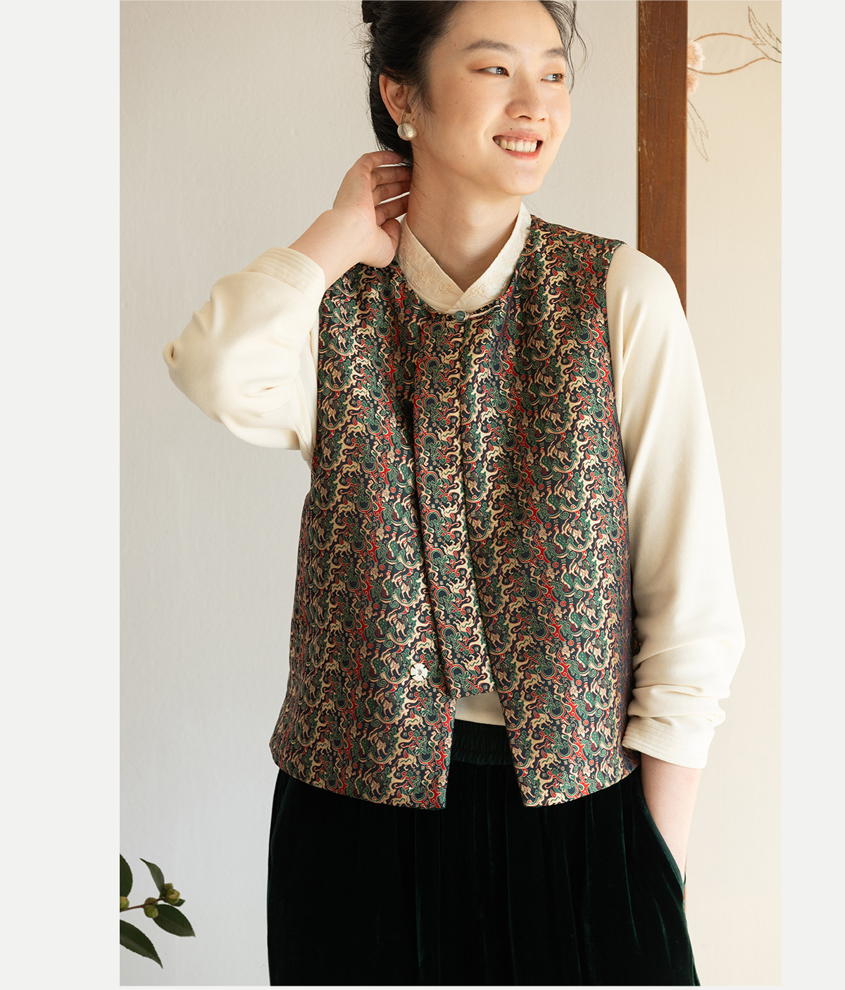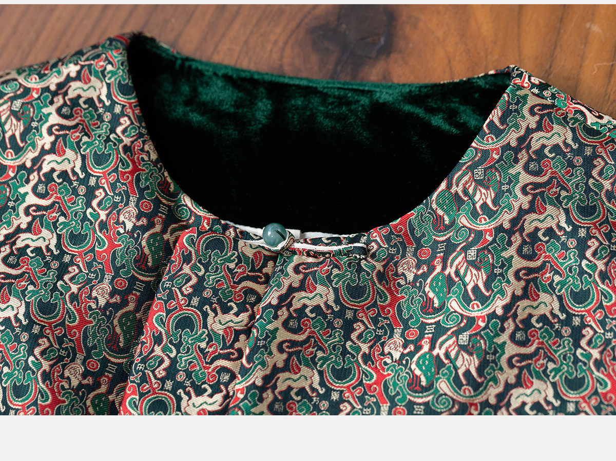 牧衣游原创 38姆米重磅五星出东方老蜀锦马夹复古时尚新中式 雅霜
