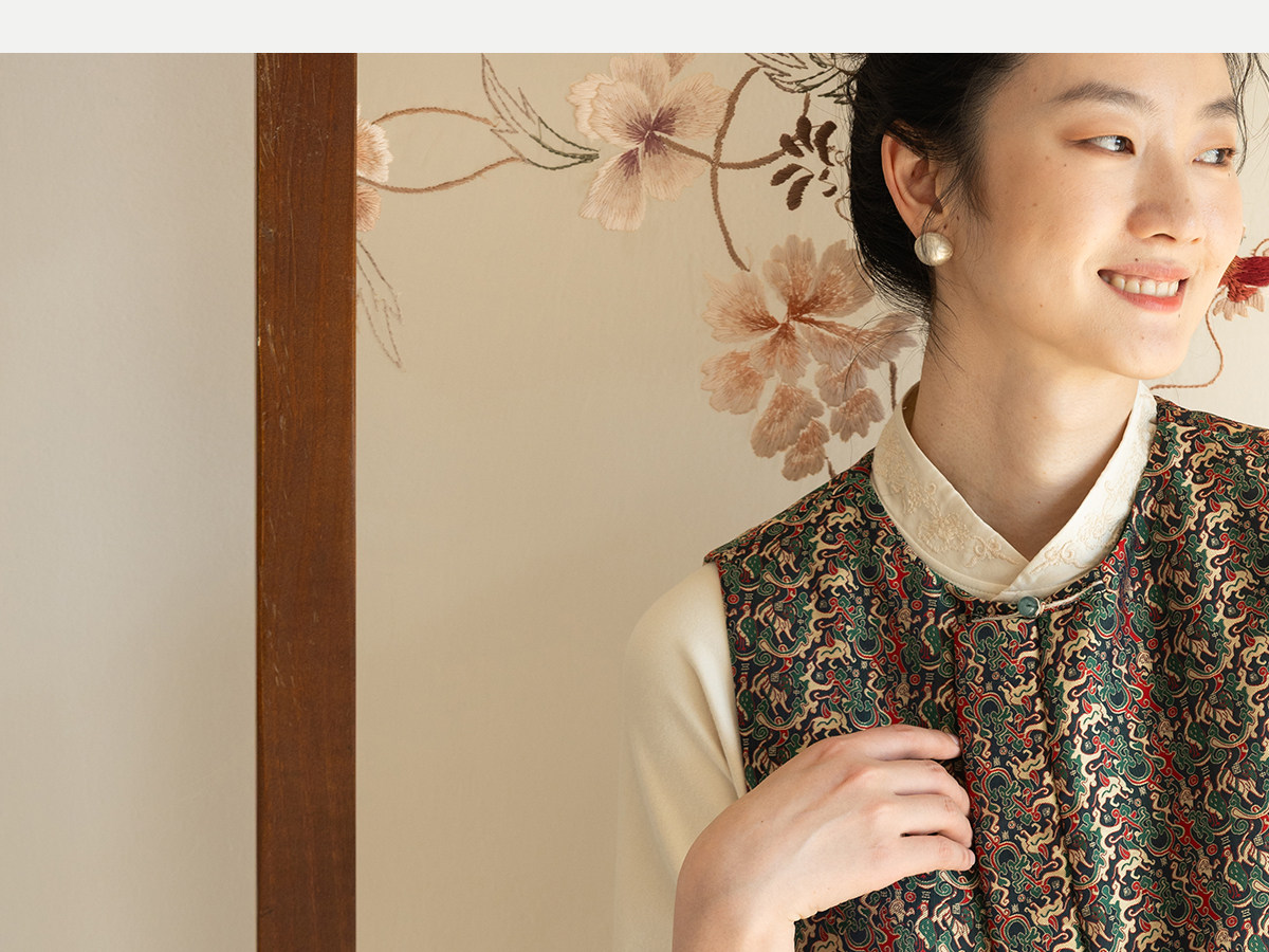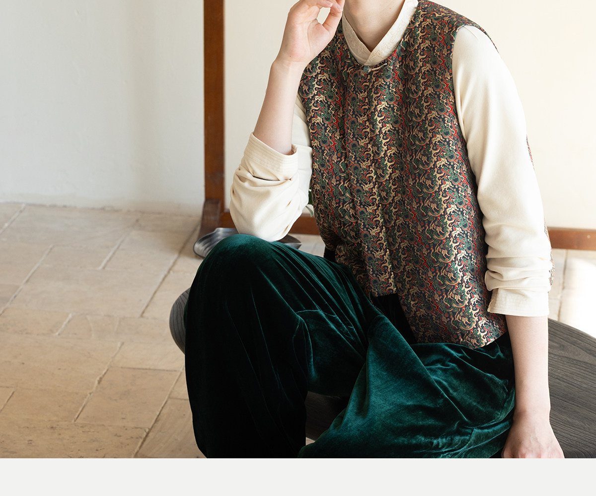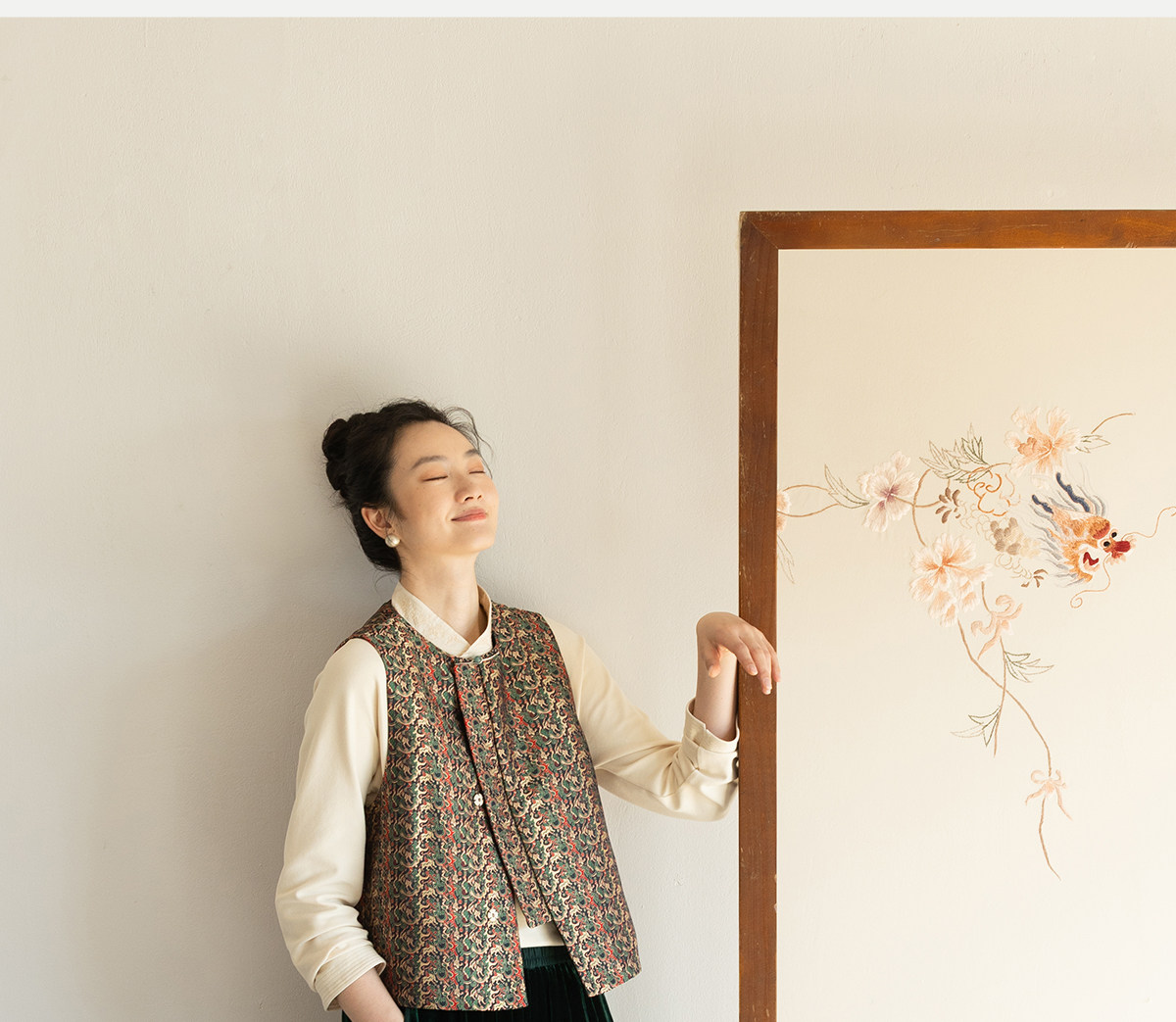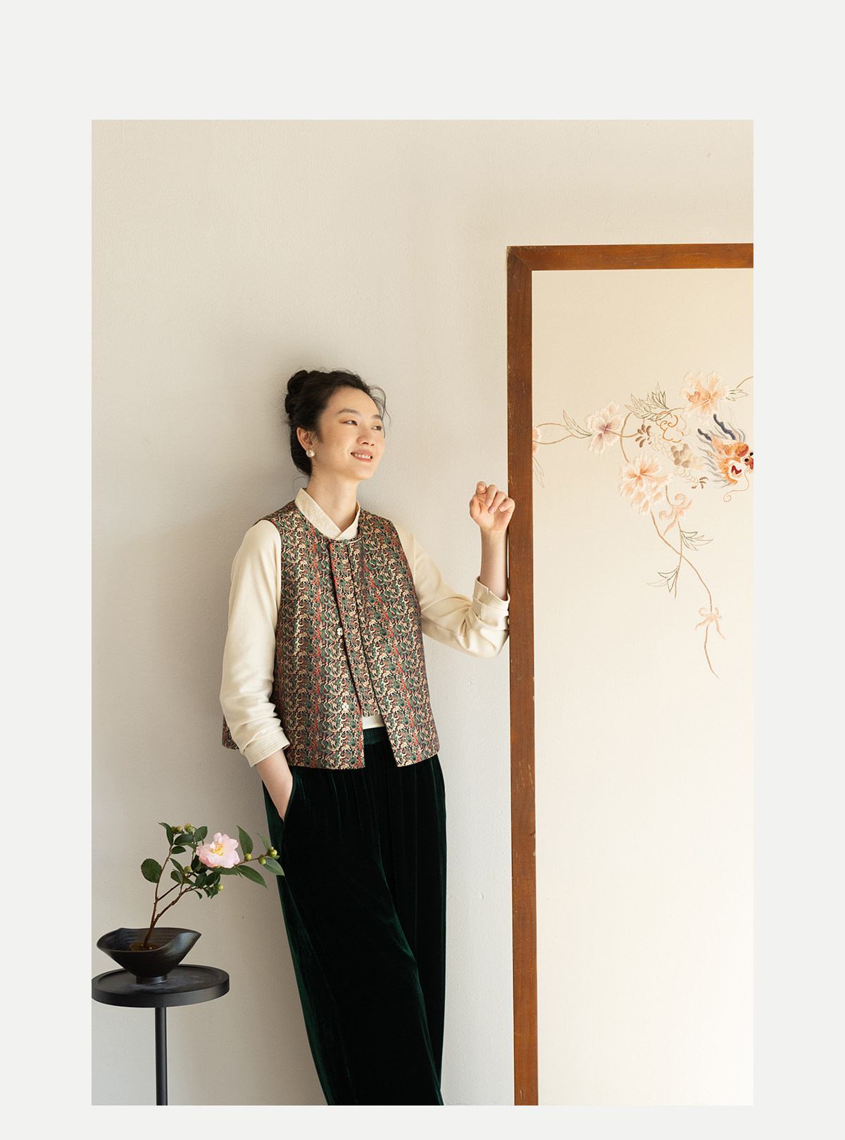 牧衣游原创 38姆米重磅五星出东方老蜀锦马夹复古时尚新中式 雅霜