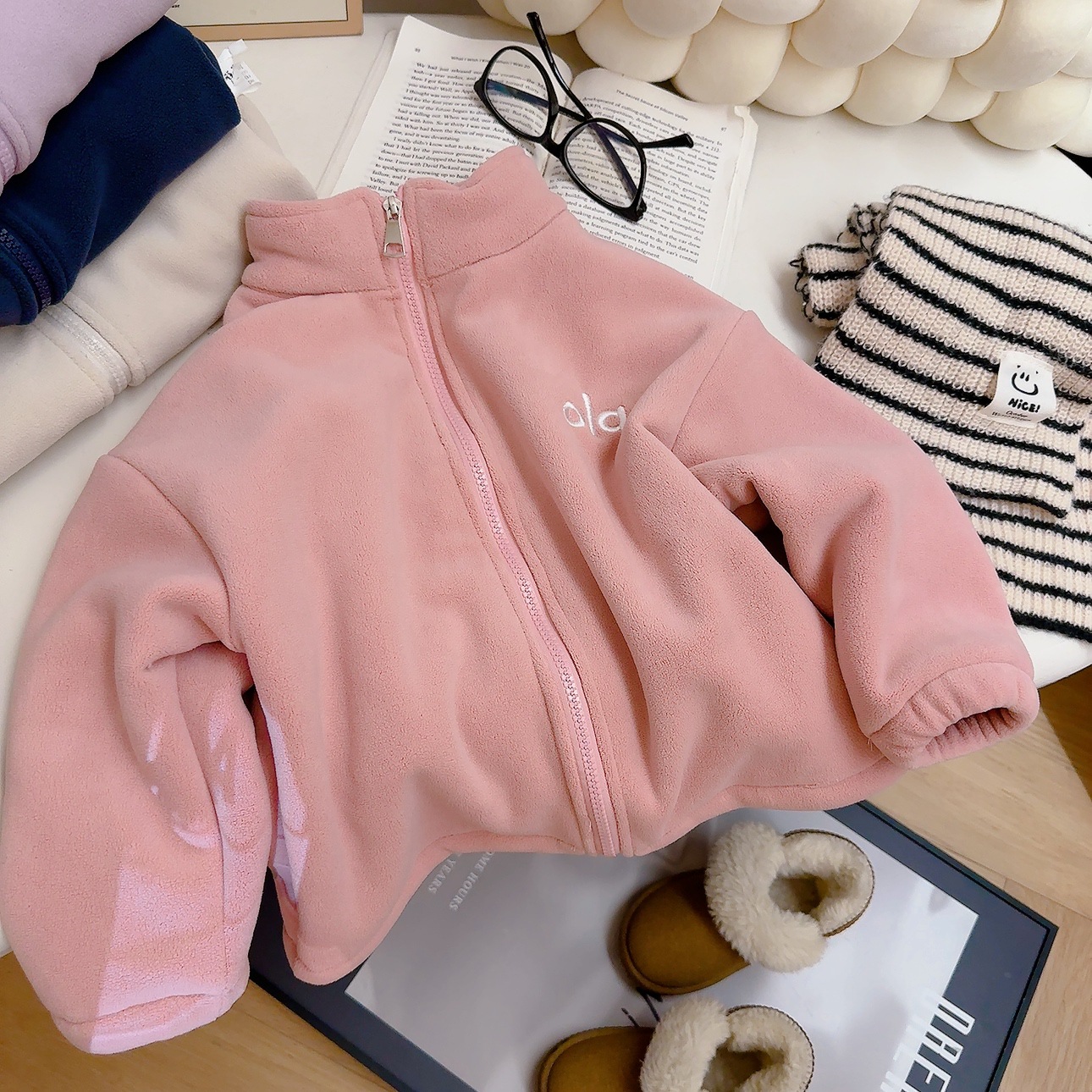 儿童奥粒绒马卡龙拼接外套男女童加绒立领保暖冬季中大童加绒加厚双面绒外套