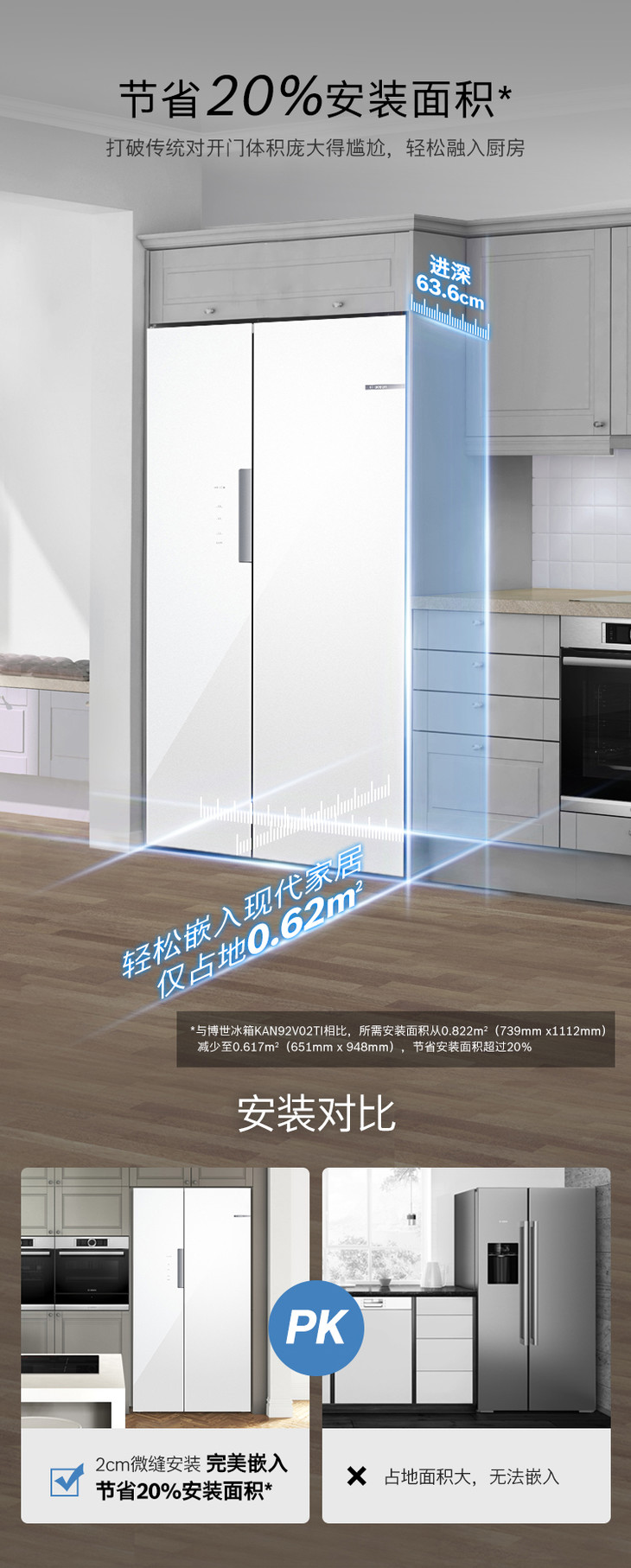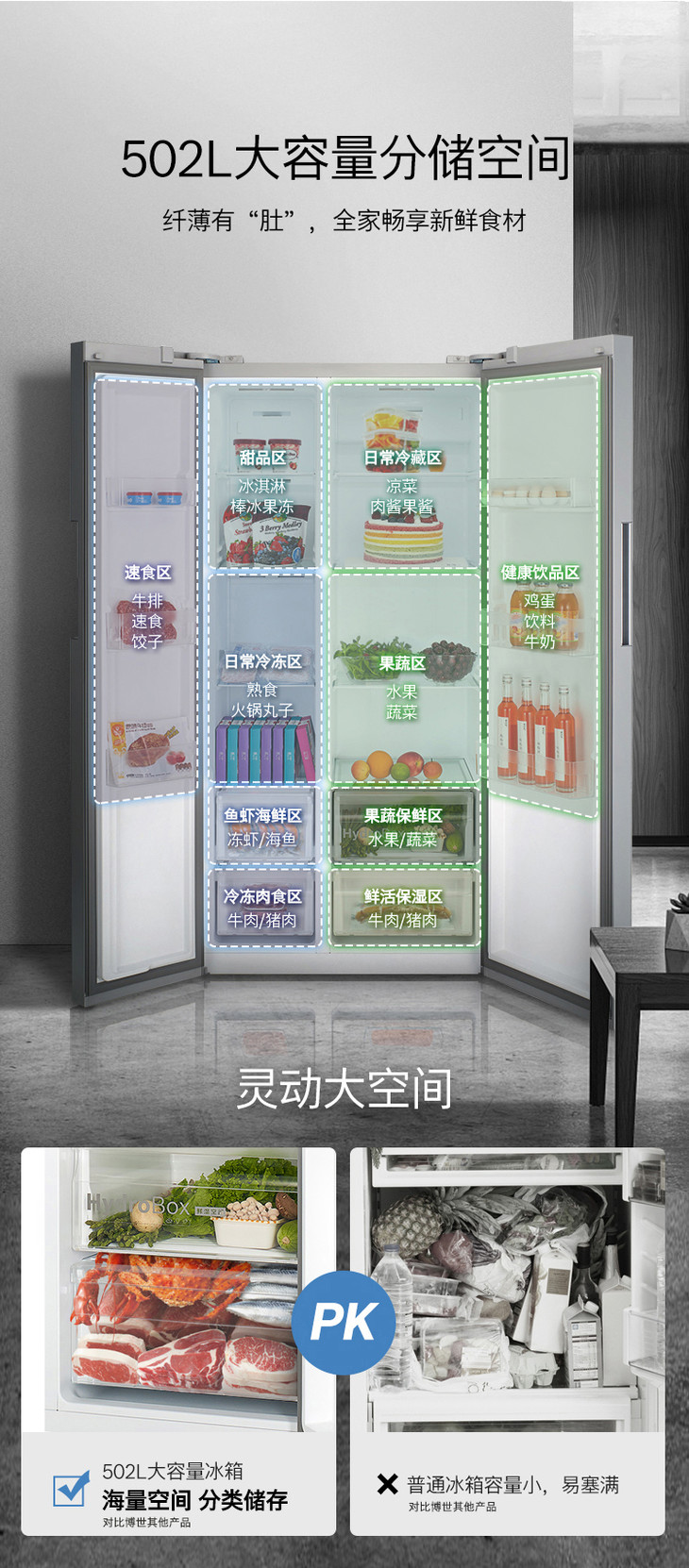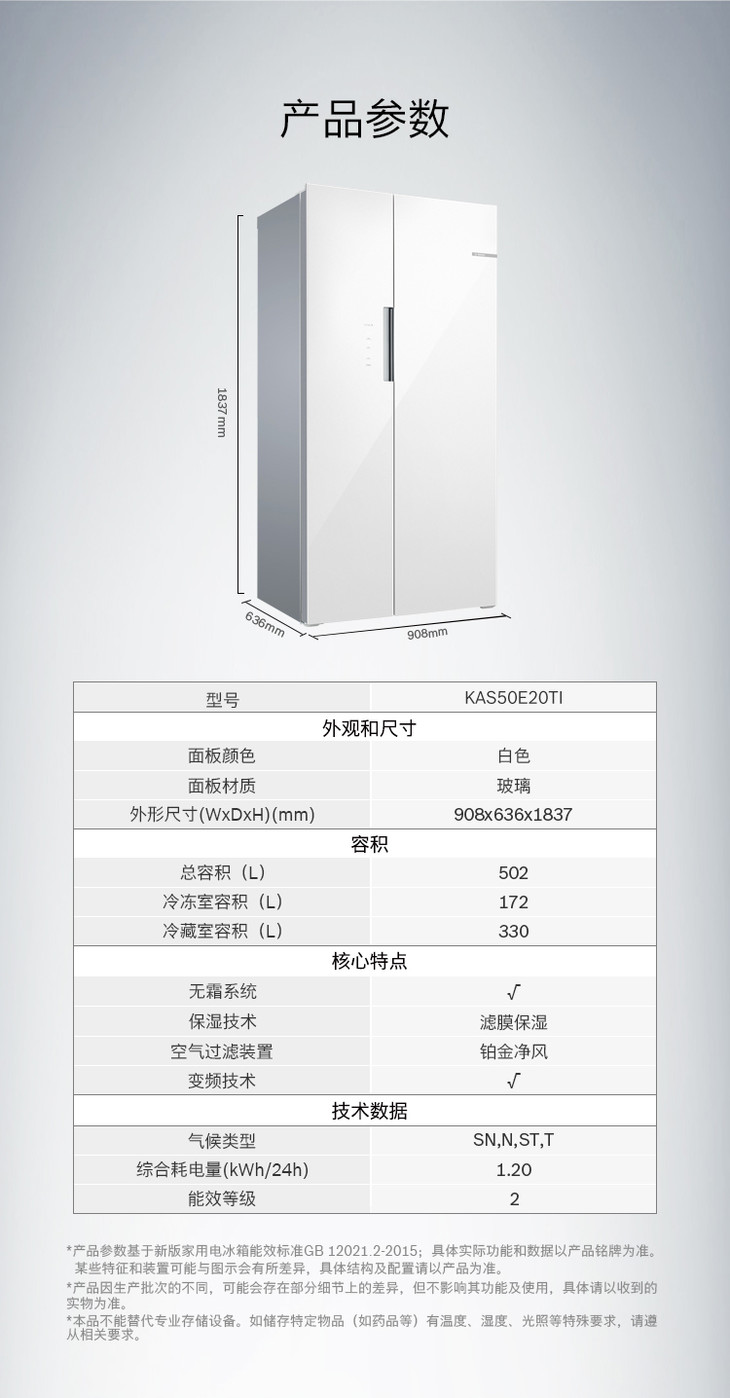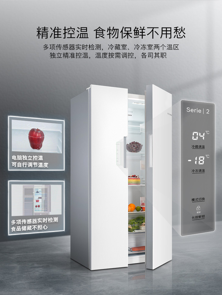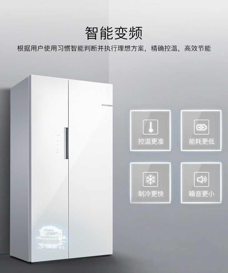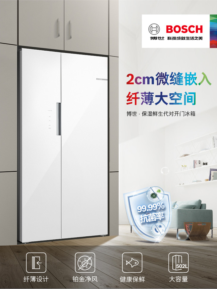 博世(BOSCH) 502升保湿鲜生代对开双门冰箱 无框玻璃门 纤薄款 风冷无霜 BCD-502W(KAS50E20TI)