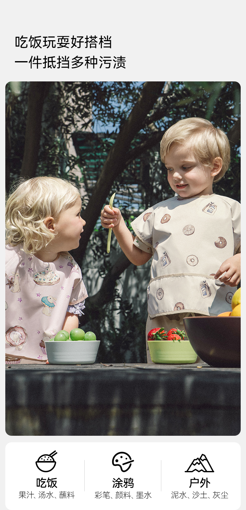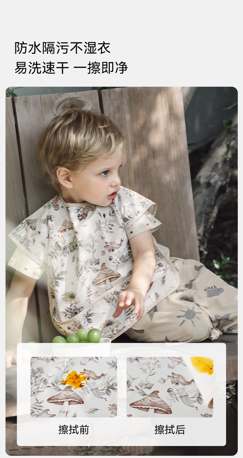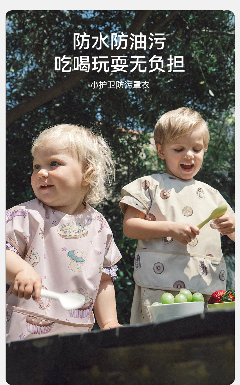 【口水巾】嫚熙宝宝吃饭罩衣围兜防水防脏婴儿辅食反穿衣饭兜
