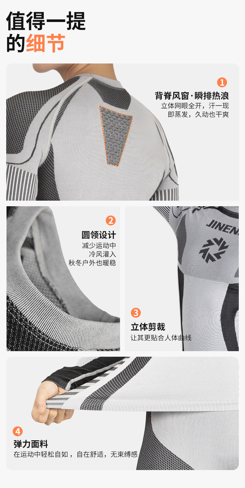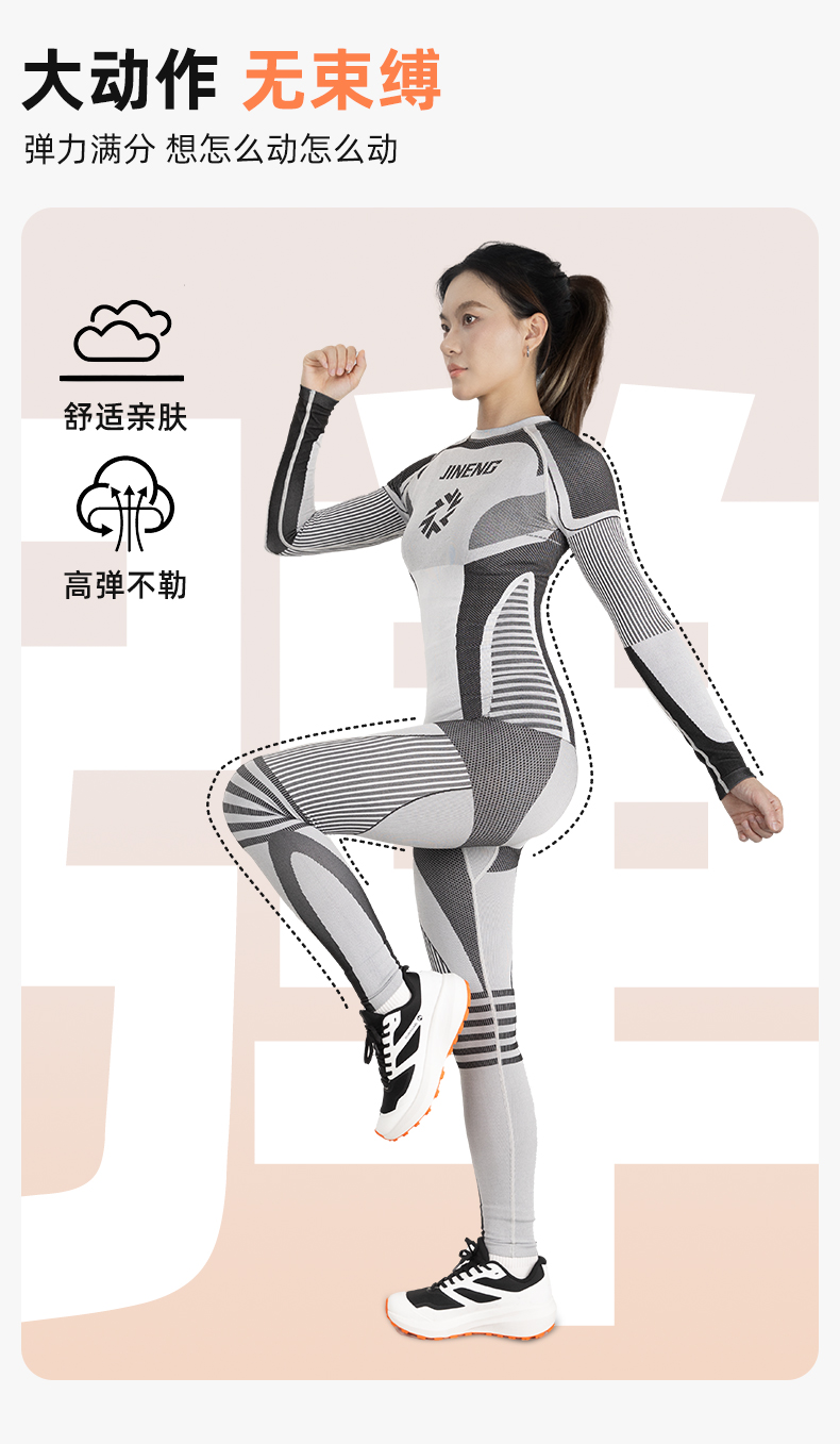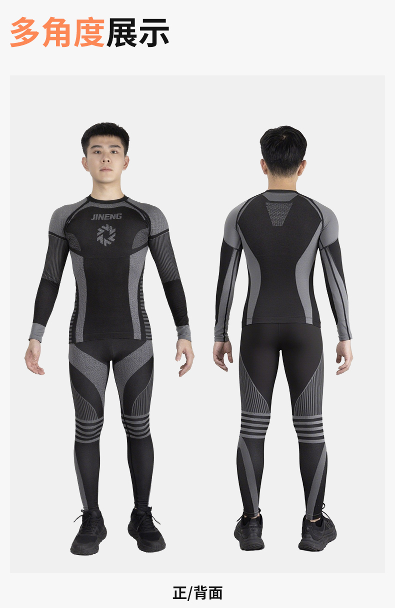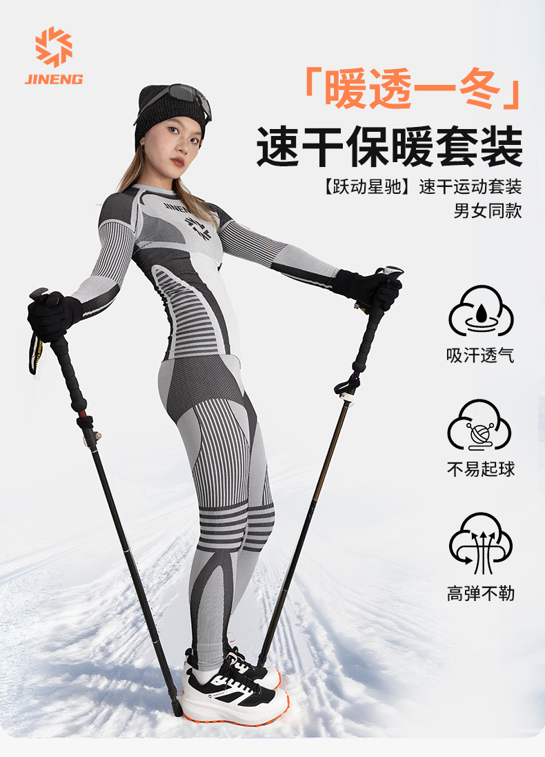 【限时送保暖帽】积能秋冬新款【跃动星驰】男女同款运动透气排汗保暖压缩套装