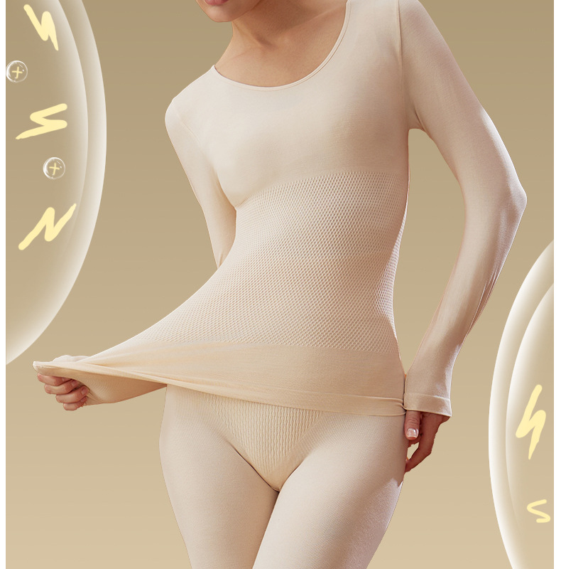 「轻·暖!升级羊绒款」羊绒保暖内衣女收腹加厚秋衣秋裤长裤紧身圆领无痕德绒打底套装女上衣下装