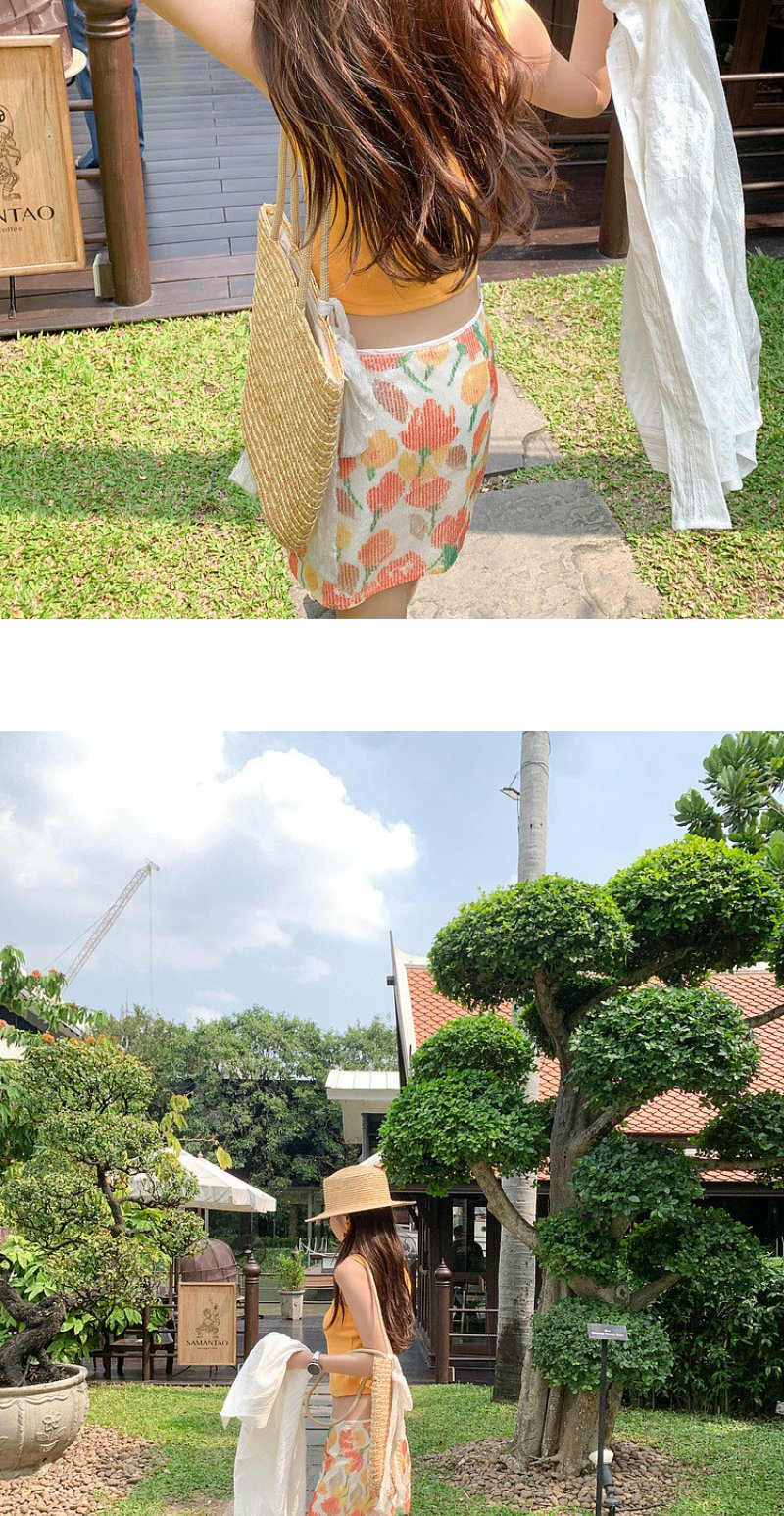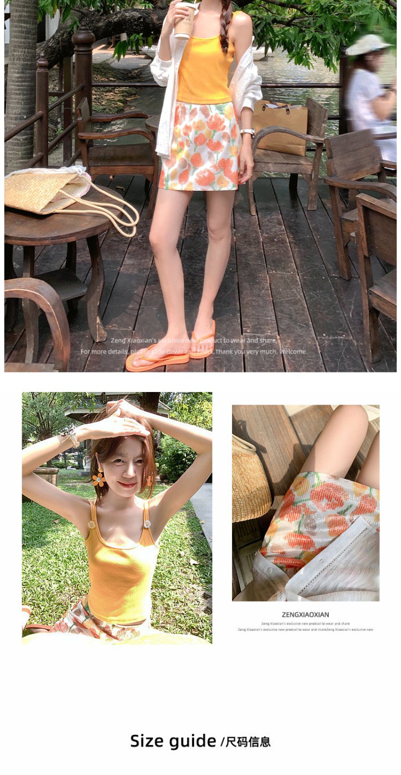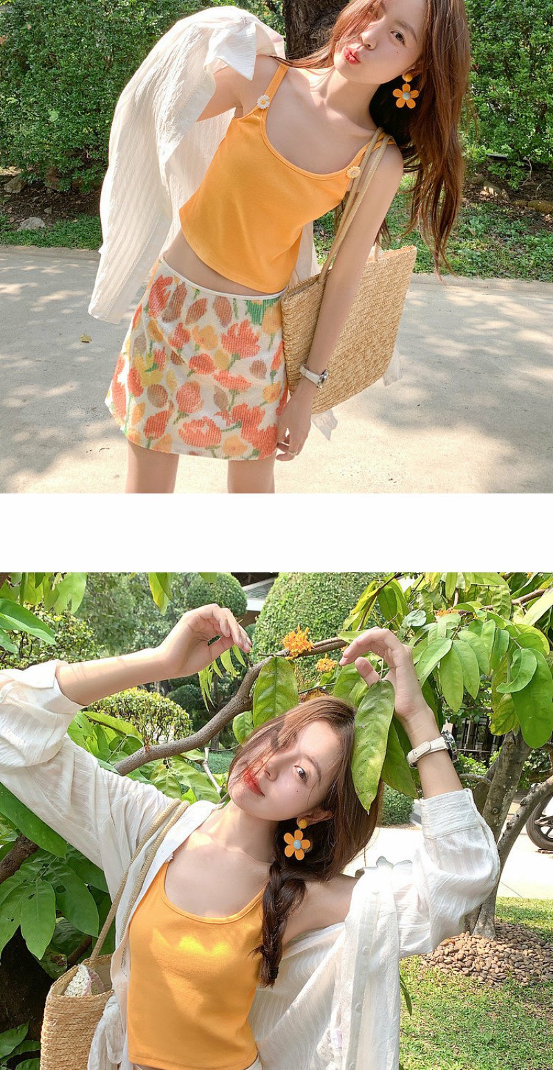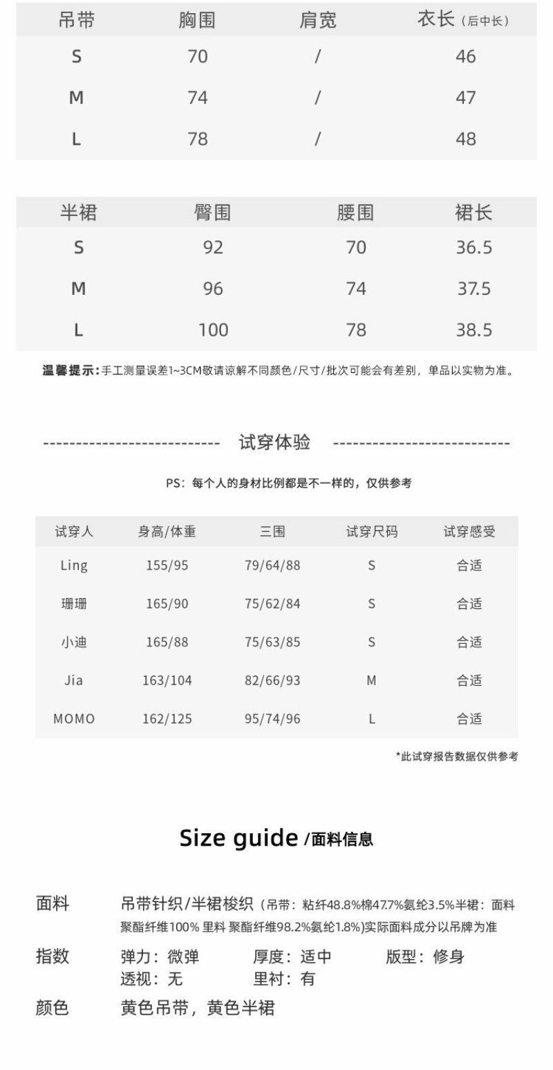 <曾小咸推荐>韩系黄色吊带背心半身裙子
