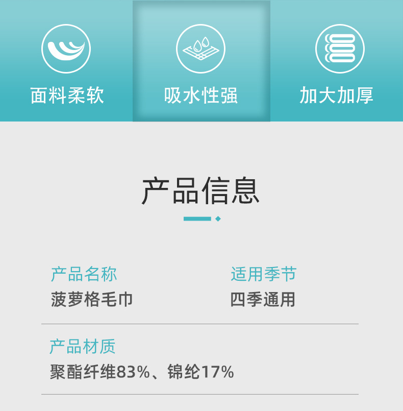 「三件套!菠萝格加厚套装」加厚浴巾干发帽三件套 男女家用吸水珊瑚绒菠萝格洗澡可裹可穿居家布艺