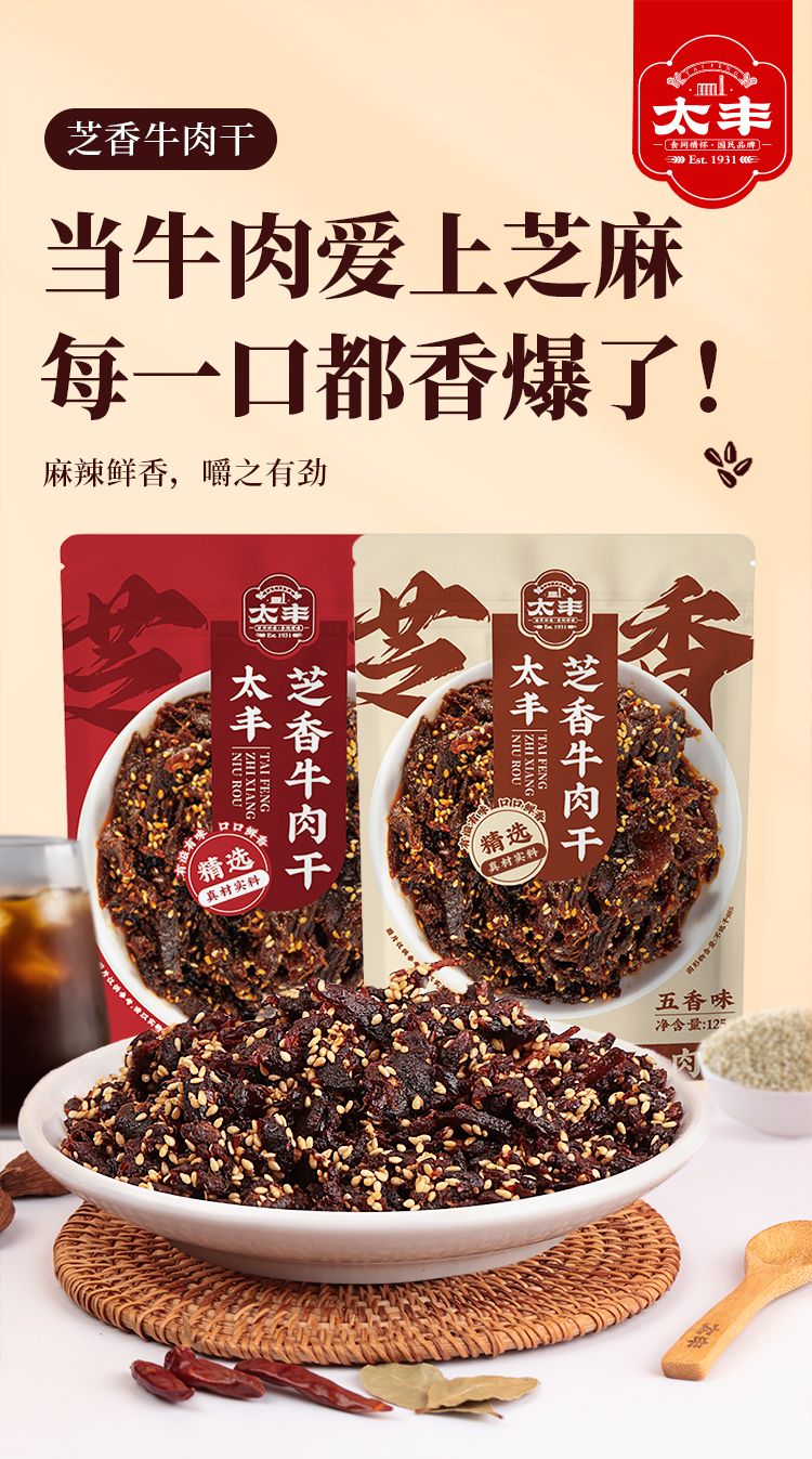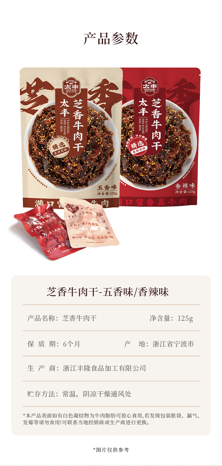 【会员专属】太丰芝香牛肉干-香辣/五香125g*袋
