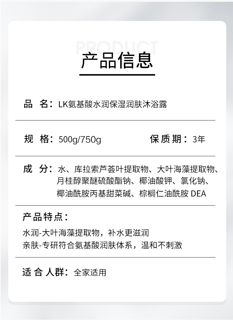 【自营】LK 氨基酸水润保湿润肤沐浴露(小苍兰香型)750g