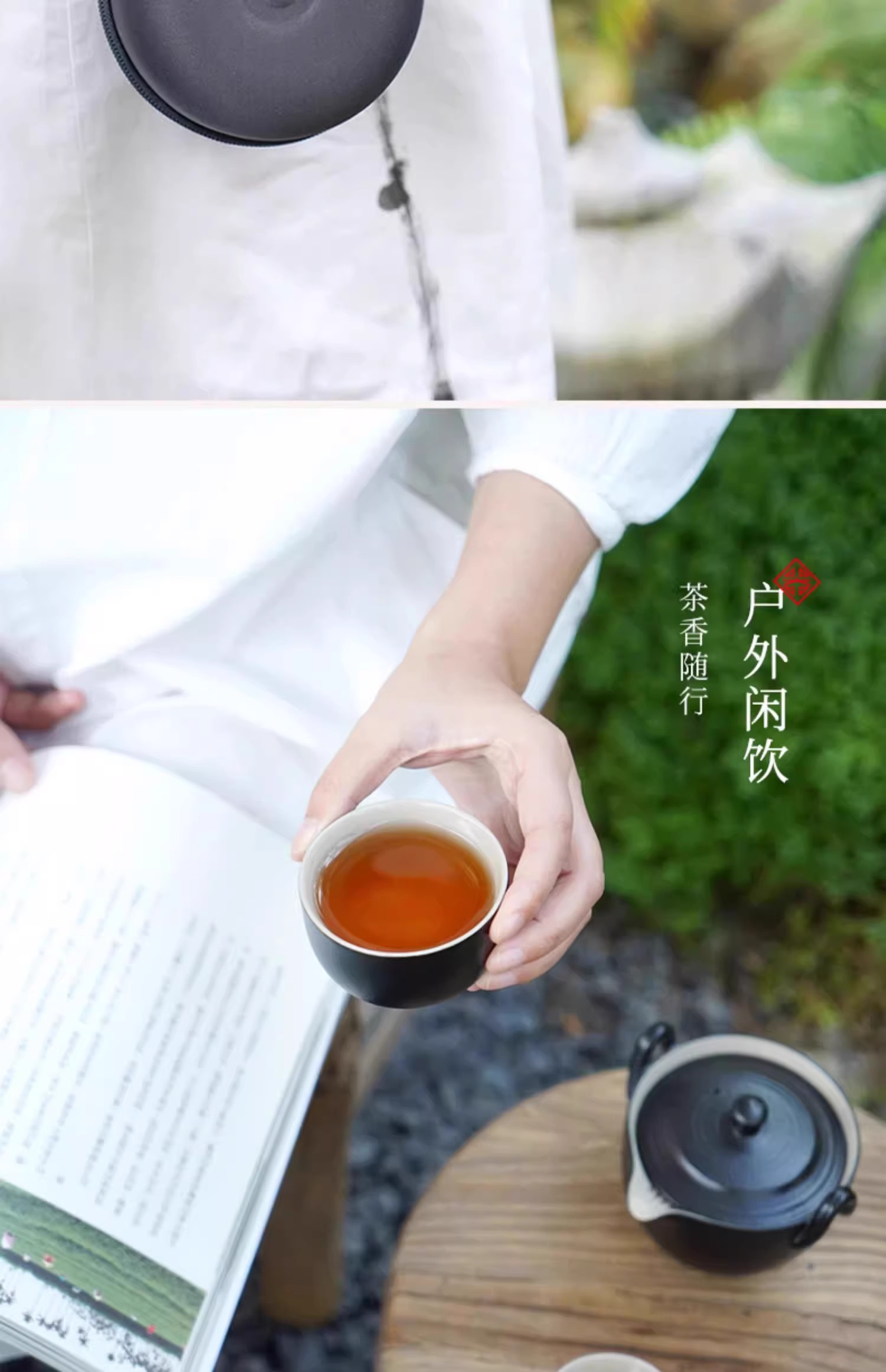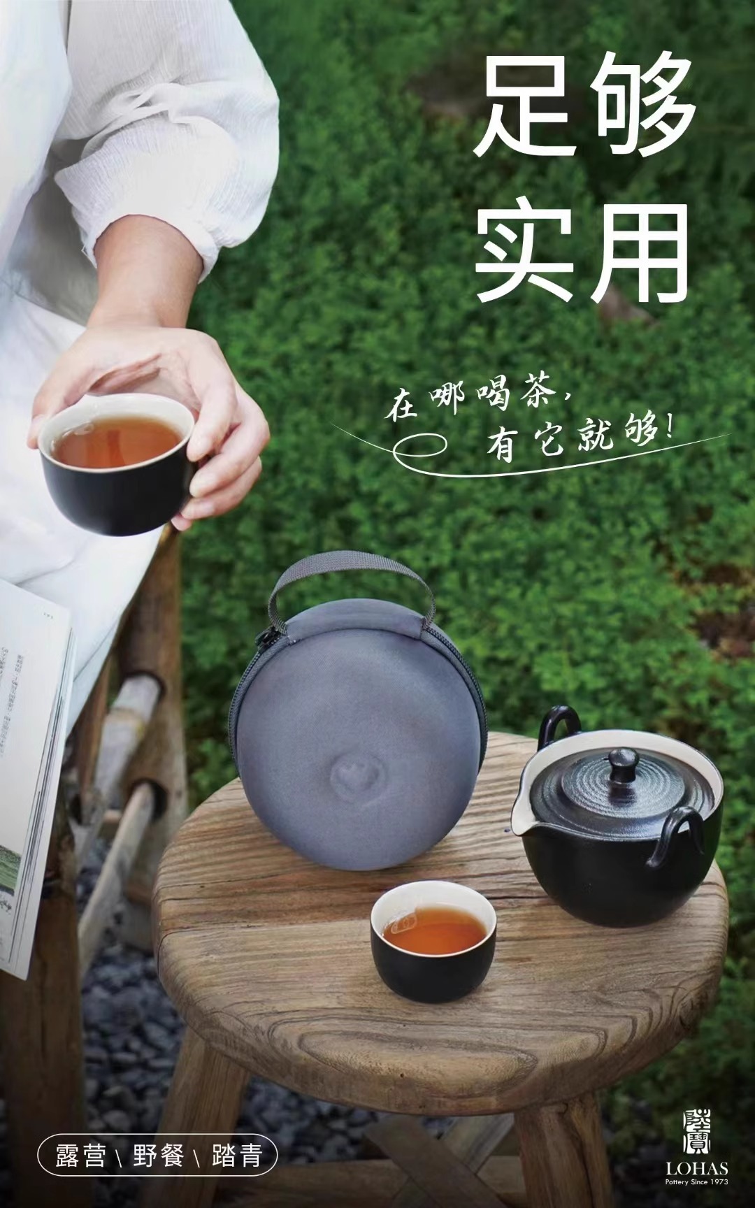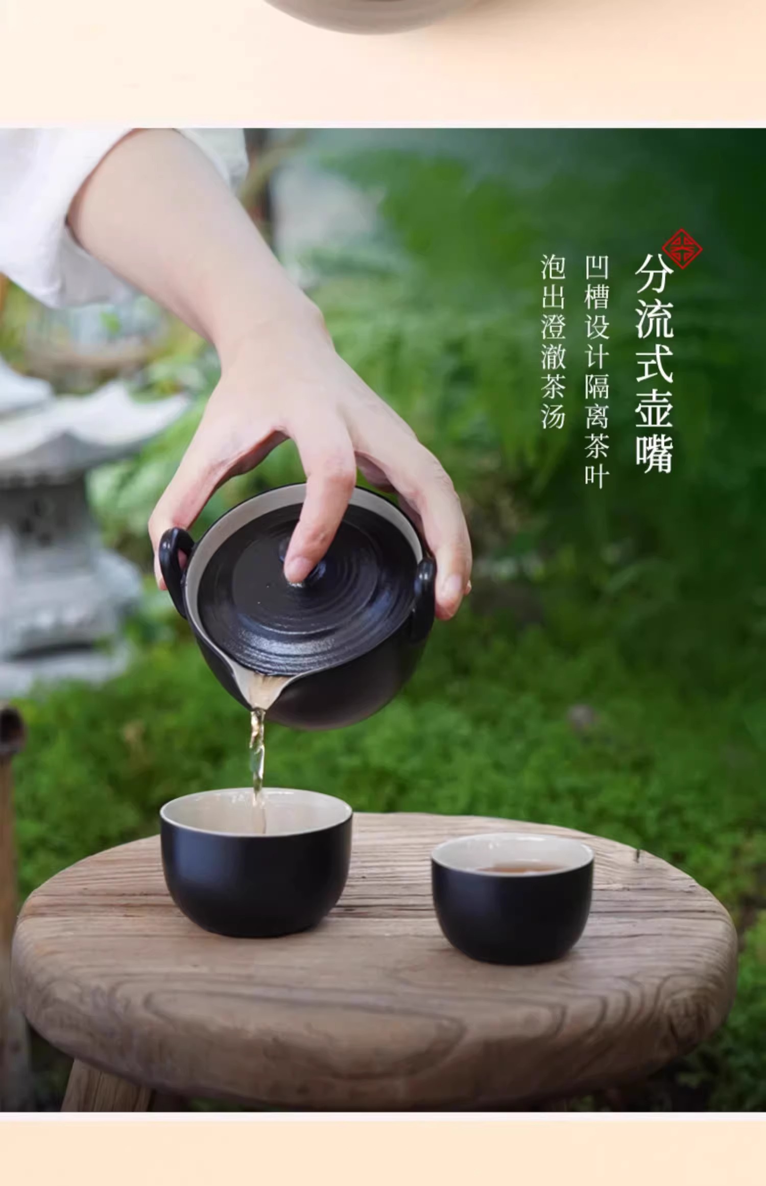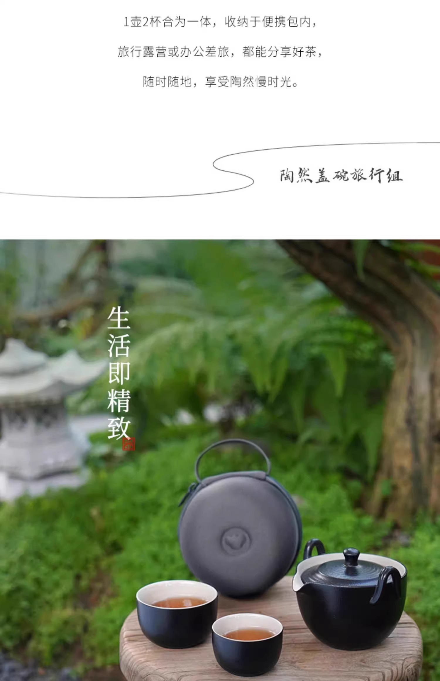 【样品特惠6折,仅1套,无货退款】陆宝陶瓷陶然盖碗旅行组一壶二杯2人泡茶功夫茶具礼品朋友伴手礼陶然盖碗旅行组 禅风黑