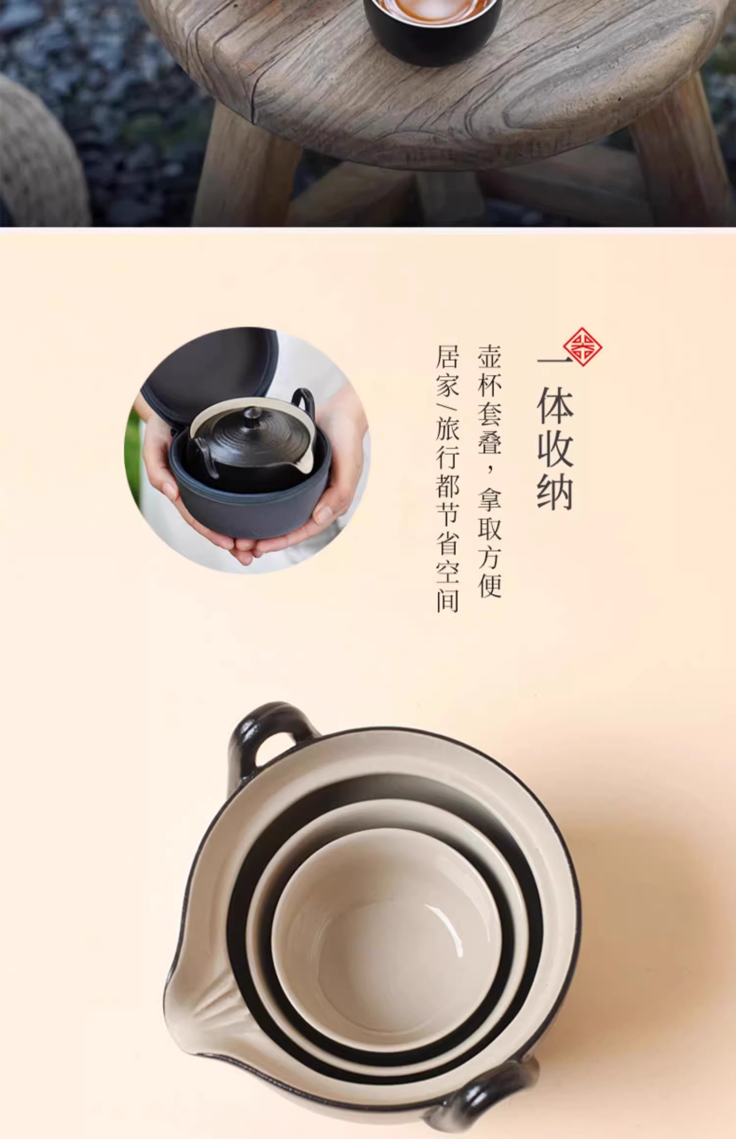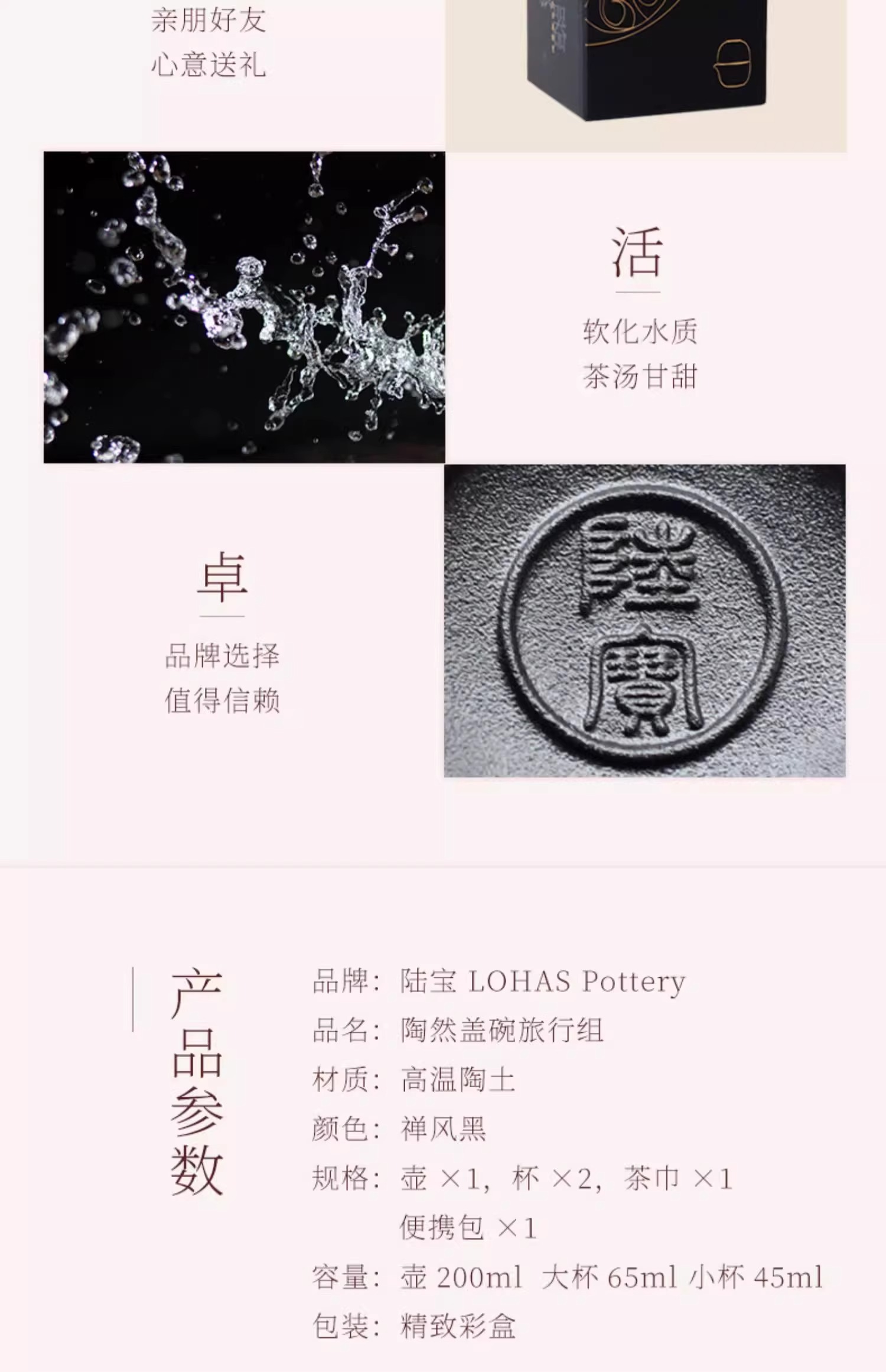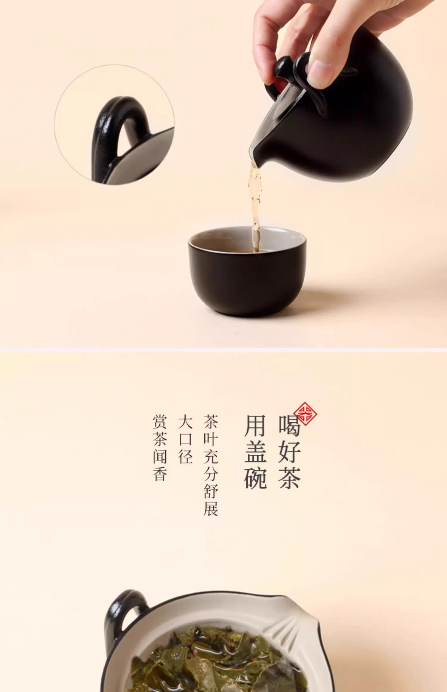 【样品特惠6折,仅1套,无货退款】陆宝陶瓷陶然盖碗旅行组一壶二杯2人泡茶功夫茶具礼品朋友伴手礼陶然盖碗旅行组 禅风黑