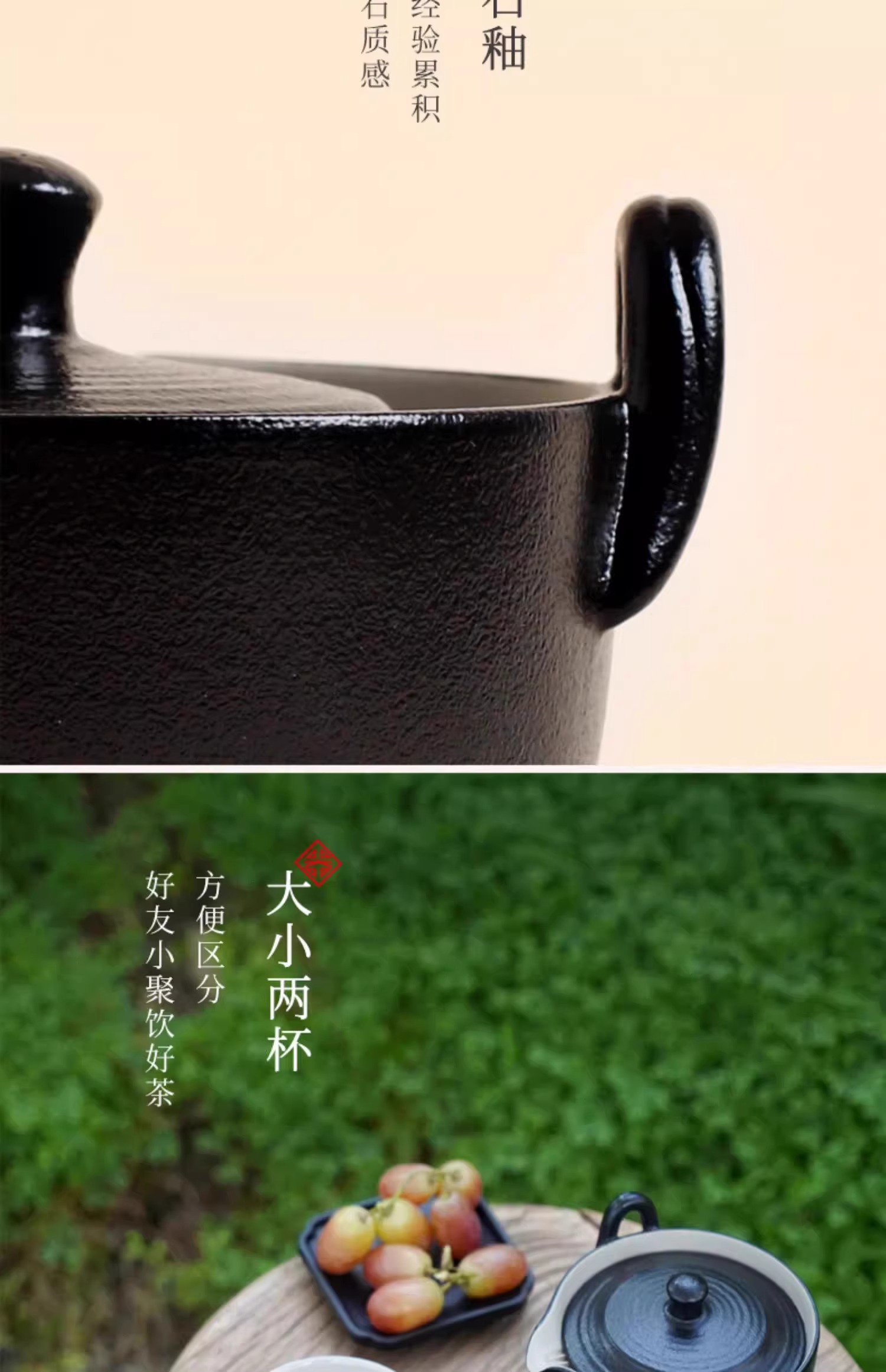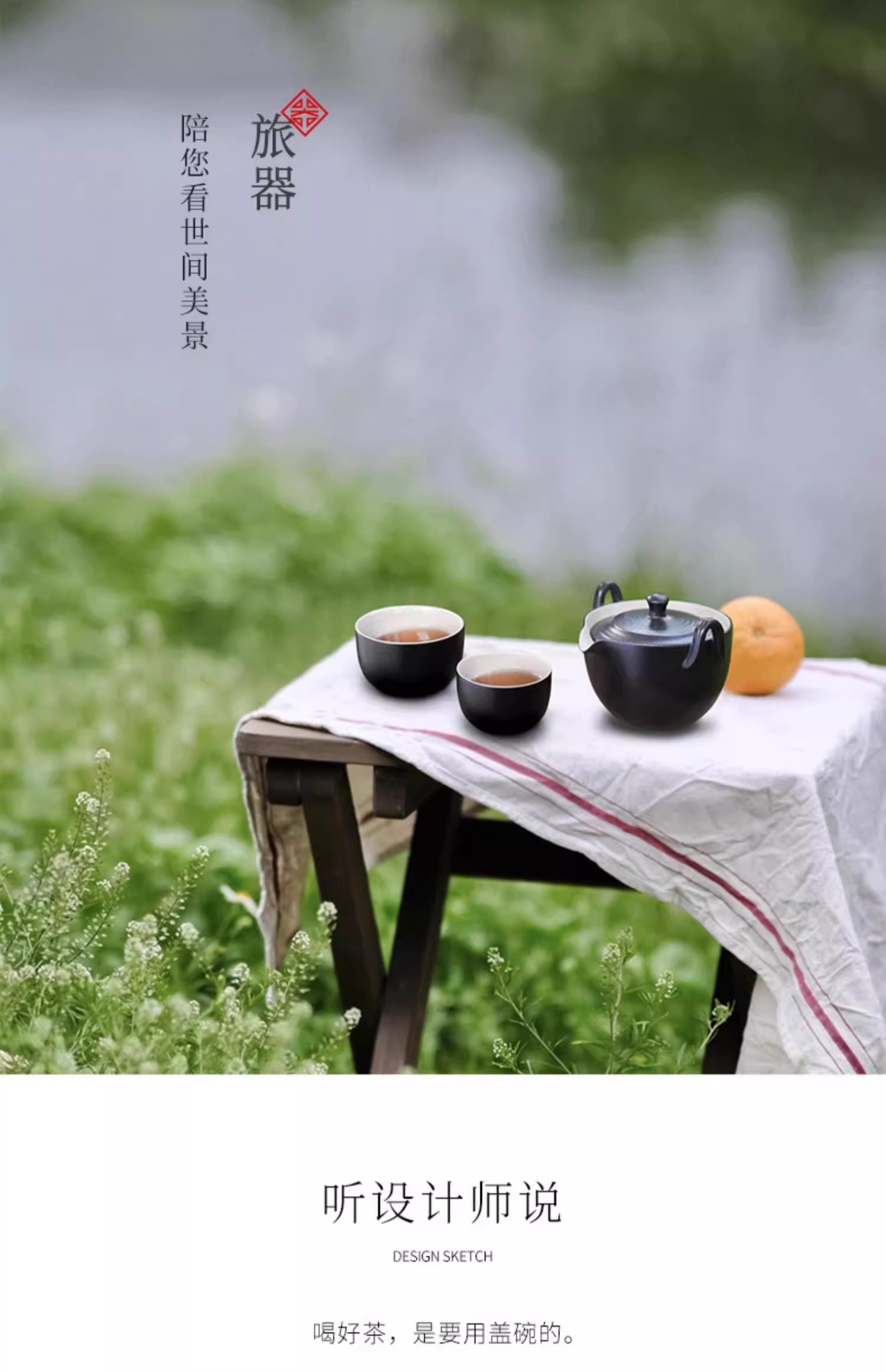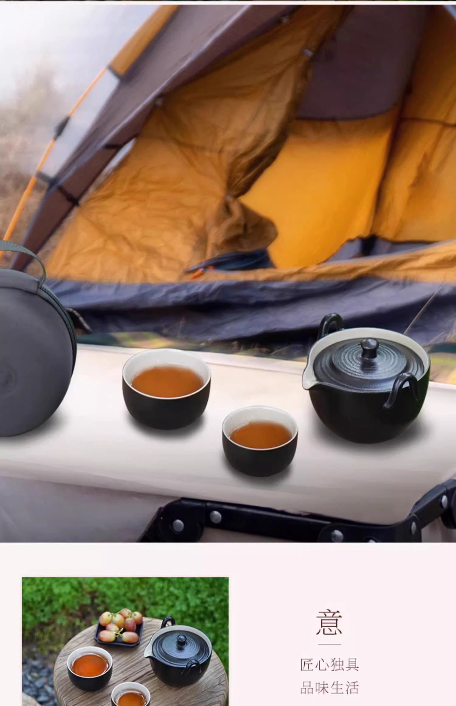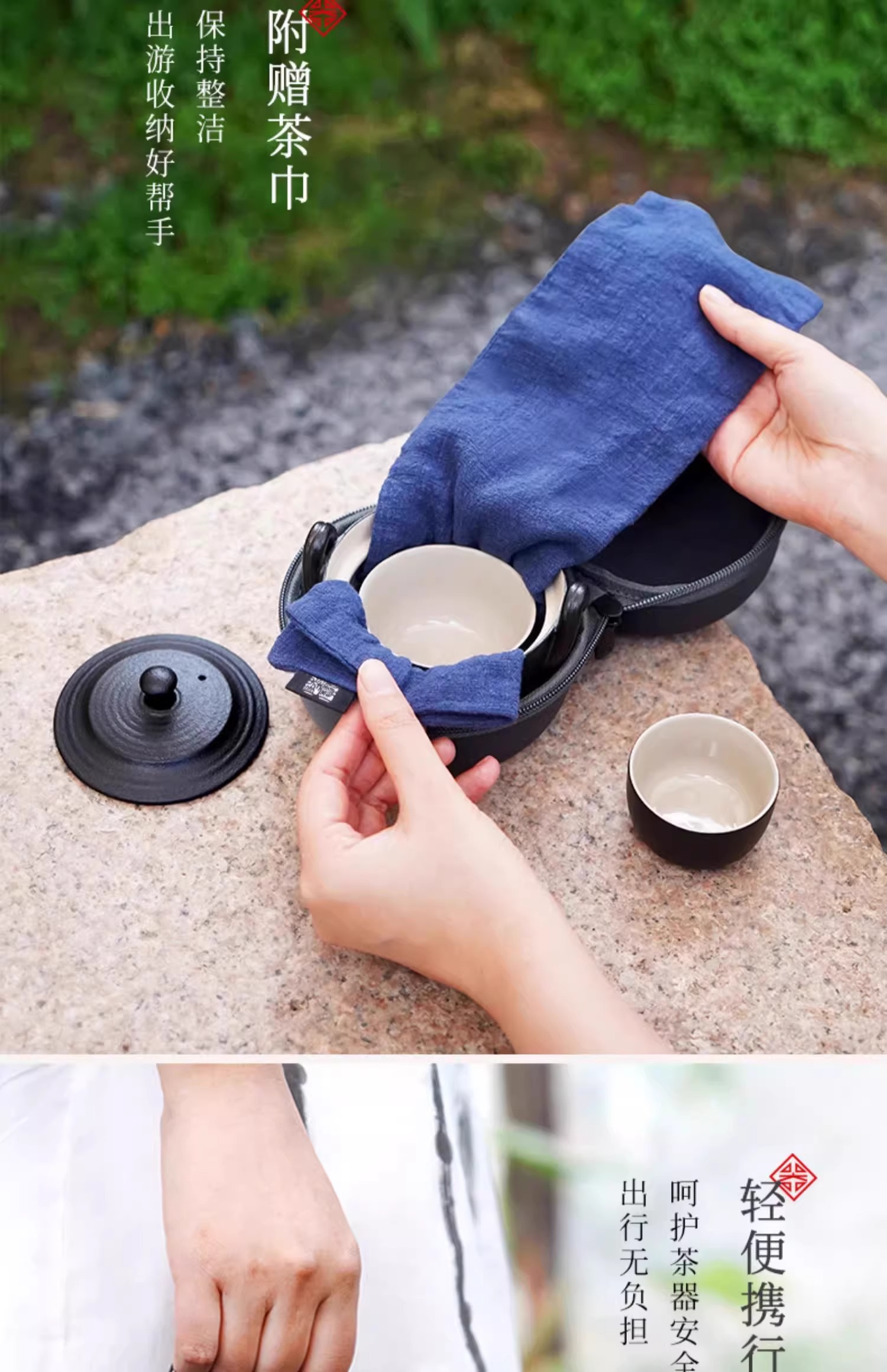 【样品特惠6折,仅1套,无货退款】陆宝陶瓷陶然盖碗旅行组一壶二杯2人泡茶功夫茶具礼品朋友伴手礼陶然盖碗旅行组 禅风黑