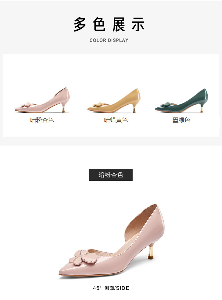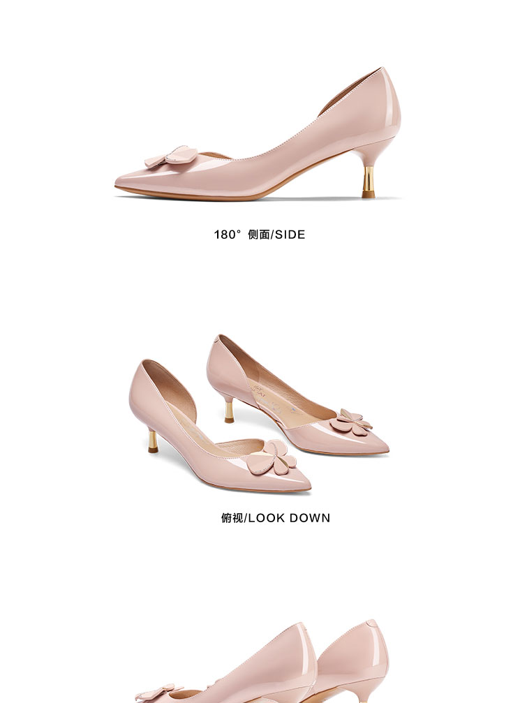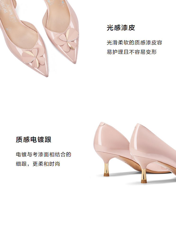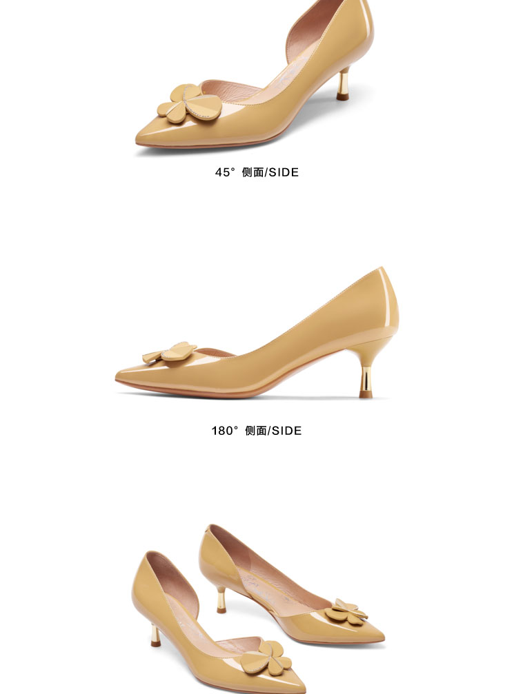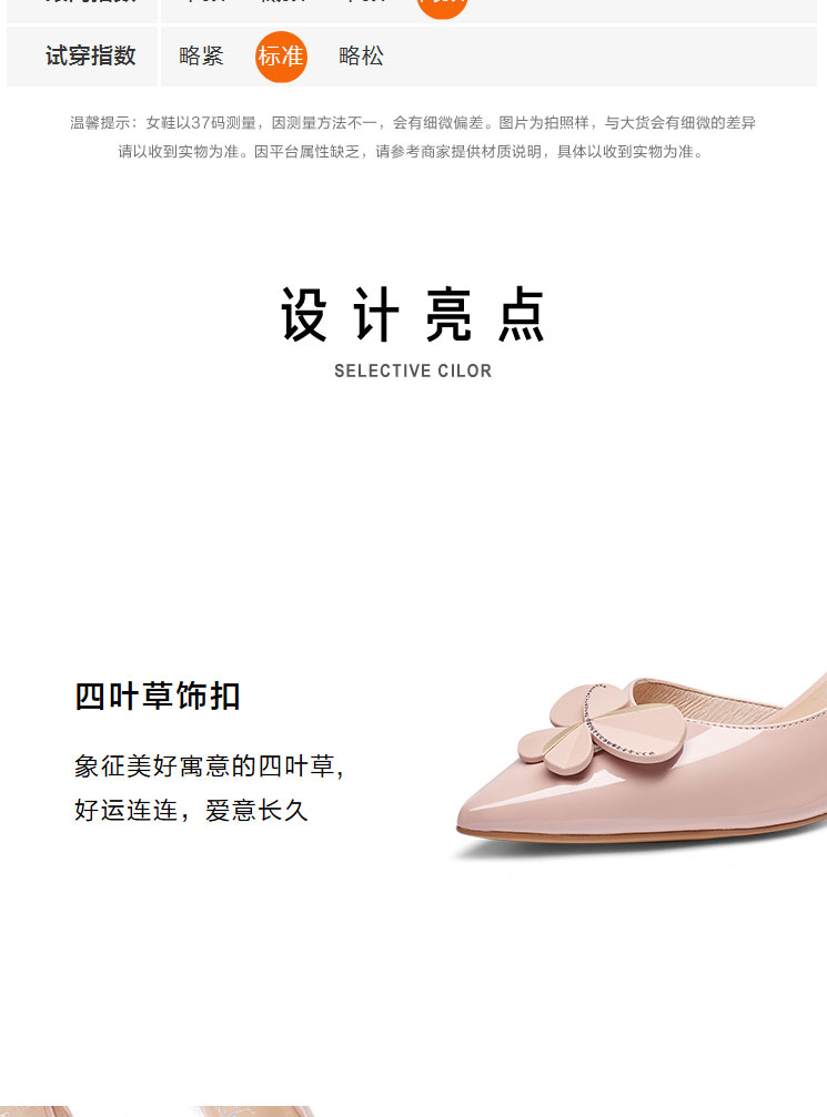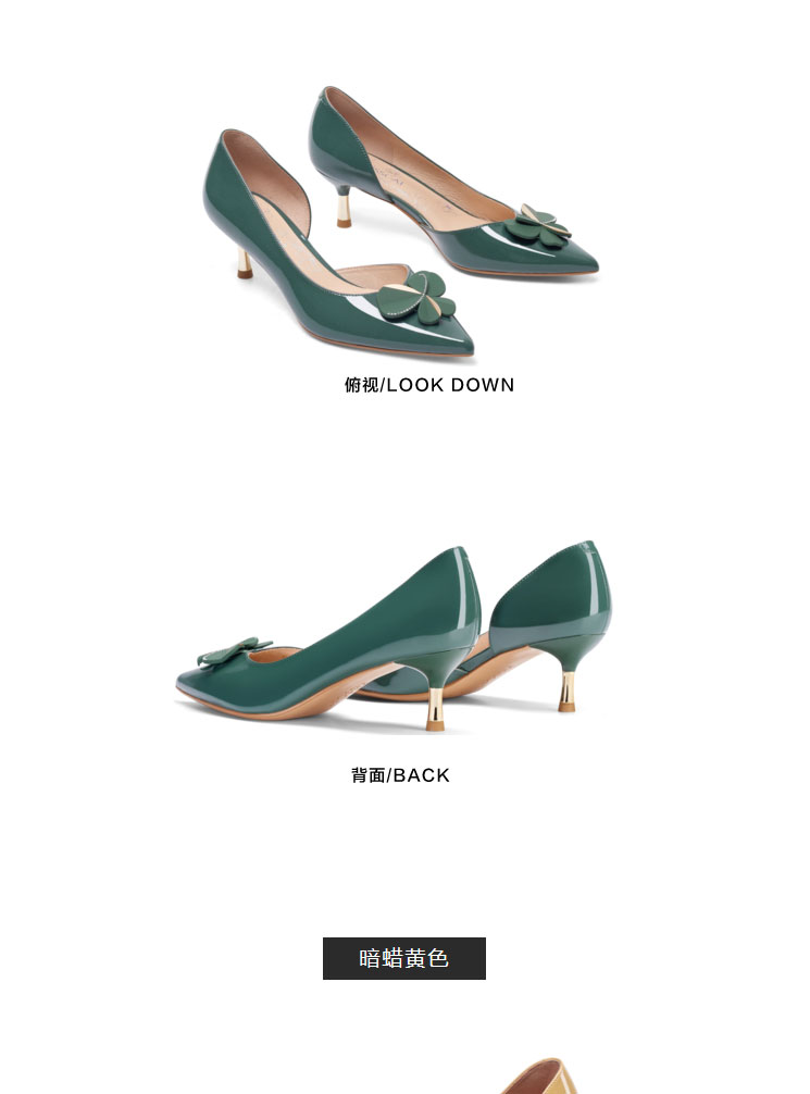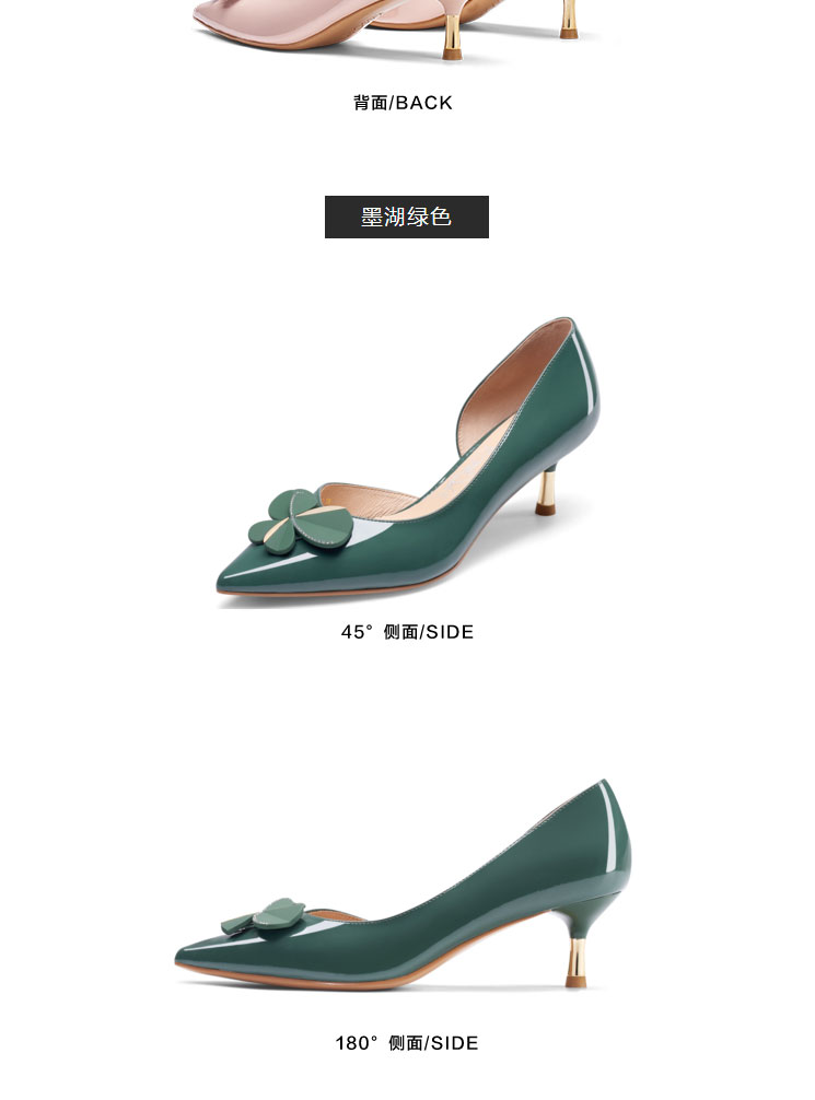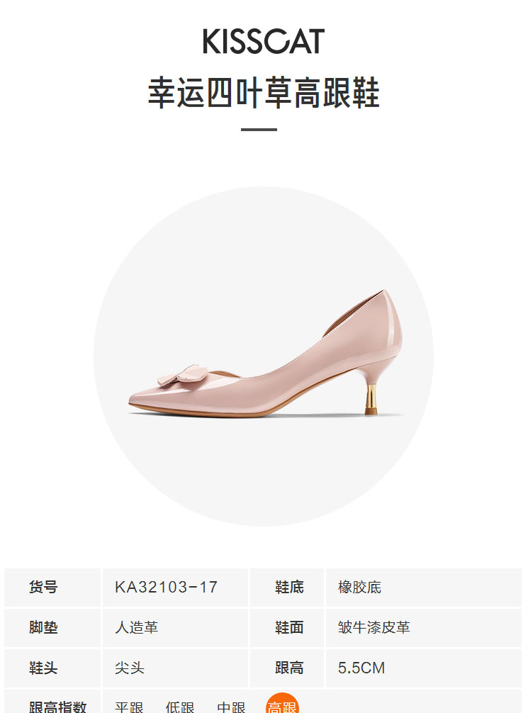 接吻猫2022年春夏季新款漆皮女鞋高跟鞋四叶草饰扣尖头浅口单鞋女32103-17