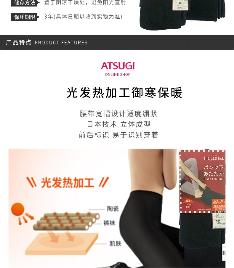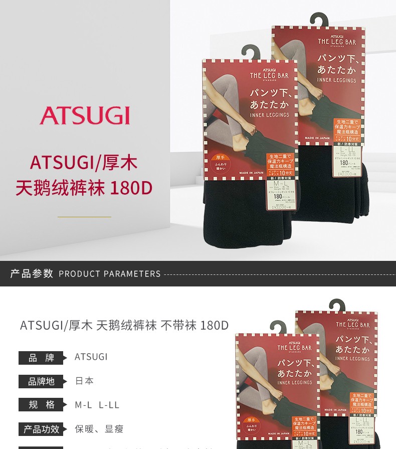 ATSUGI 厚木 天鹅绒发热打底裤 秋冬 180D M-L 不带袜