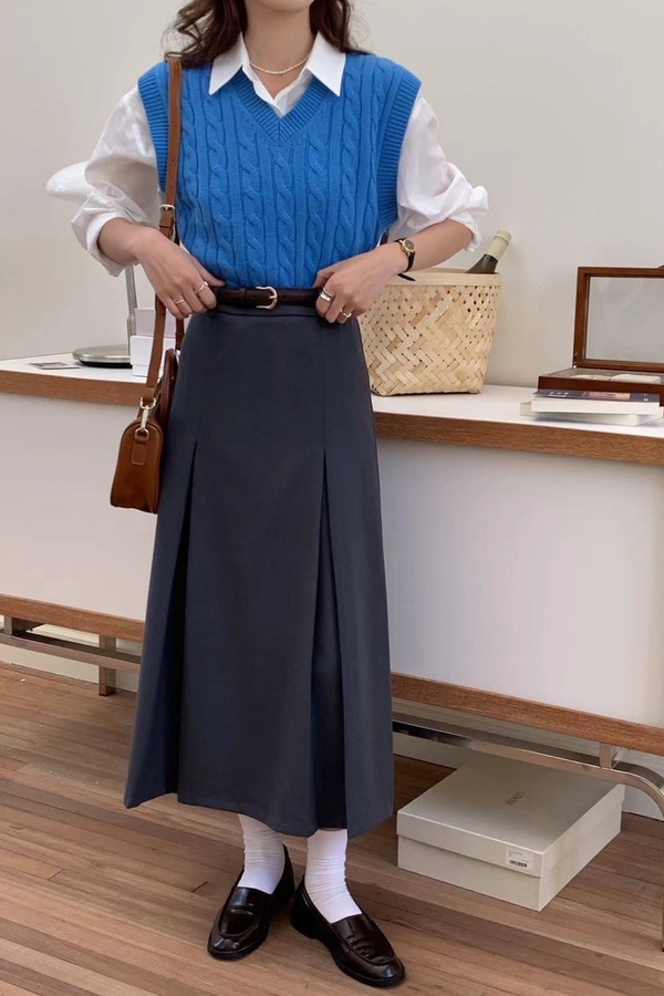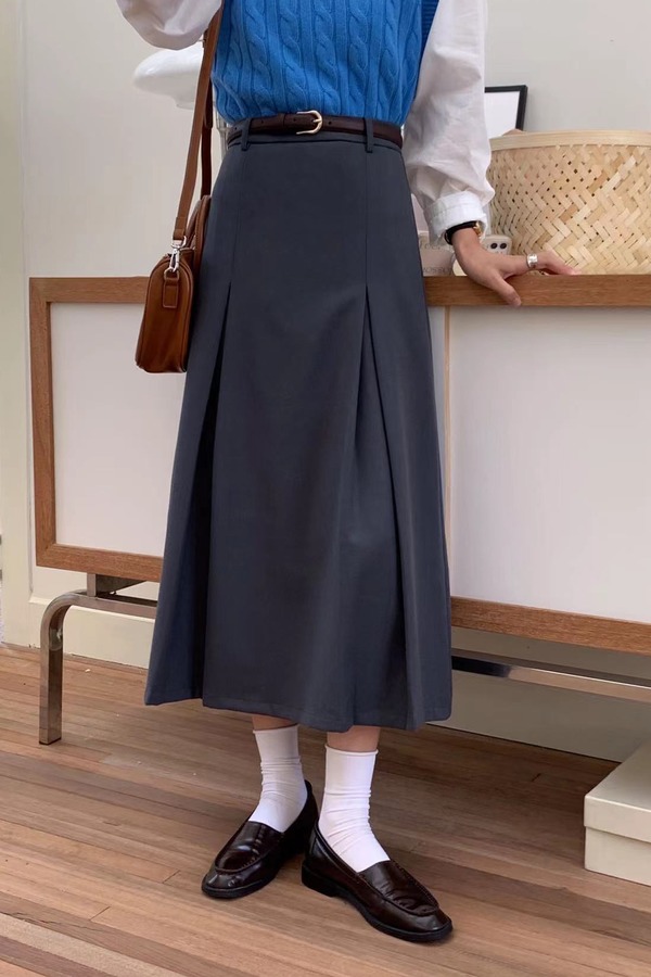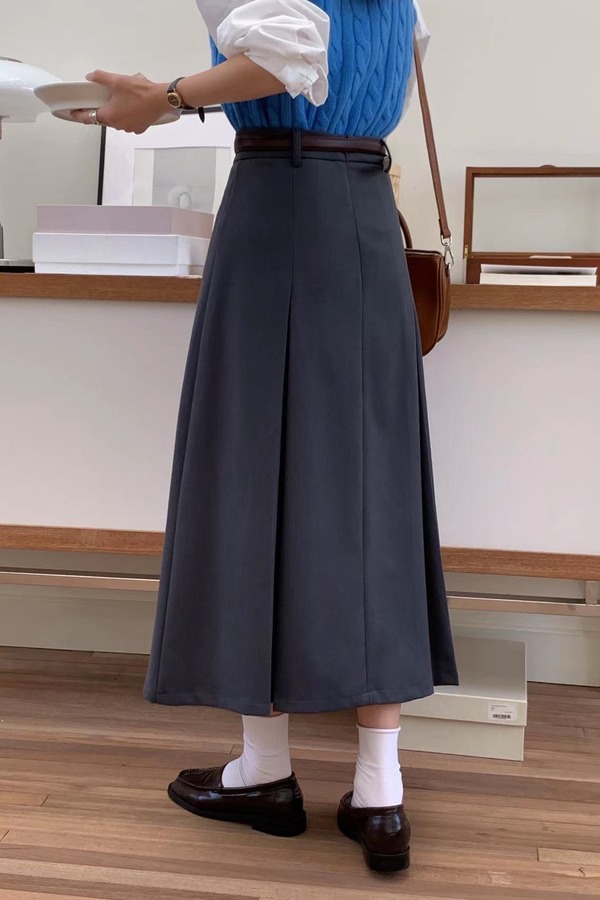 Stay2Weeks 韩系ins风灰色长款高腰半裙 17643