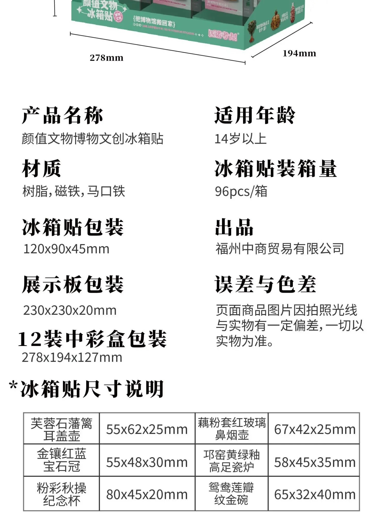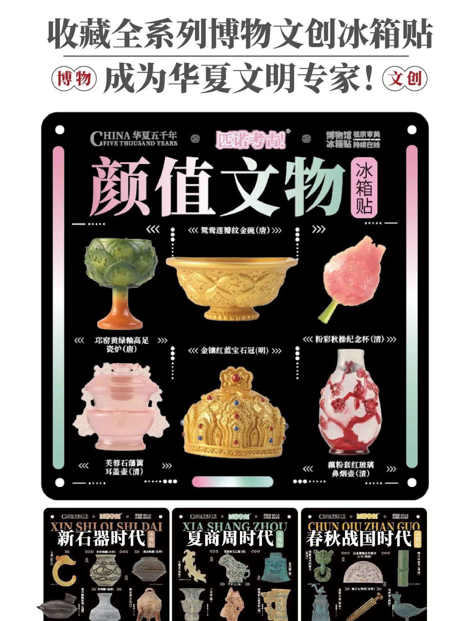 颜值文物创意冰箱贴小粉炉博物馆文创南京上海苏州西安旅游纪念品