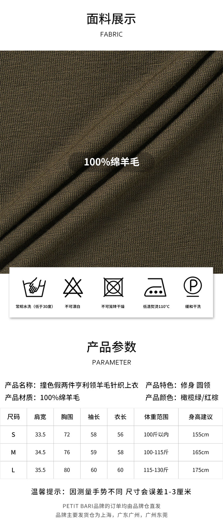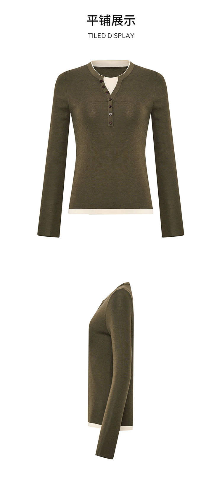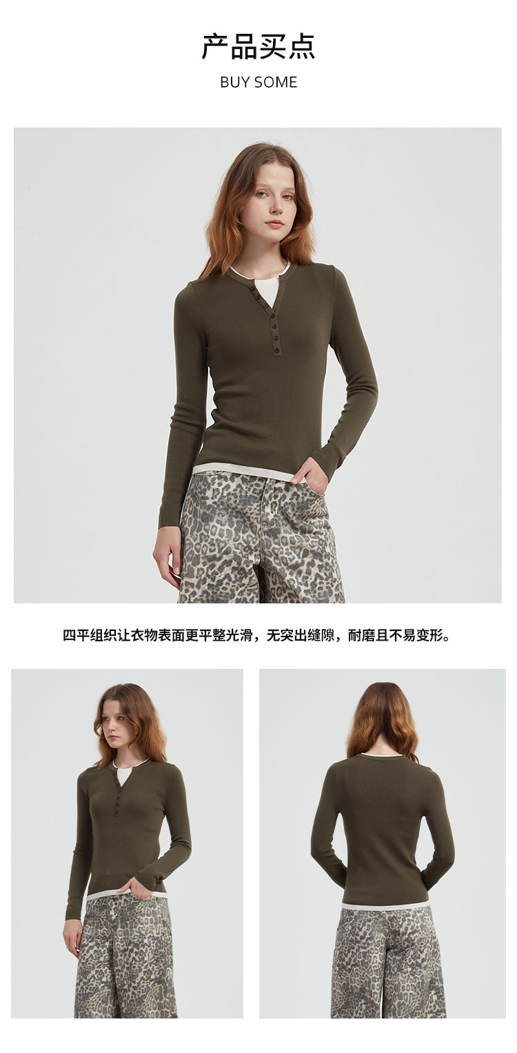 【2件9折】【Petit Bari】(多色)时髦撞色假两件亨利领羊毛针织上衣