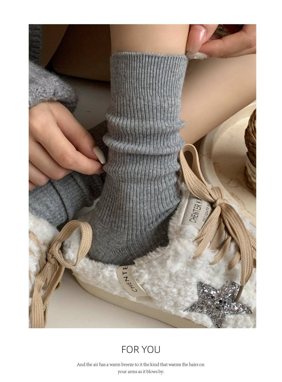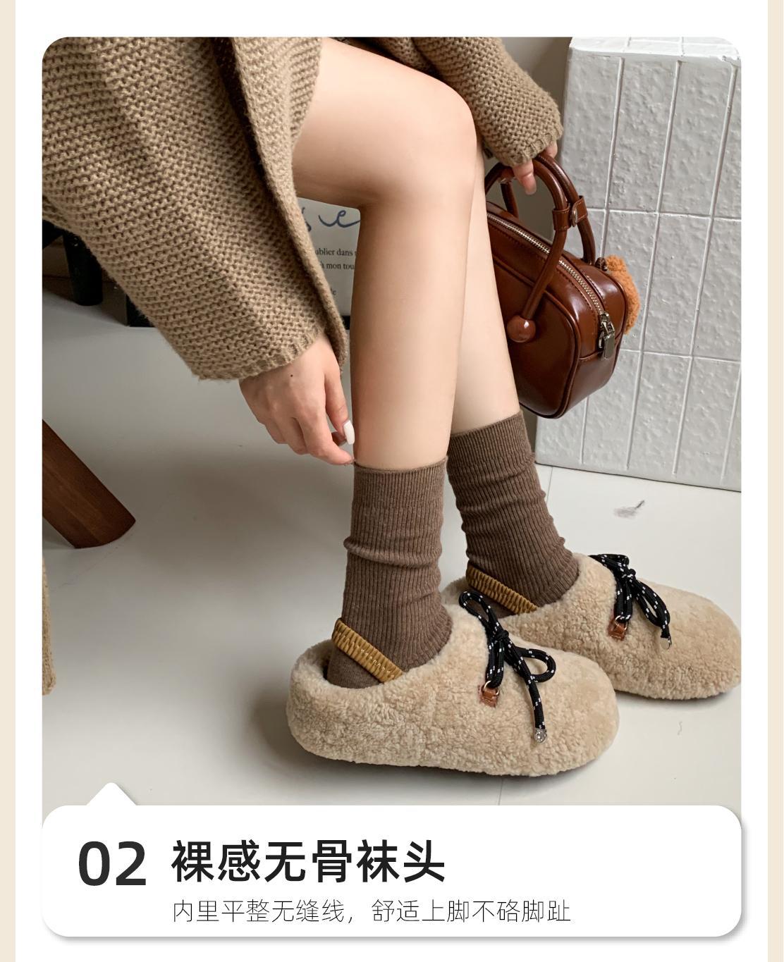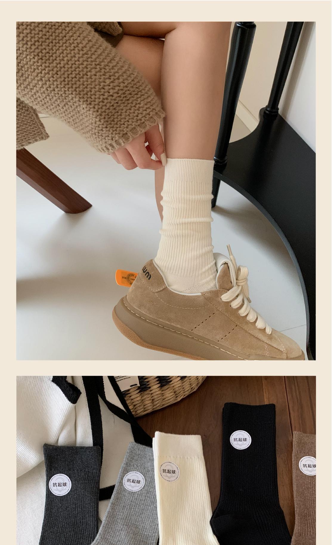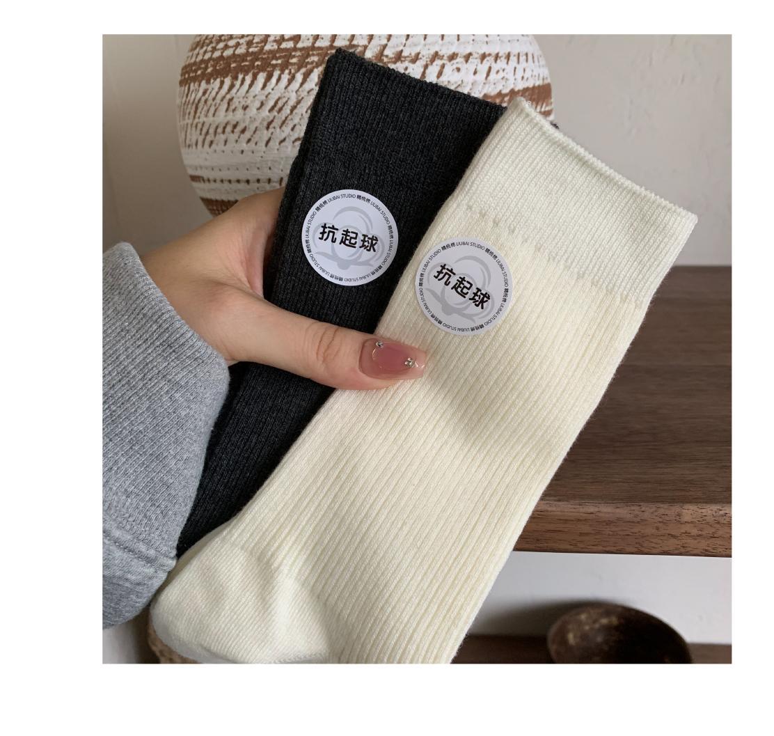 「7双装!无骨抗起球袜」袜子女春秋冬白色棉纱线中筒袜 产后月子袜无骨堆堆袜配小皮鞋长袜配饰
