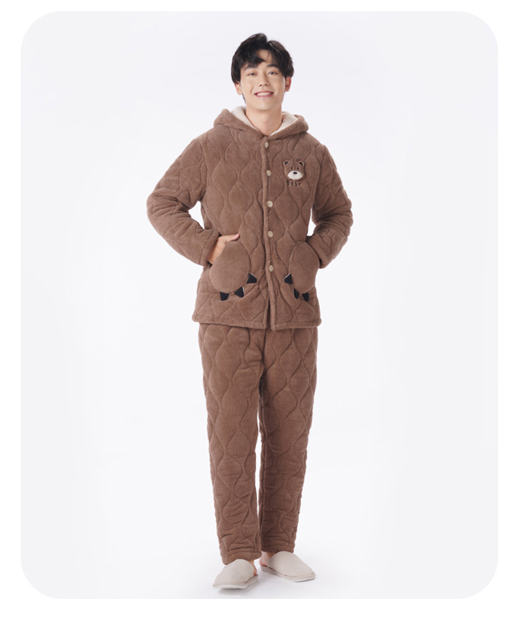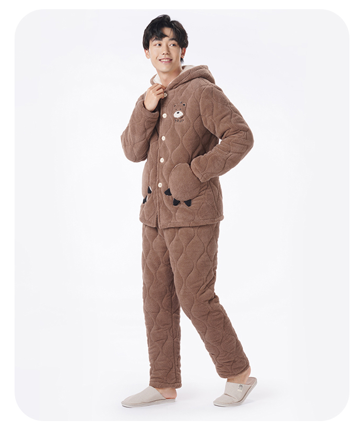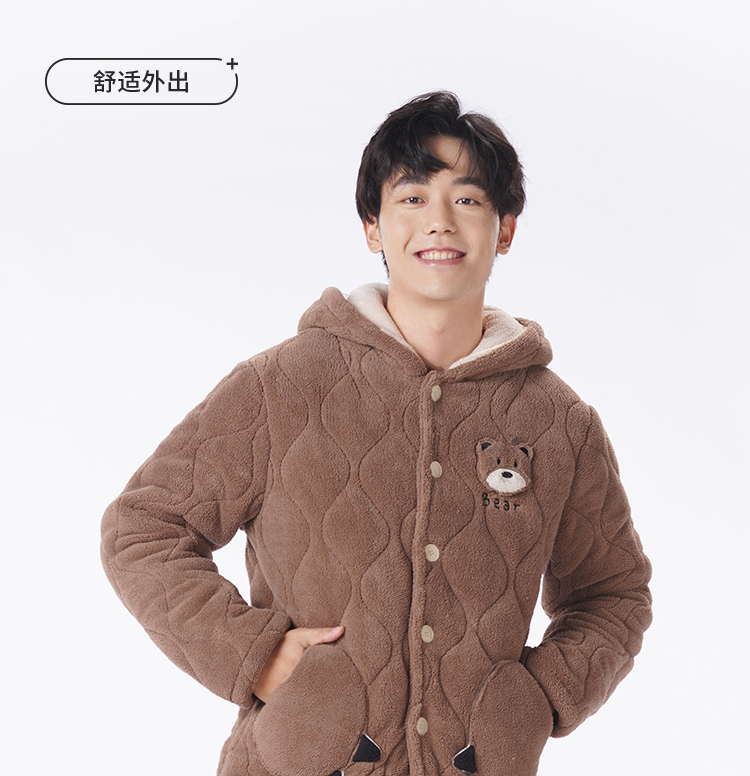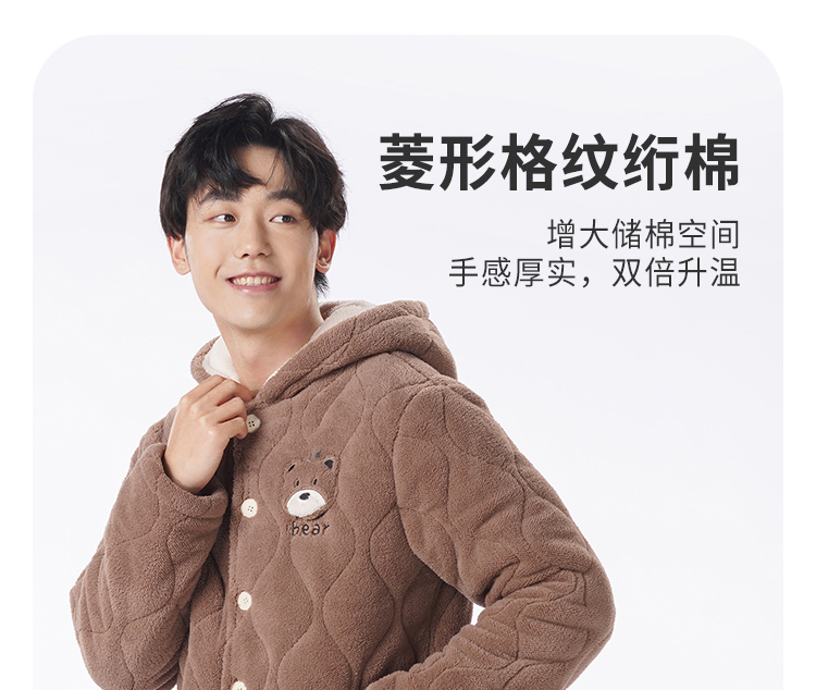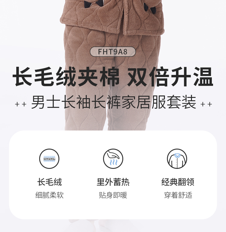 都市丽人都市锋尚睡衣亲情蜜语长袖长毛绒夹棉加厚男士加夹棉套装FHT9A8