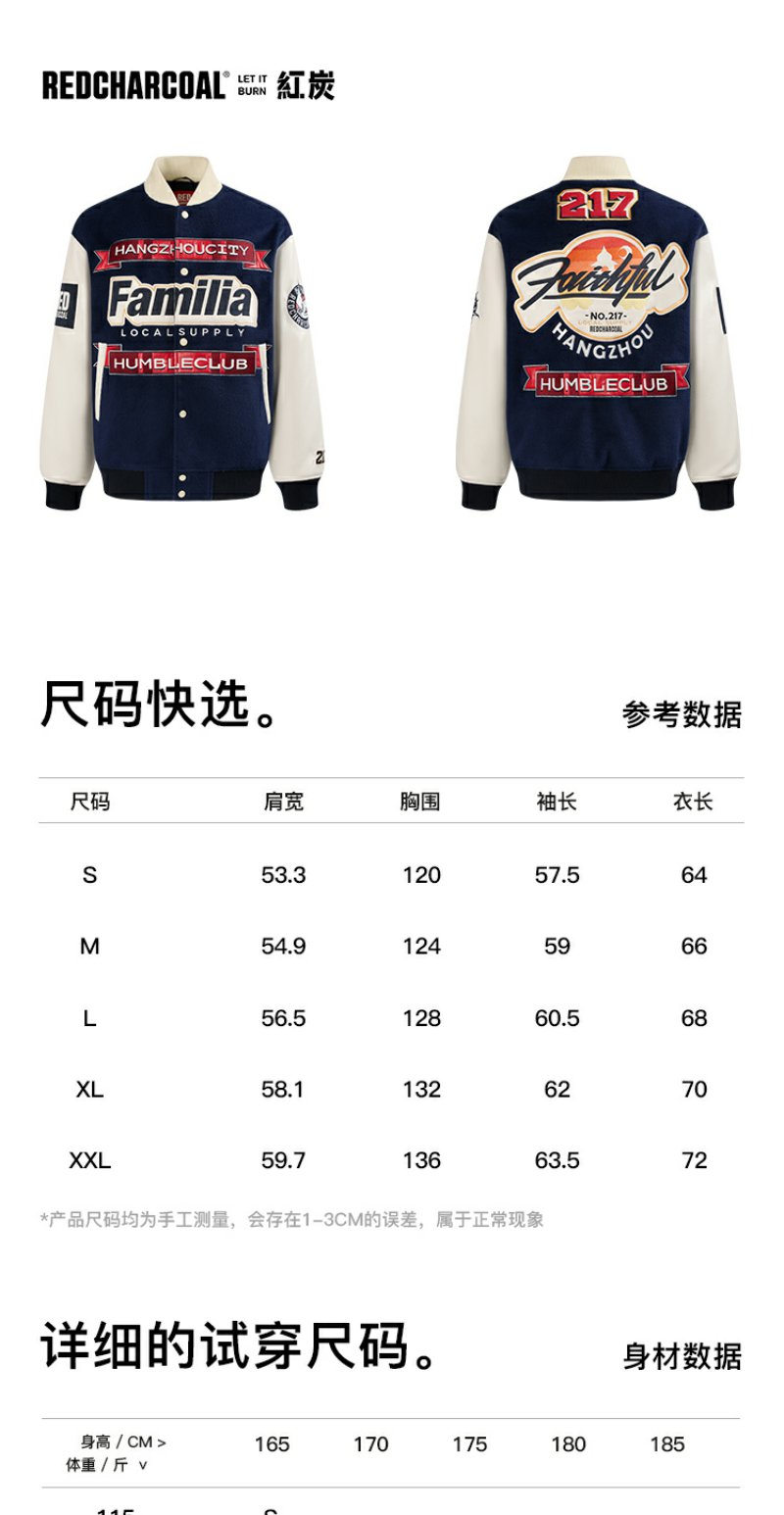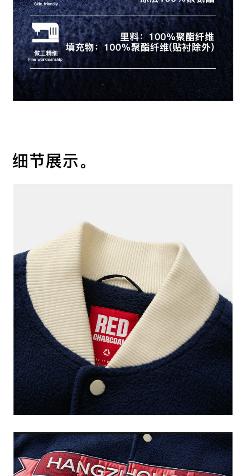 REDCHARCOAL 红炭棒球服夹克外套男秋冬重工刺绣美式潮牌宽松棉服
