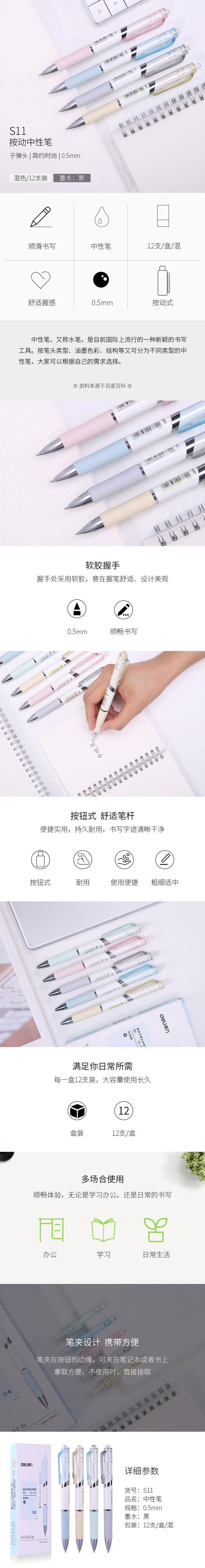 得力S11中性笔0.5mm子弹头