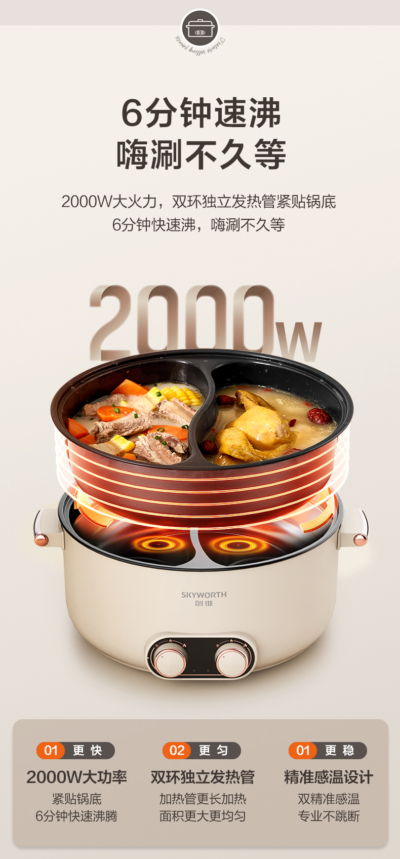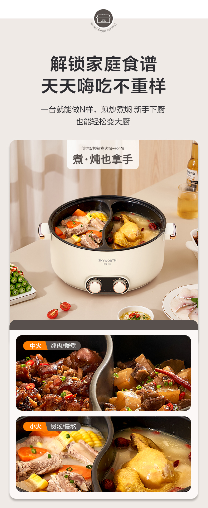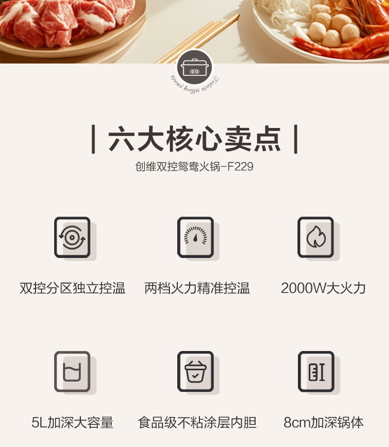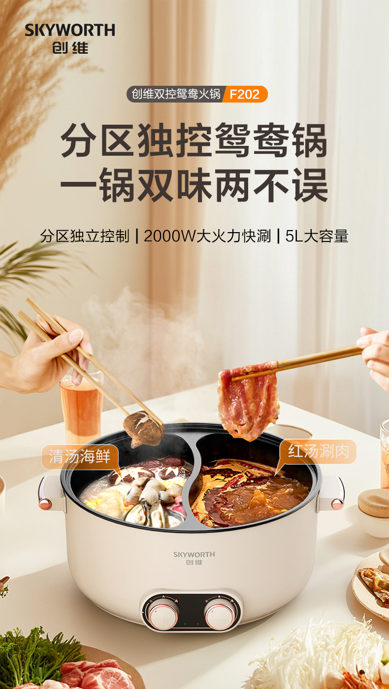 【自营】创维 鸳鸯锅(5L)双扭独立控温 F202