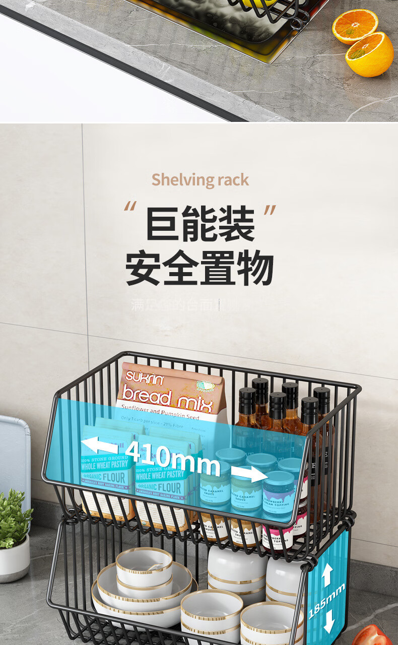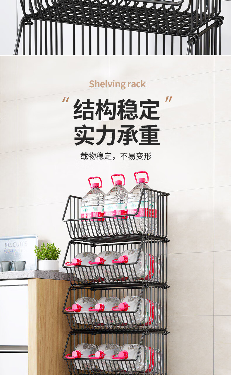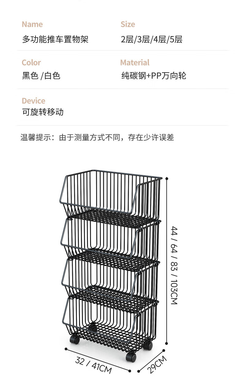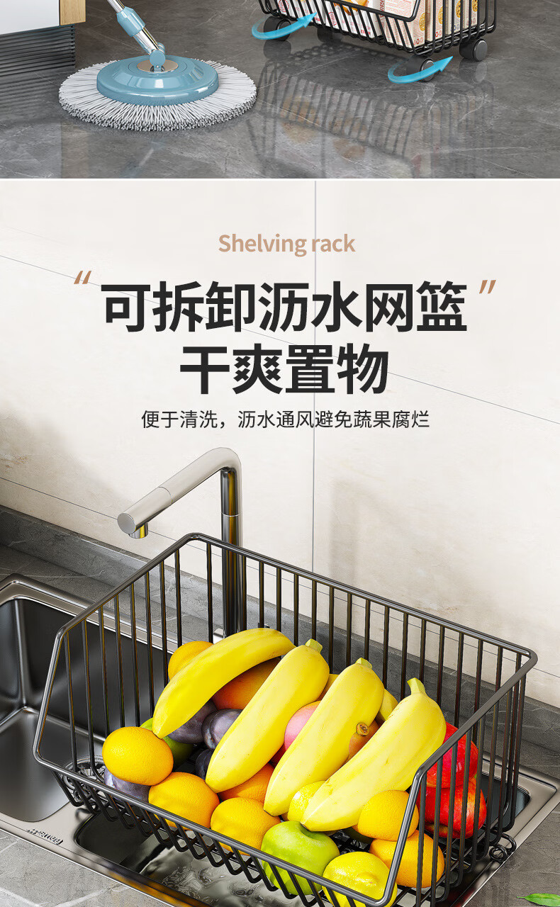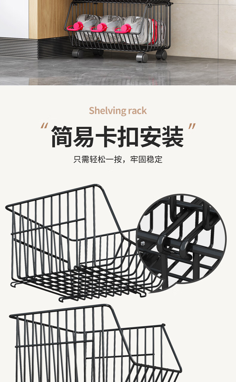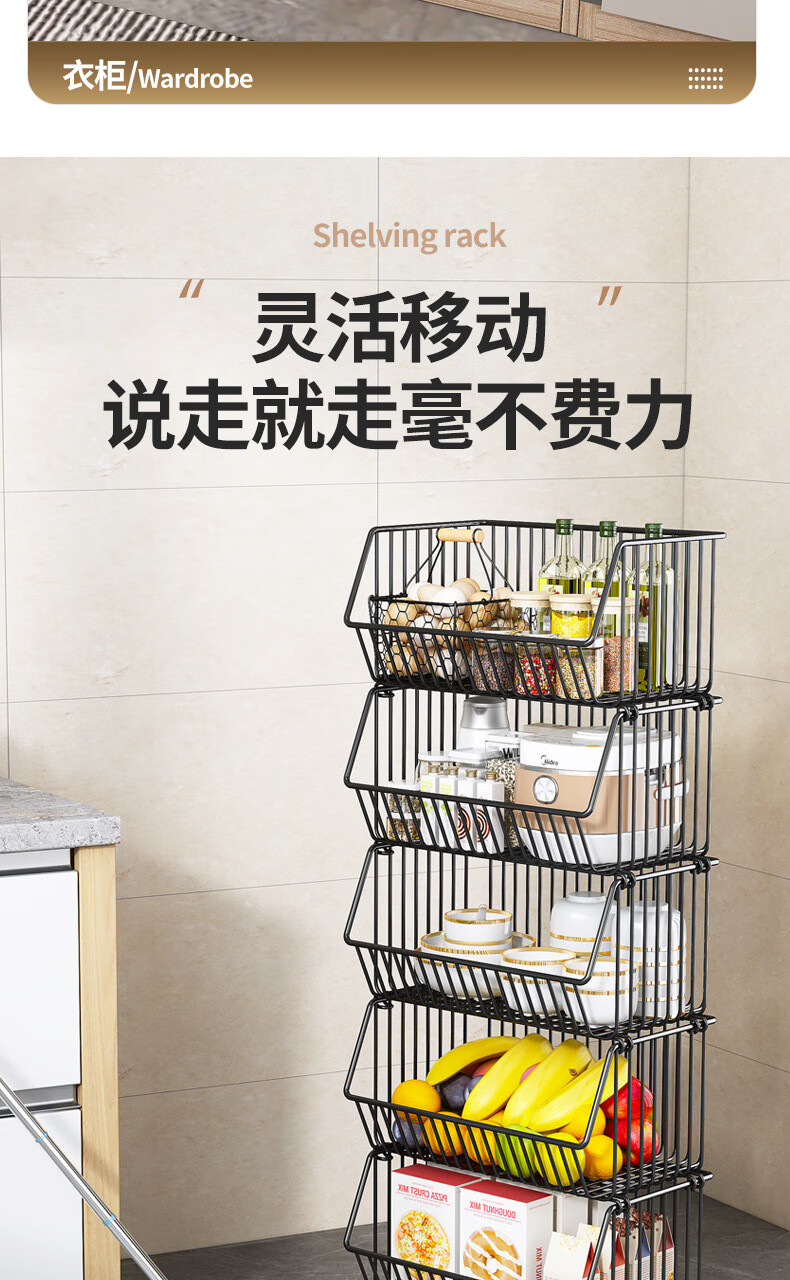 艾思维厨房置物架落地可移动水果蔬菜篮子零食架玩具收纳架 大号3层带轮 100047175978
