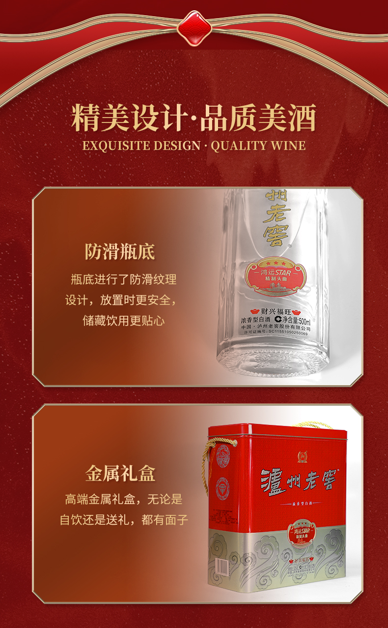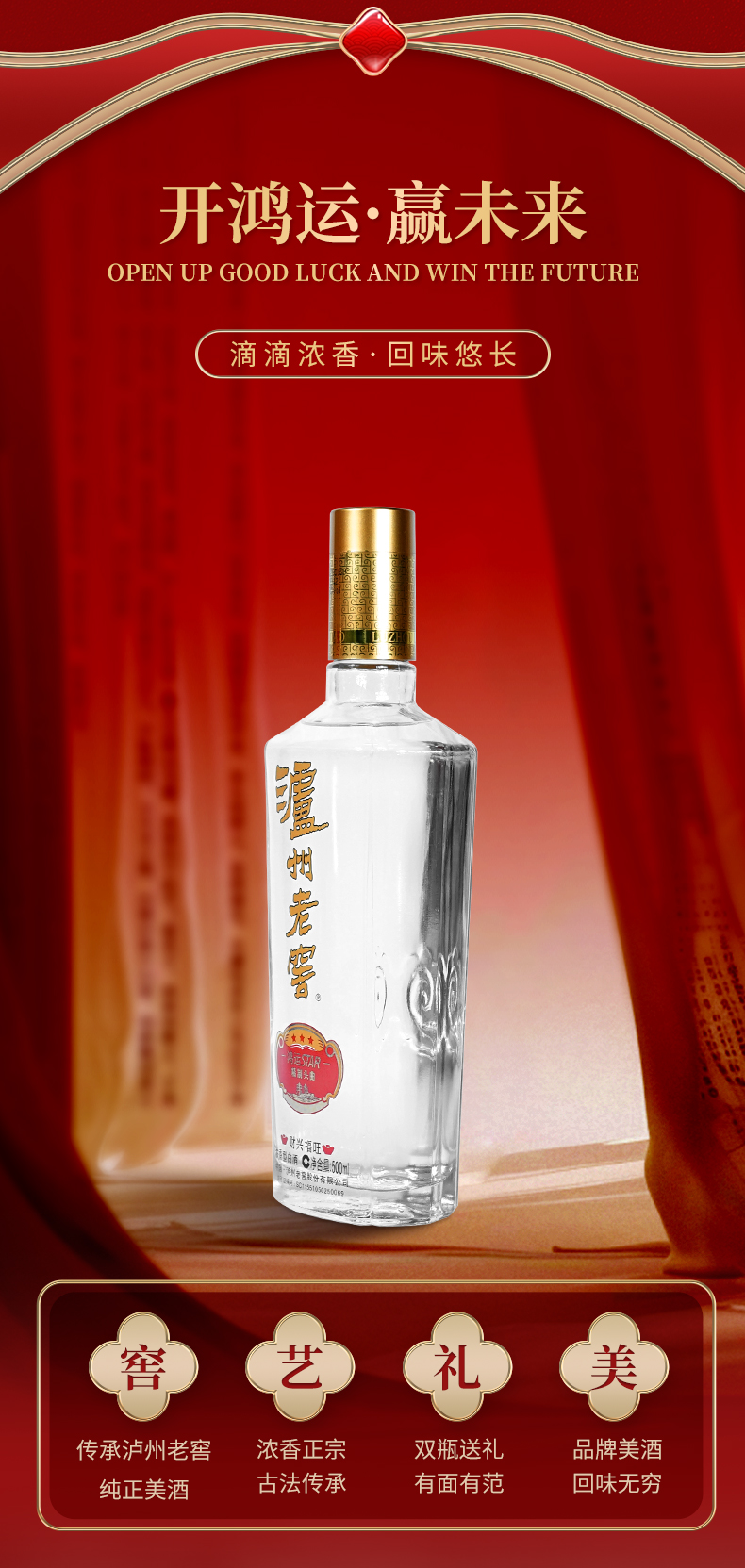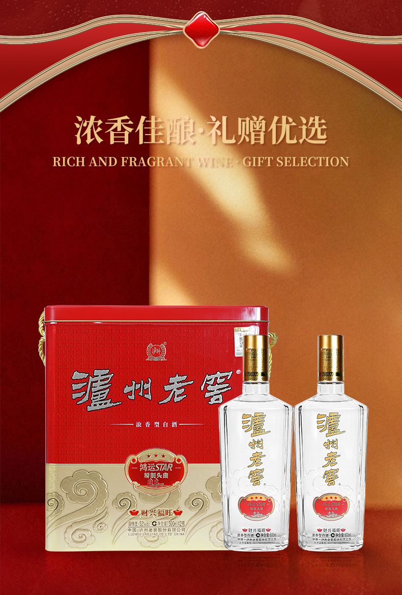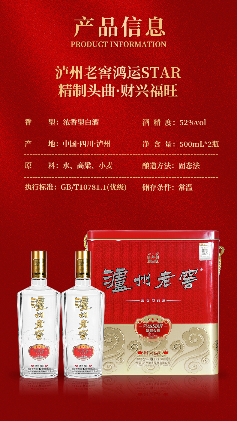 泸州老窖鸿运STAR精制头曲酒财兴福旺52度 双支装礼盒 500ml*2瓶/盒