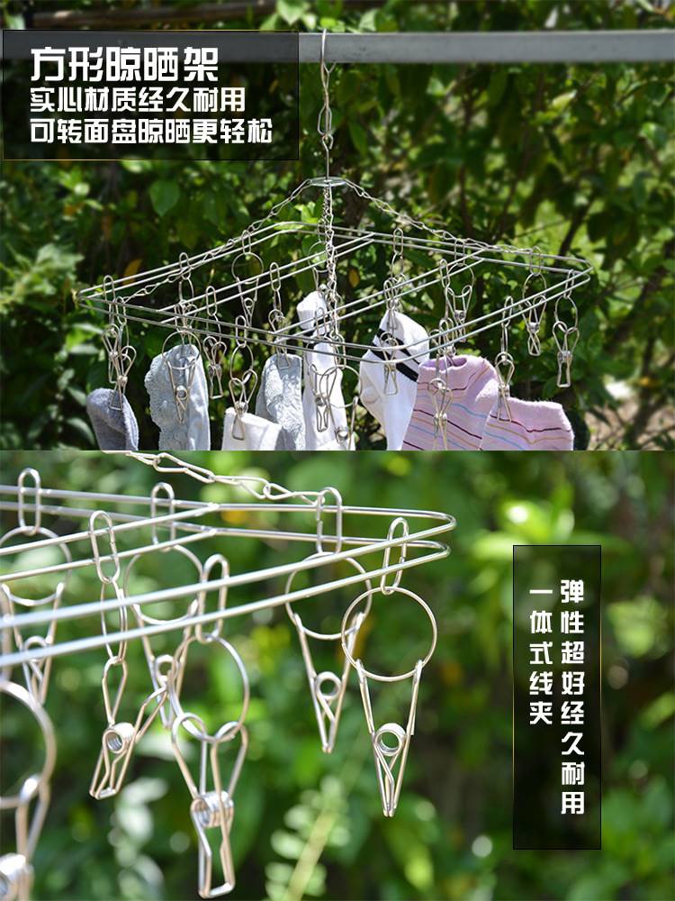 多夹子晾衣架 不锈钢晒袜子架 婴儿凉衣架挂钩 内衣晾架 1个 阳台晾晒防风挂钩神器
