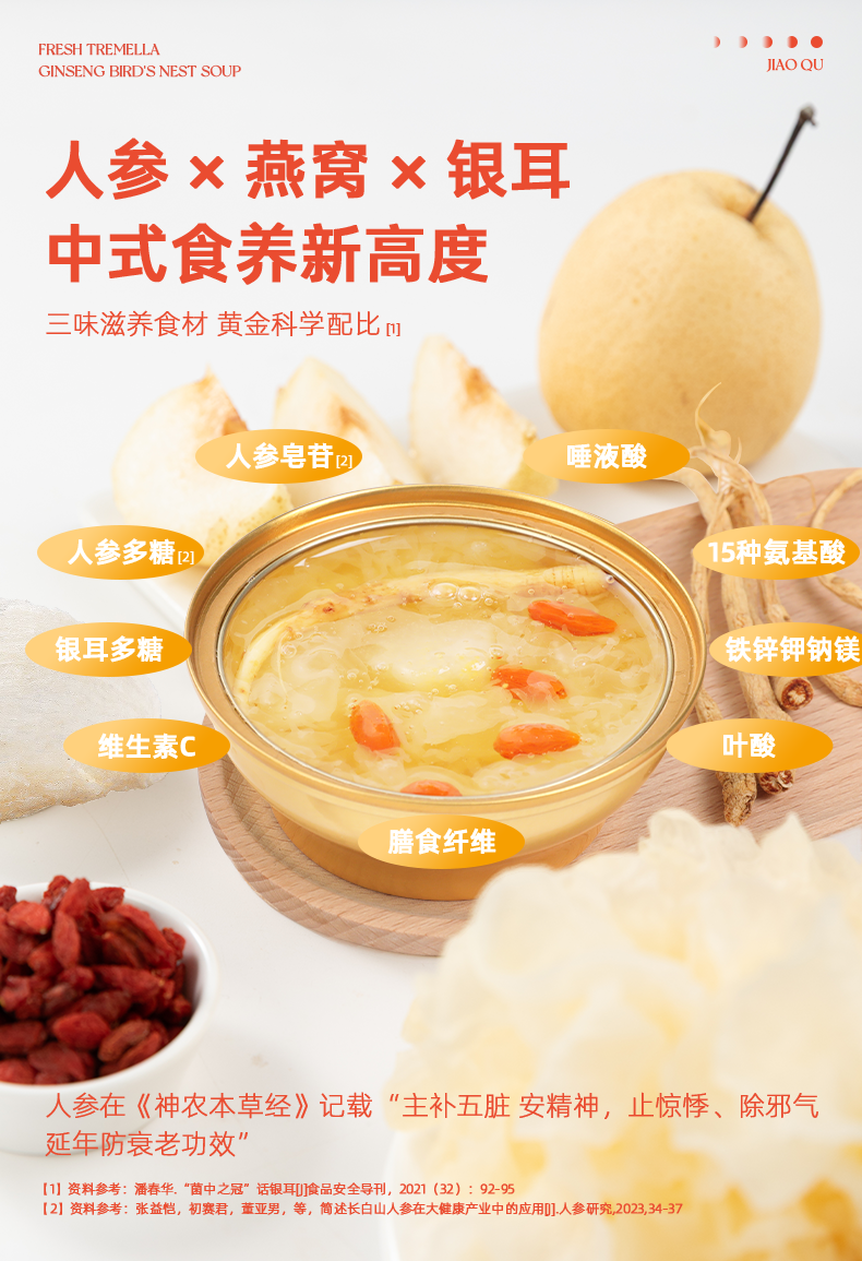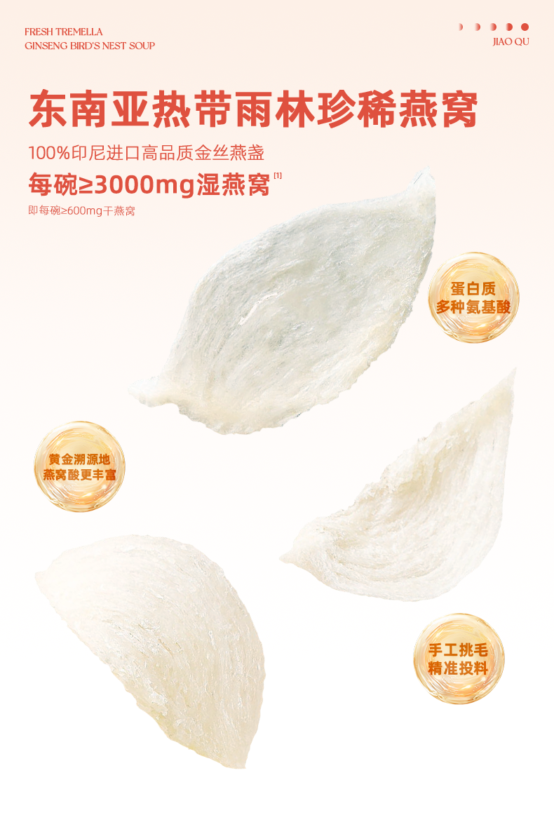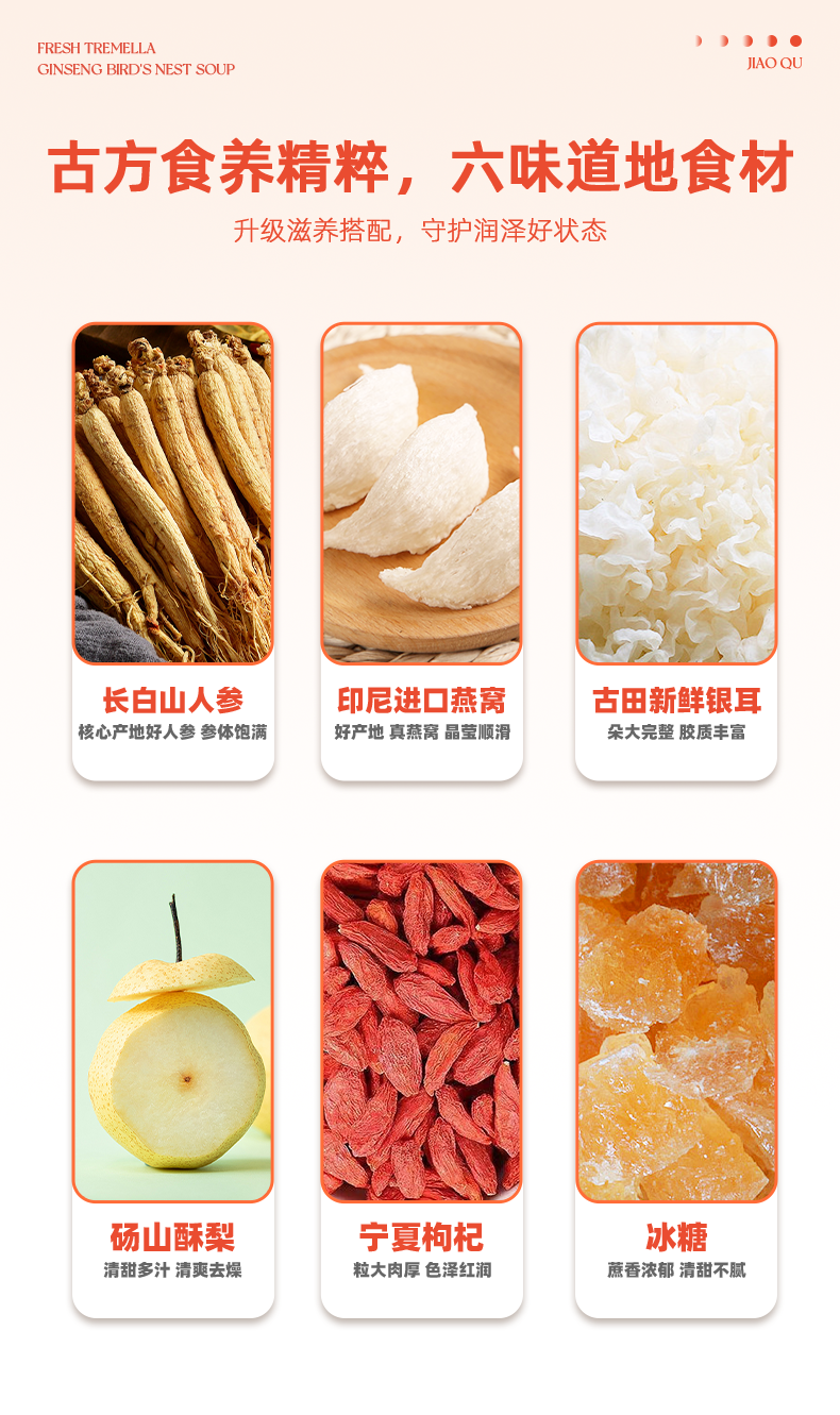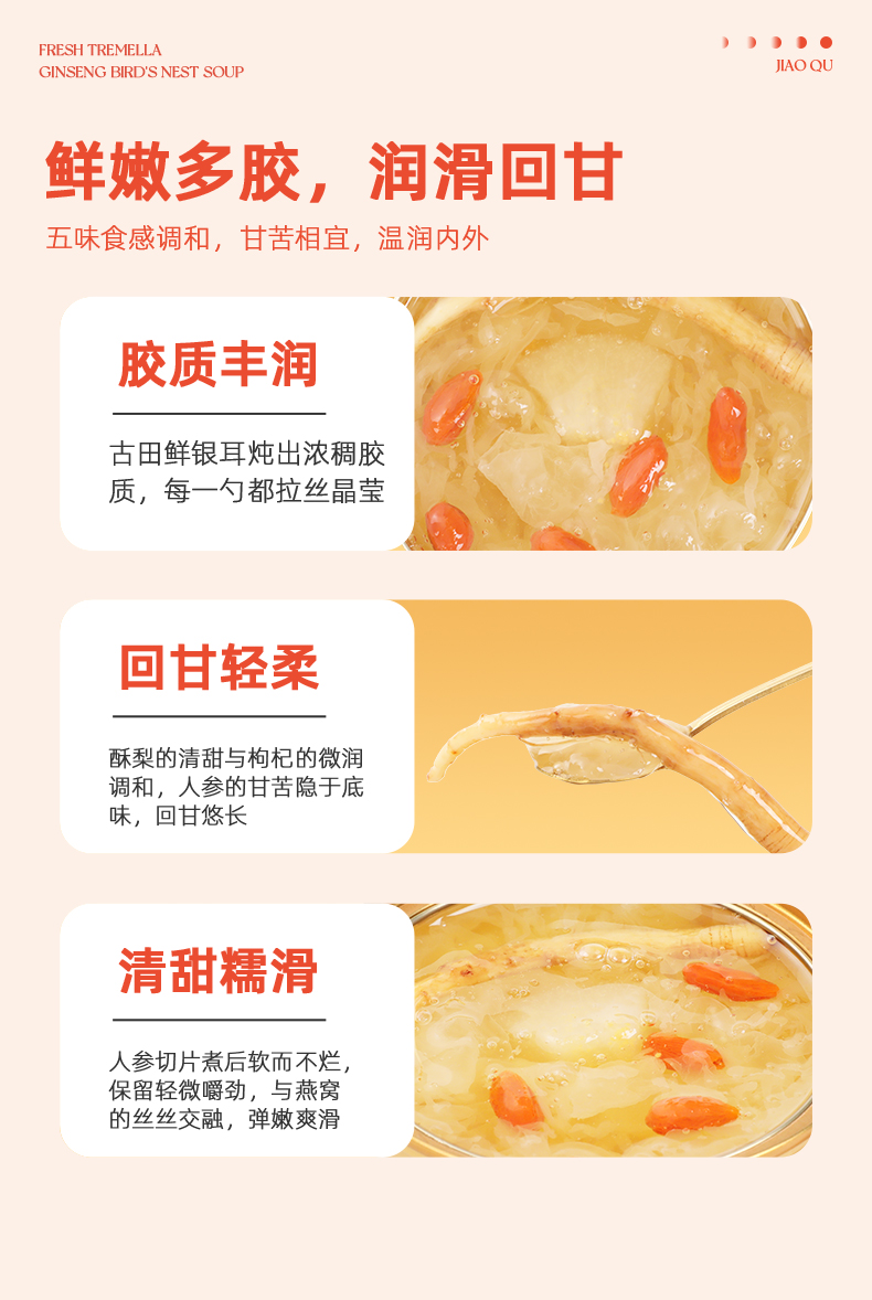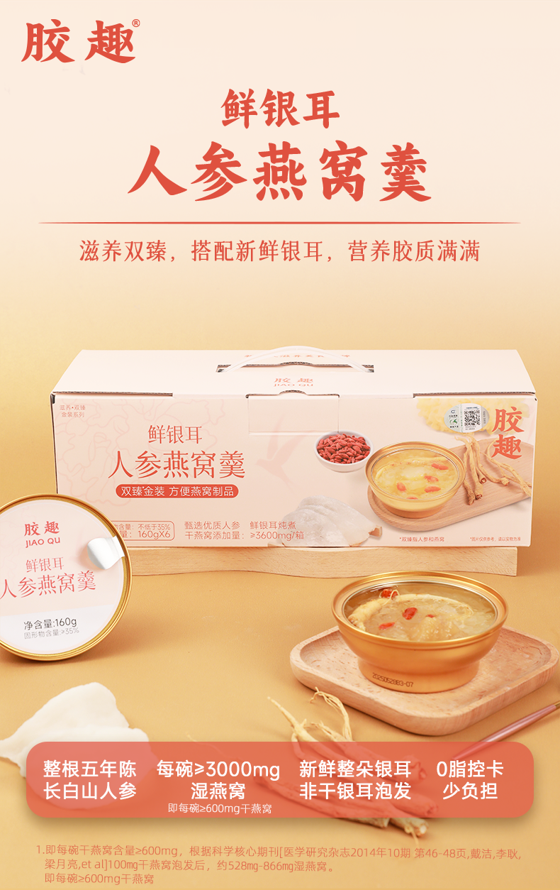 胶趣即食鲜银耳炖整根人参燕窝羹免煮礼盒 160g*6碗 早餐甜品女性滋补礼盒