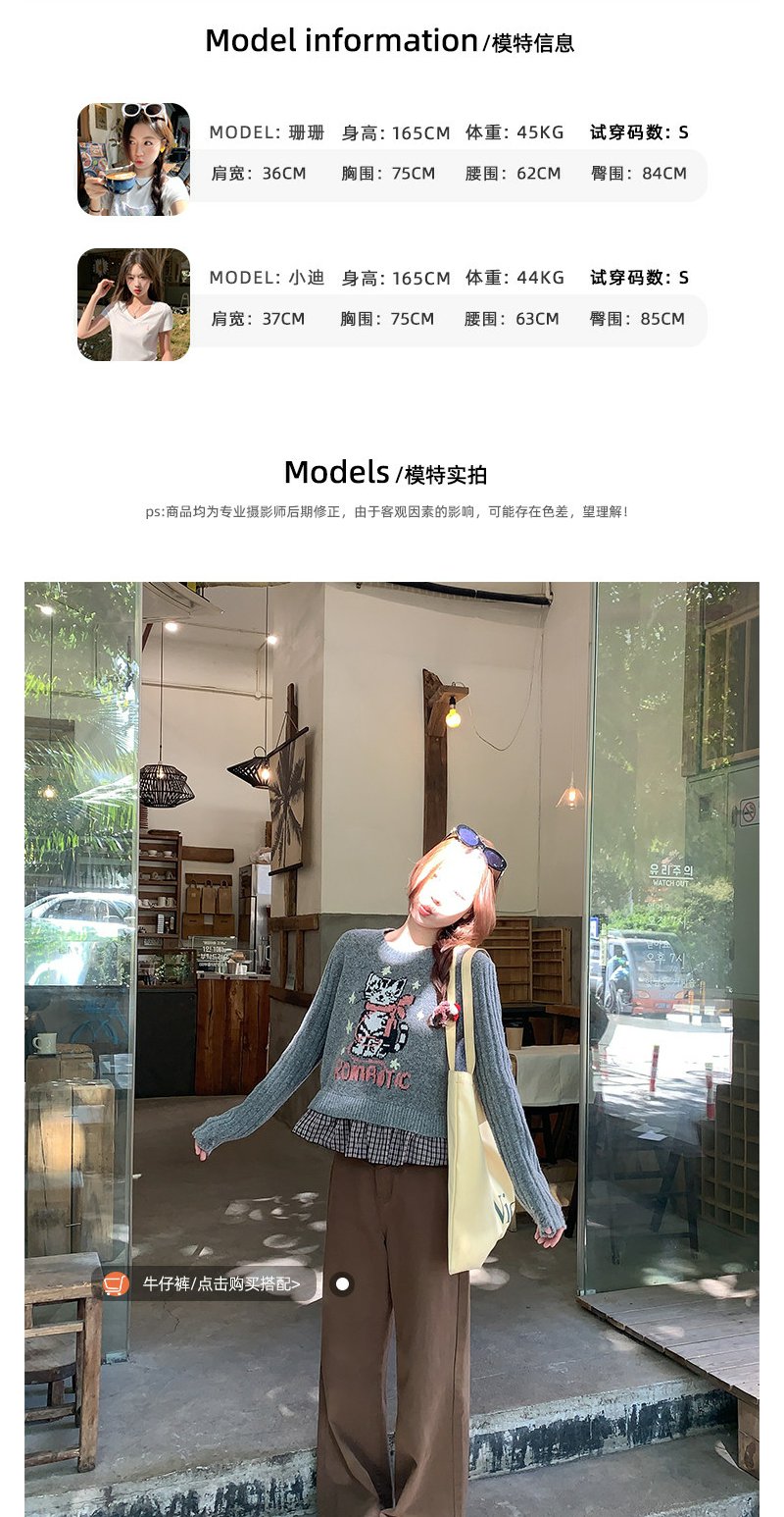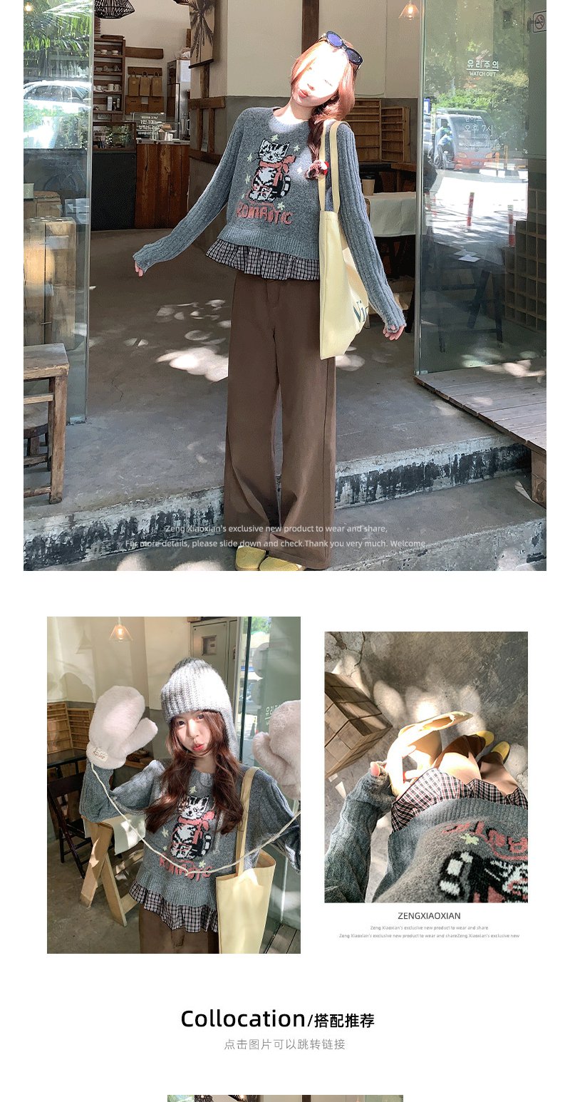 <曾小咸推荐> 2.19 现货秒杀 !微信超特价!小猫刺绣假两件针织衫 日常199.99 立减110 秒杀89.99!!